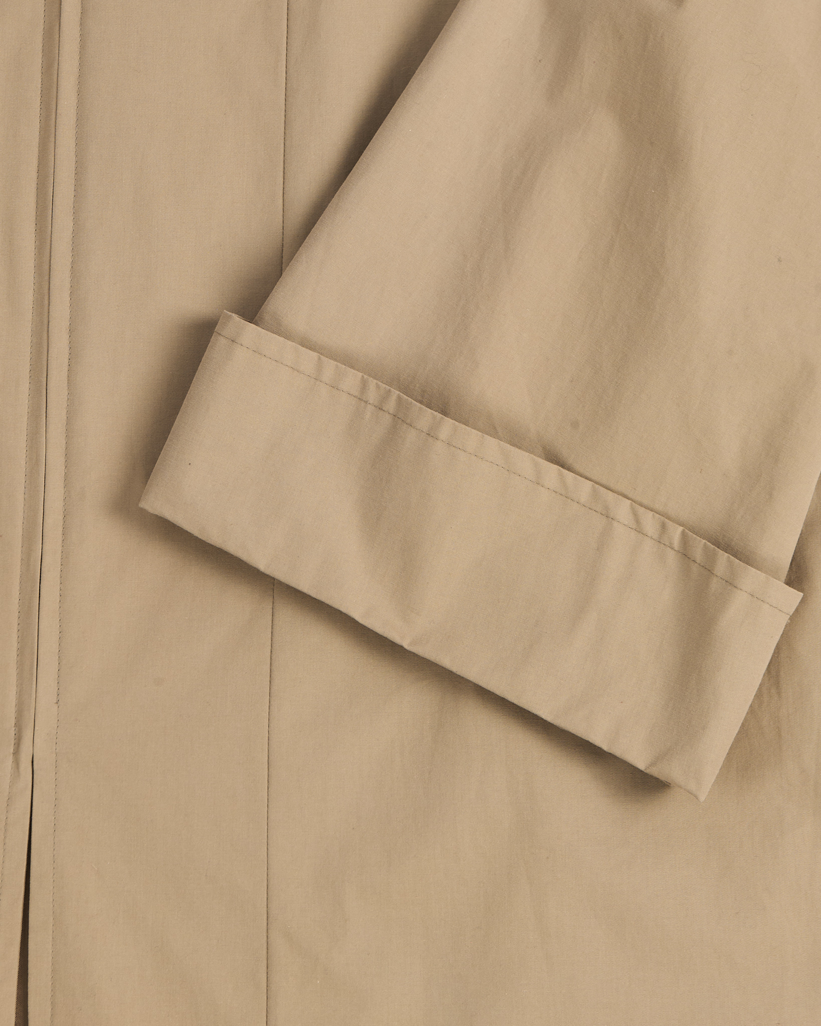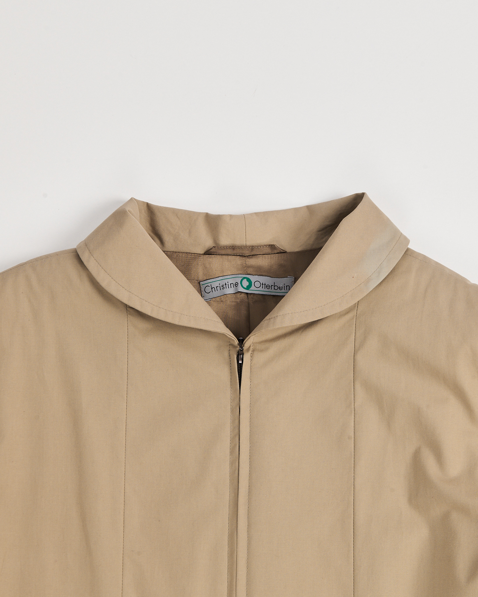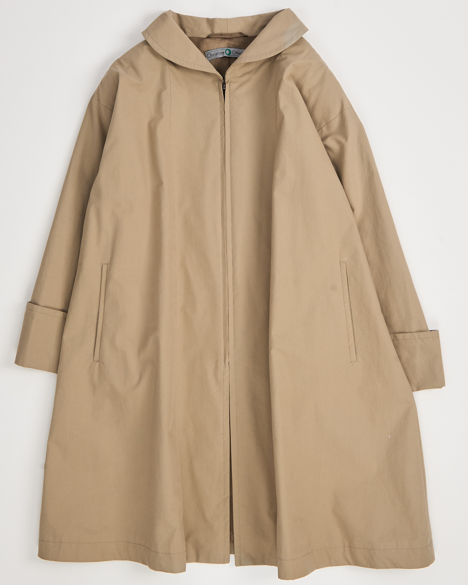 Плащ из плотной гладкой ткани бежевого оттенка от Christine Otterbein. Материал мягкий, посадка свободная, с плавной линией плеча и прямым силуэтом. Минималистичный крой и скрытая застёжка.