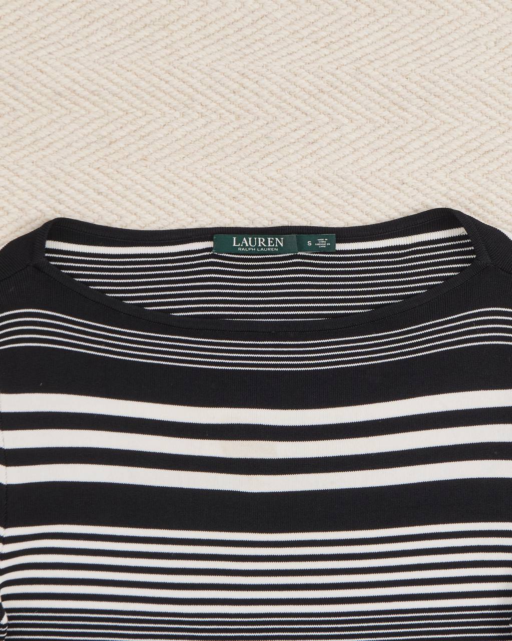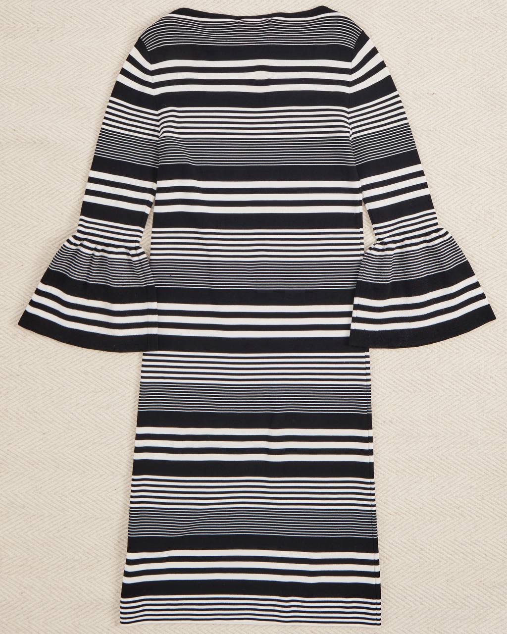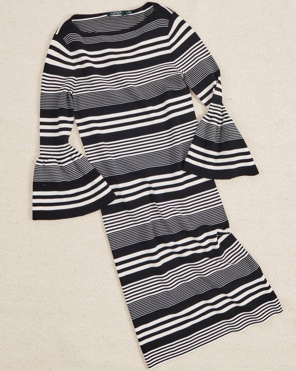 Платье-миди в полоску. Широкие расклешенные рукава, аккуратная посадка по фигуре.