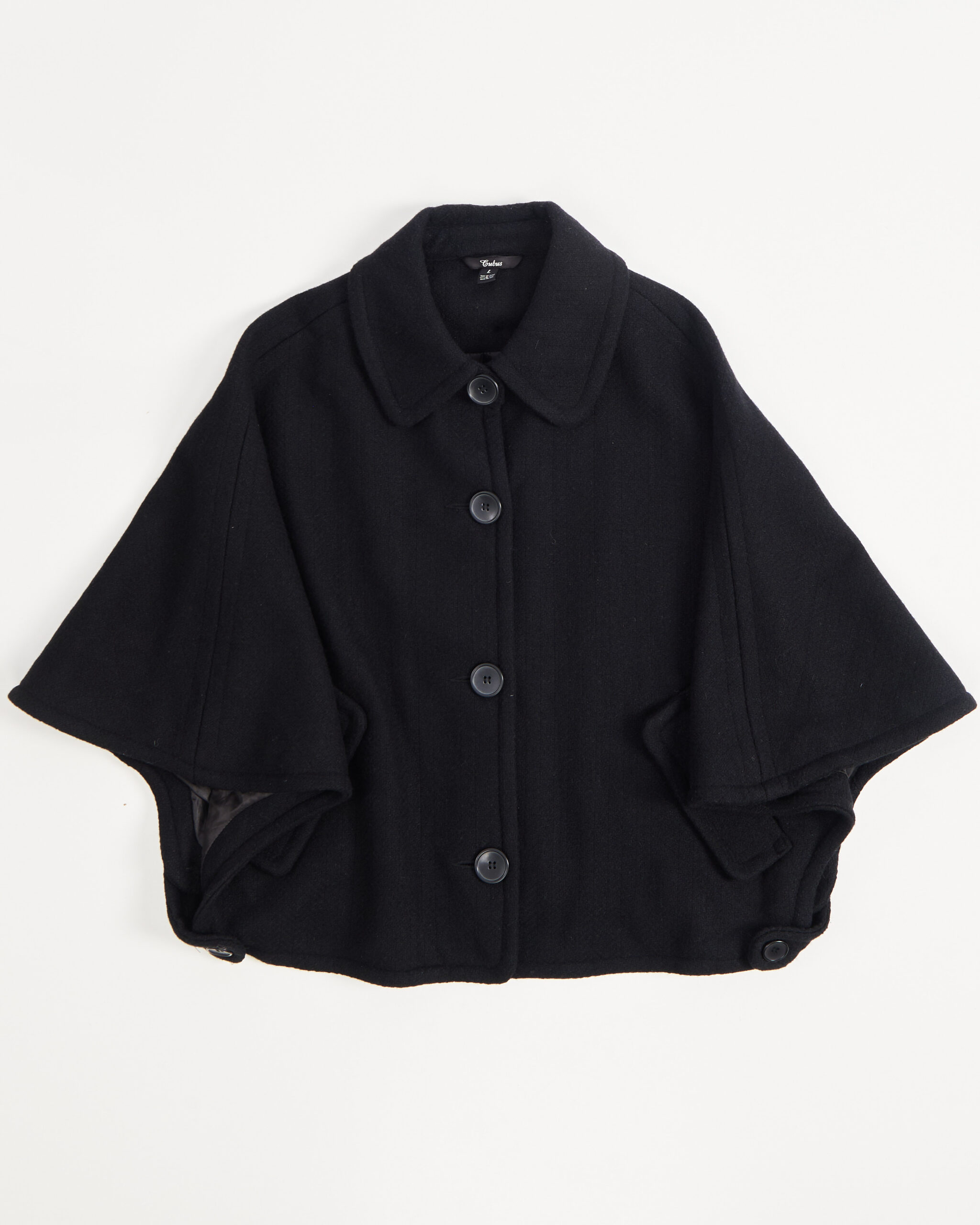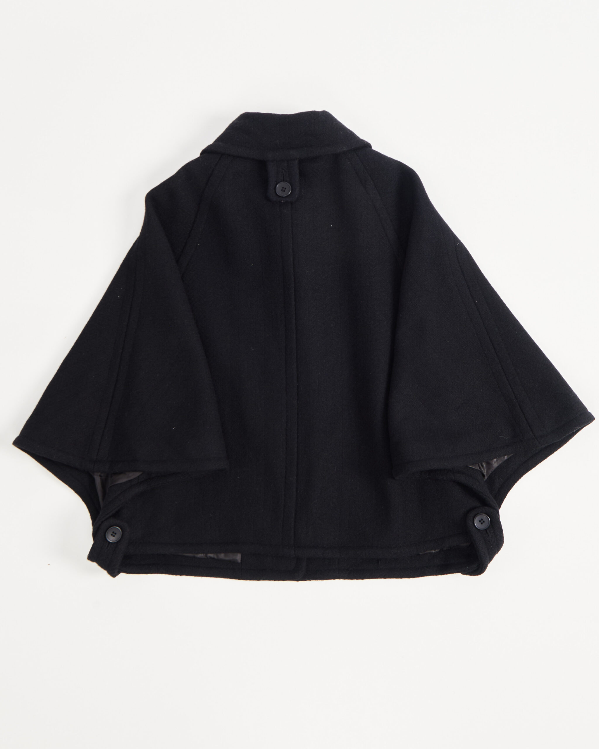 Пончо из шерсти с добавлением вискозы. Свободная посадка, акцент в виде крупных пуговиц.Карманы с клапанами и боковые застежки добавляют функциональности.