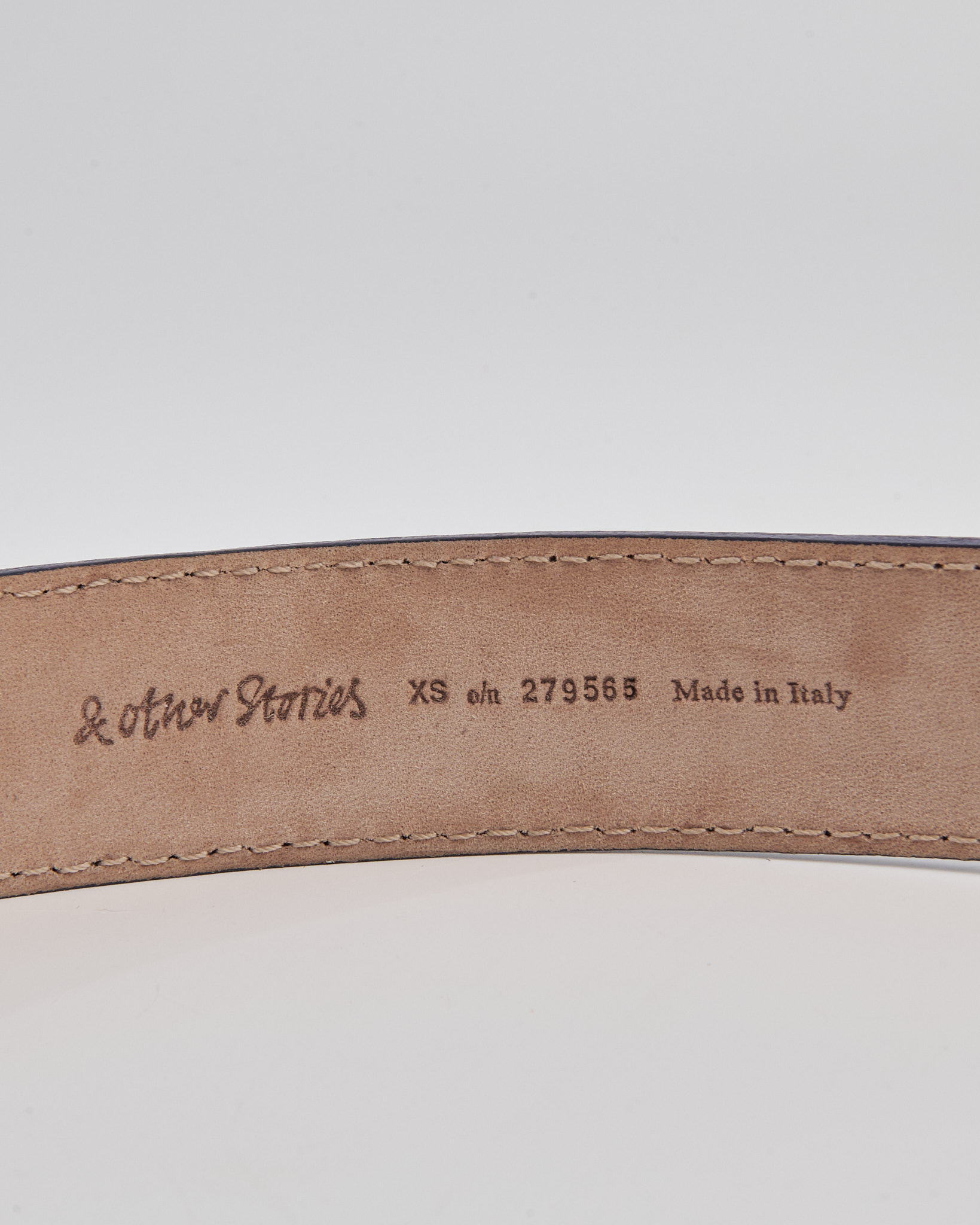 Ремень из натуральной кожи от бренда & Other Stories, выполнен в Италии. Плотная кожа с тиснением под рептилию, аккуратная пряжка.