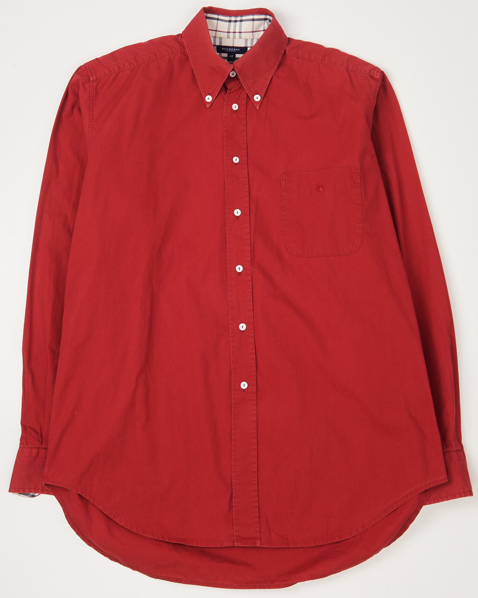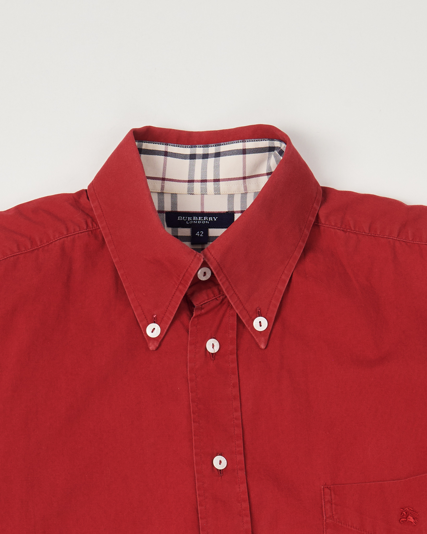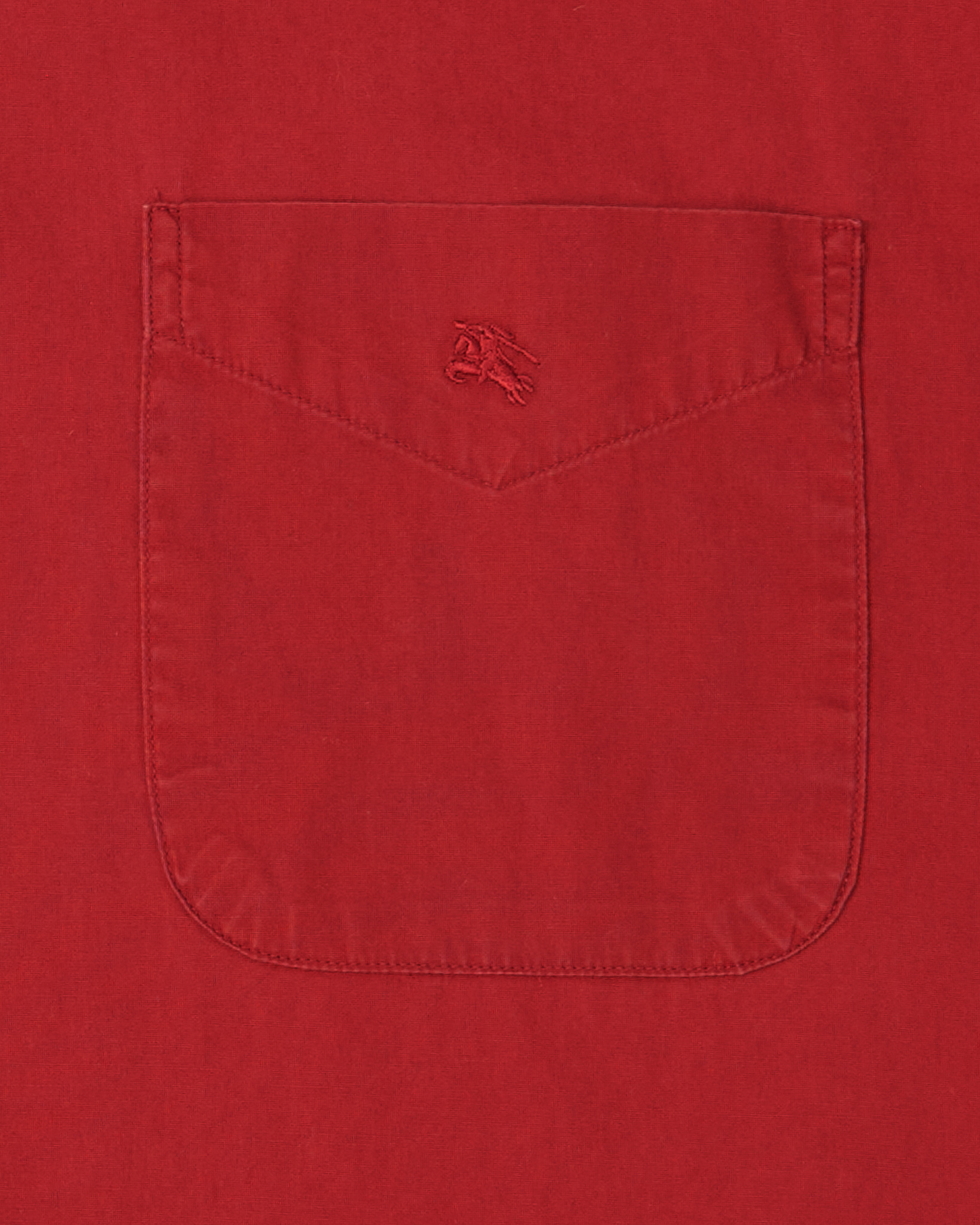 Рубашка Burberry  из 100% хлопка красного цвета. Прямой крой, свободная посадка. Пуговицы с гравировкой бренда. Нагрудный карман с фирменной вышивкой.