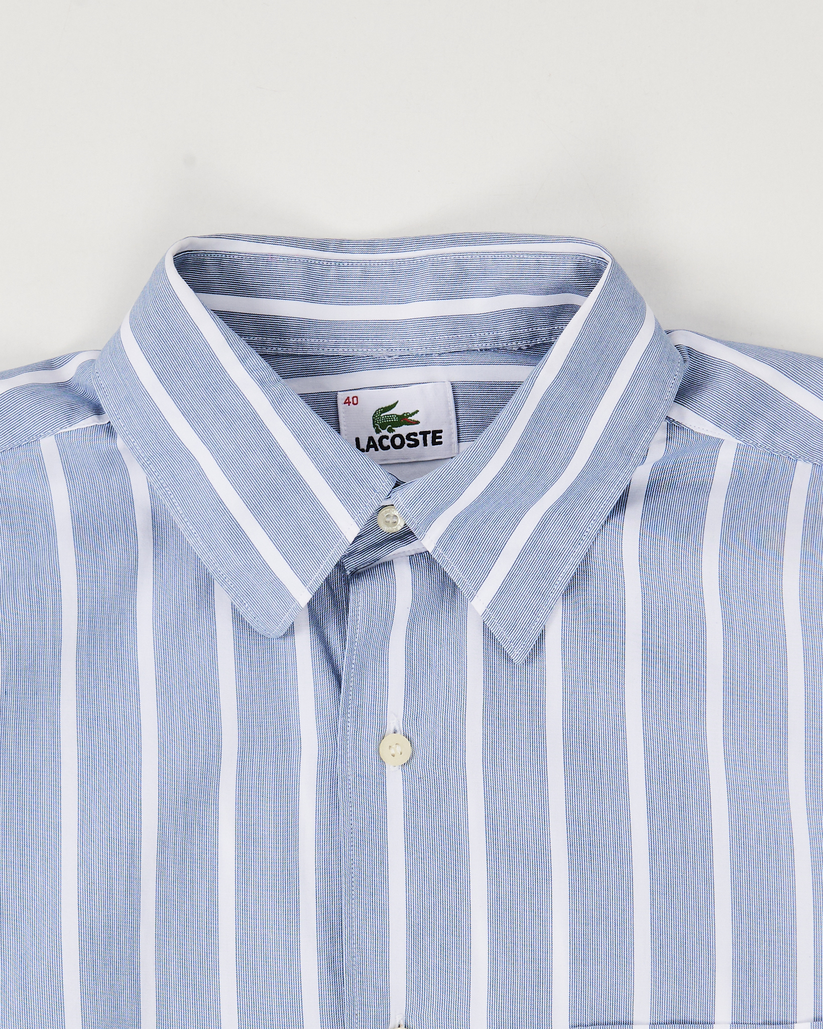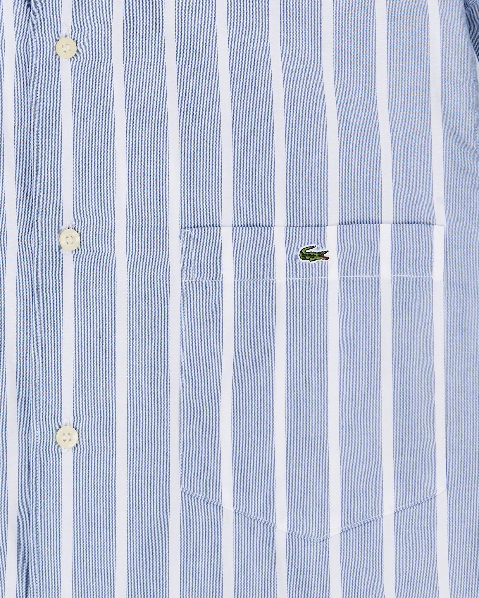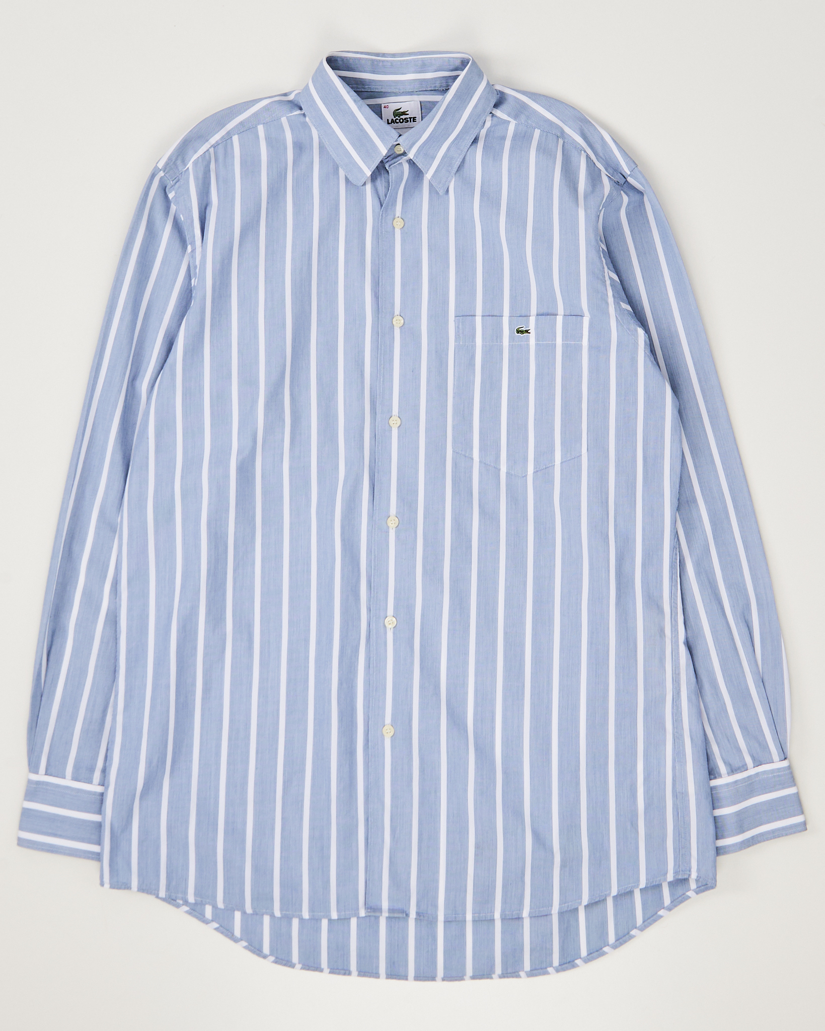 Рубашка из хлопка от Lacoste. Ткань мягкая, лёгкая, посадка свободная. Принт в полоску и фирменный вышитый логотип на нагрудном кармане.