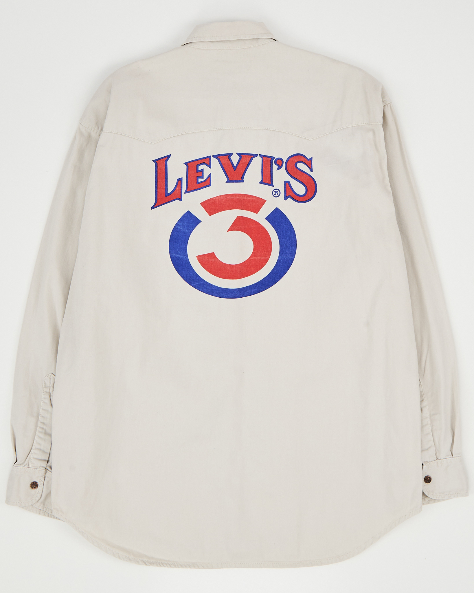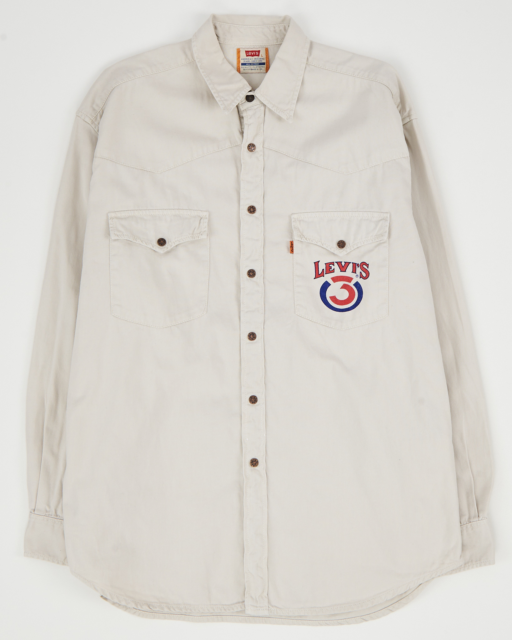 Рубашка Levi’s в светлом кремовом оттенке из плотного хлопка. Посадка свободная, прямой силуэт. Два нагрудных кармана, контрастный принт Levi’s на спине и на кармане.