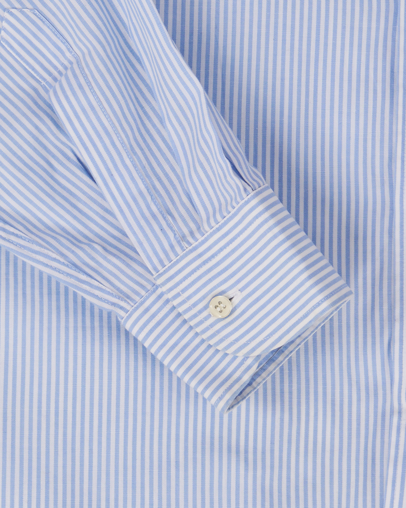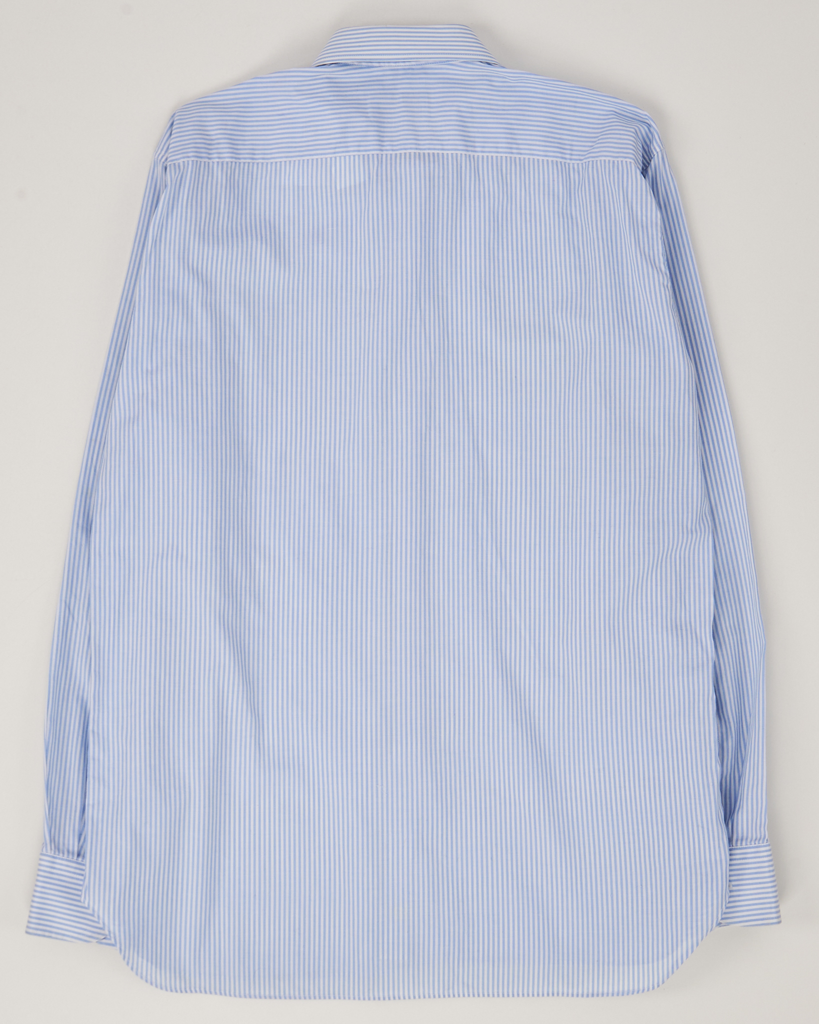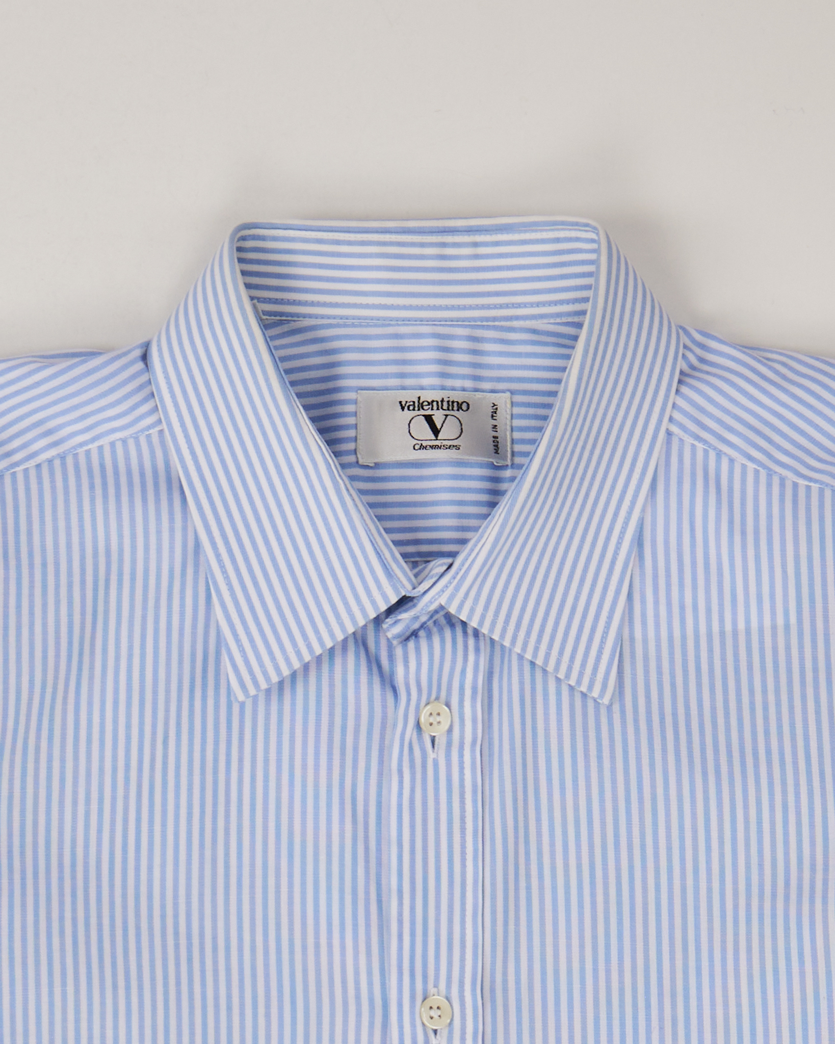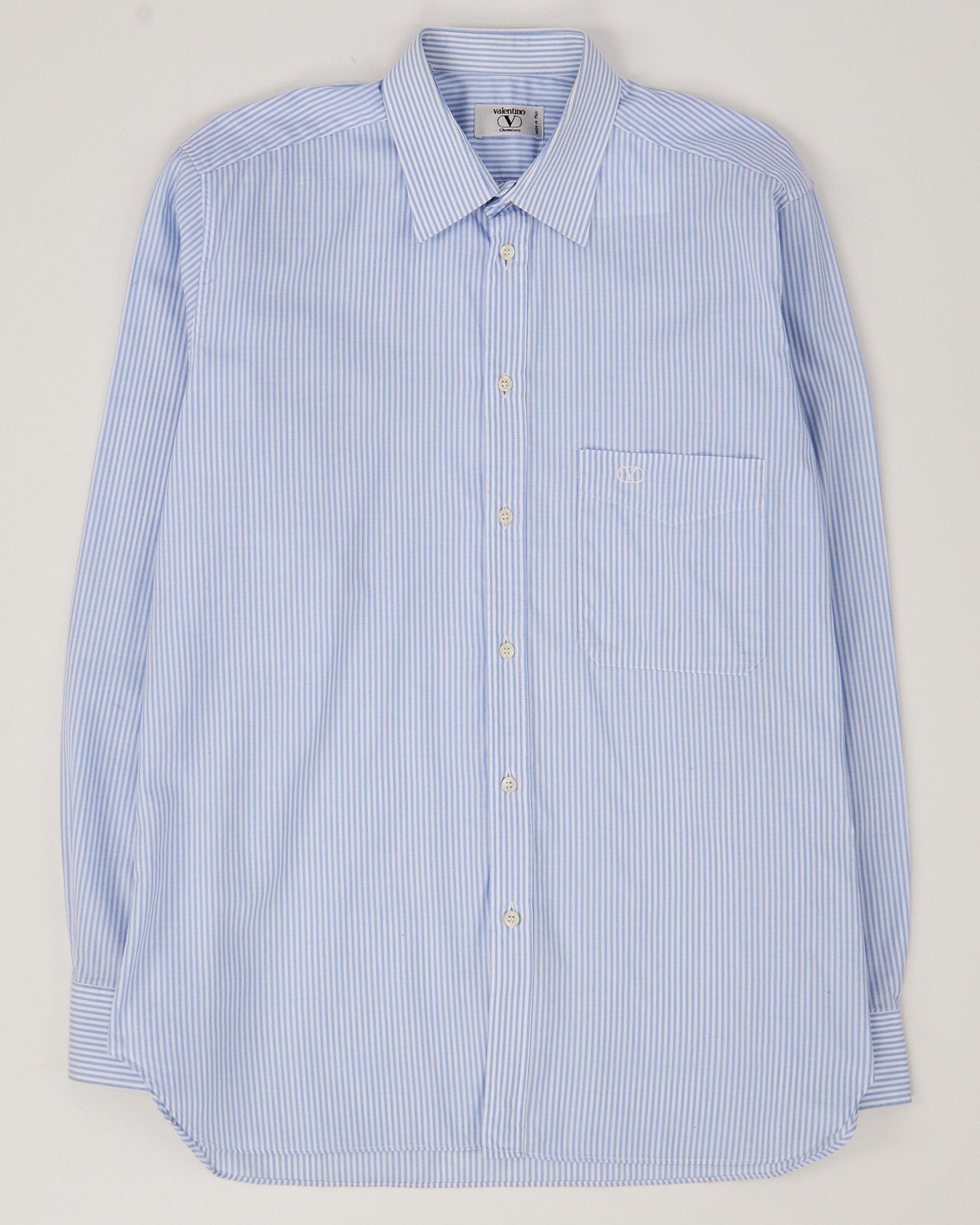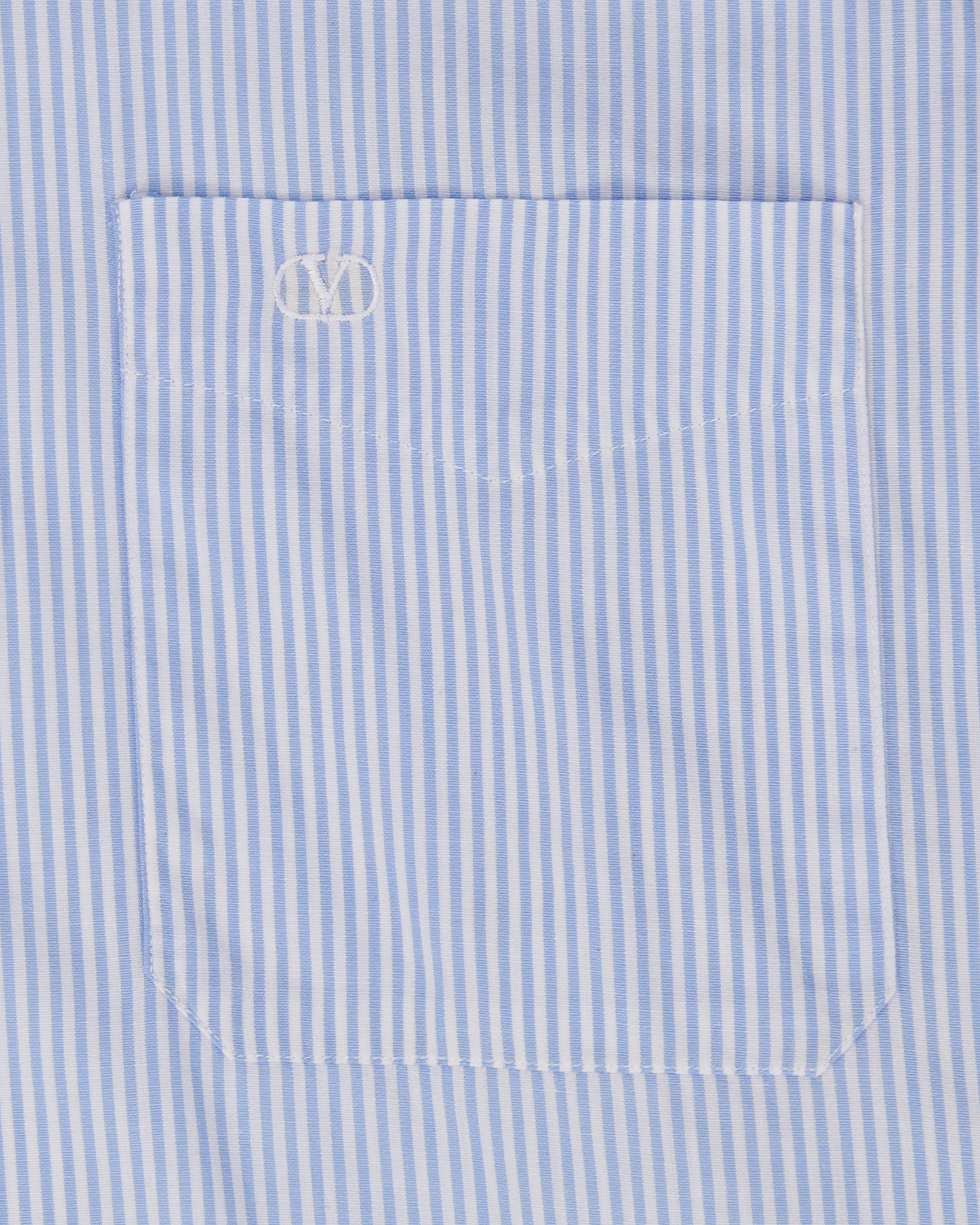 Рубашка из хлопка от Valentino. Прямой крой, свободная посадка. Принт - тонкая голубая полоска, нагрудный карман с логотипом.