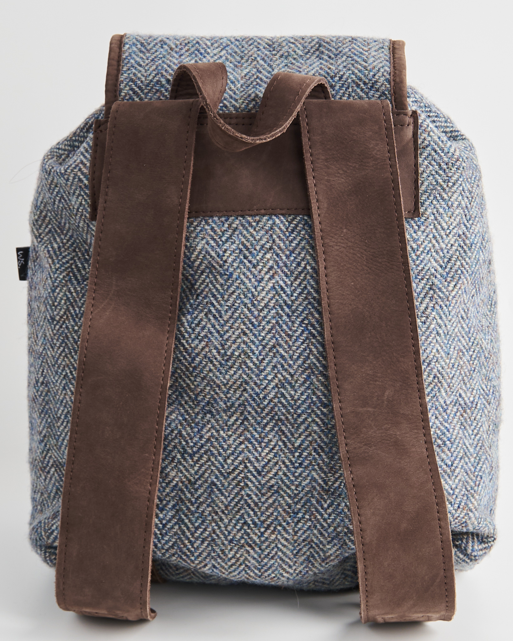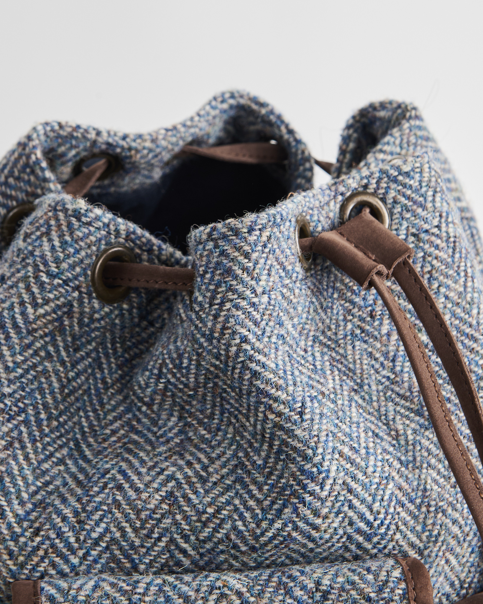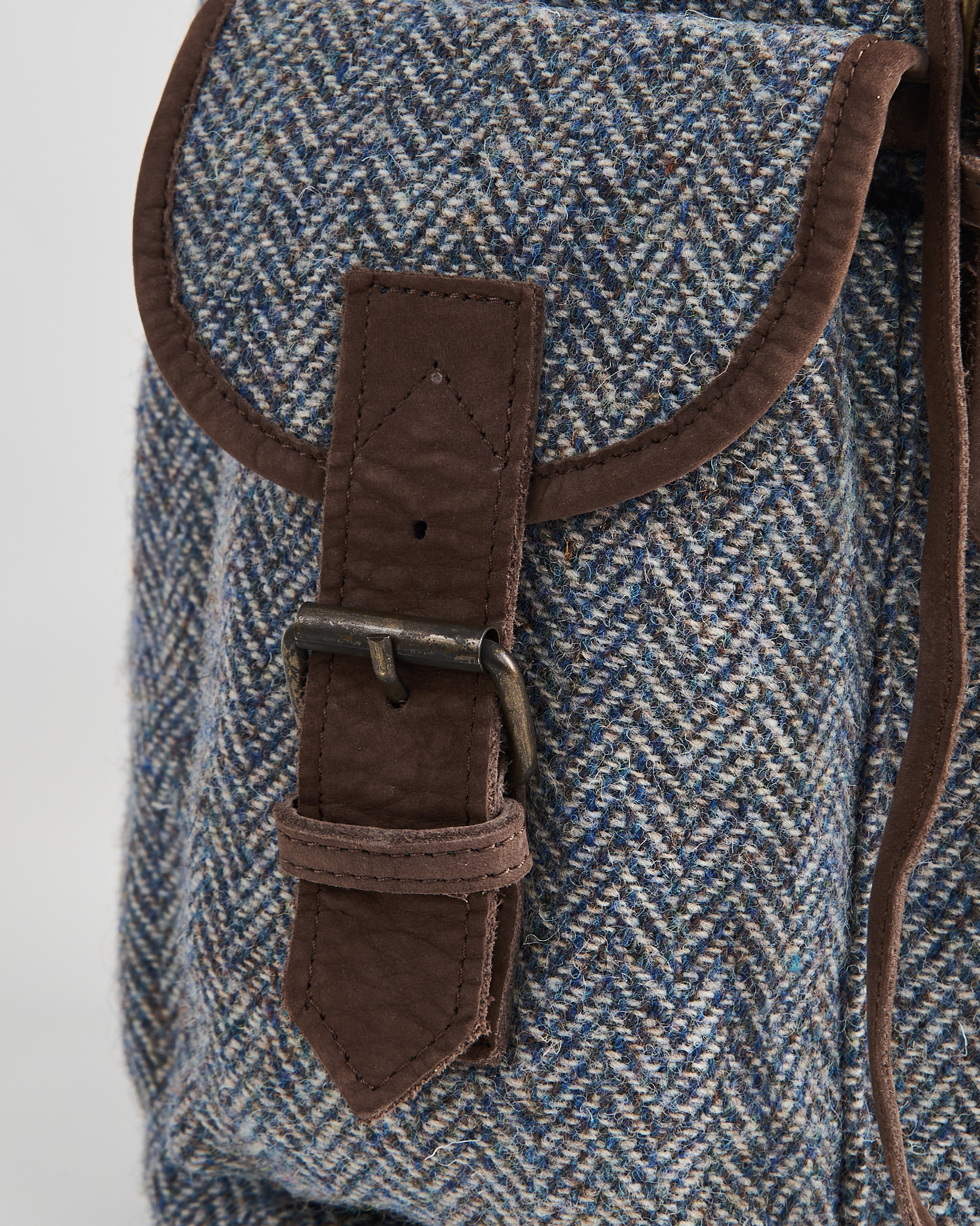 Рюкзак Walker Slater из Harris Tweed. Материал фактурный, слегка шероховатый на ощупь, держит форму. Посадка удобная, мягкая спинка и регулируемые ручки. Клапан с ремешками и металлической фурнитурой, рисунок твида "елочка, кулиска из кожи для фиксации формы. Практичное внутреннее отделение и удобные внешние карманы.