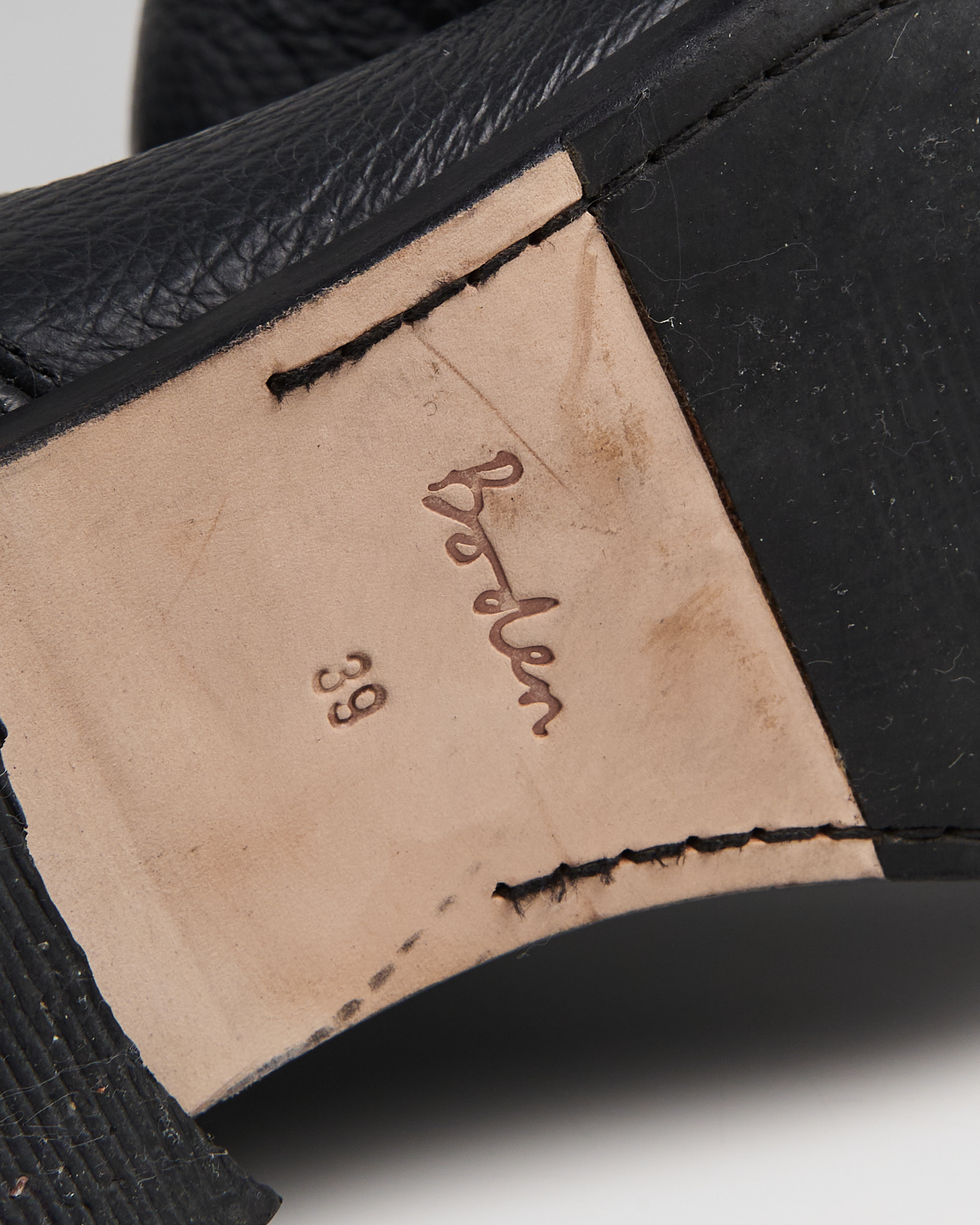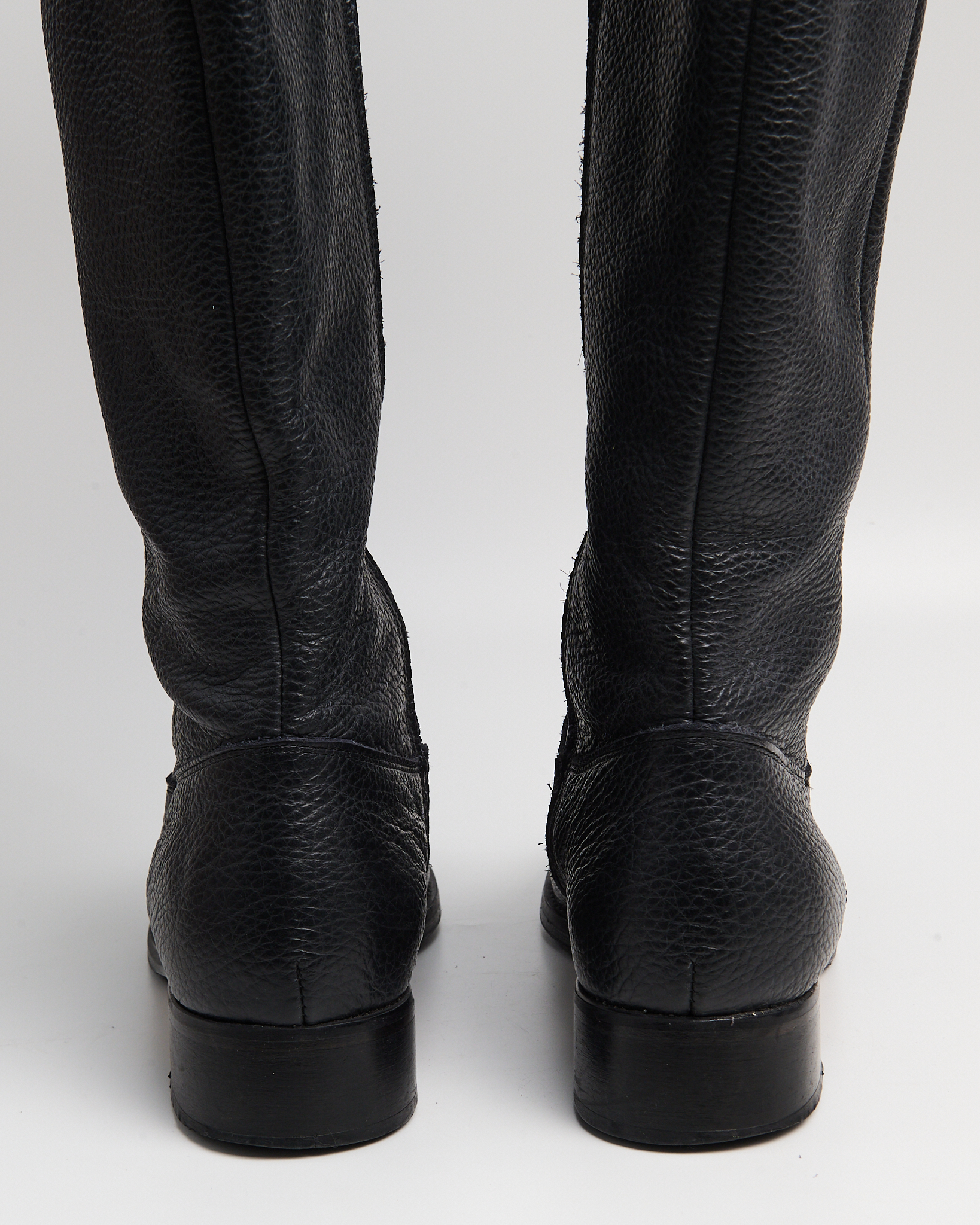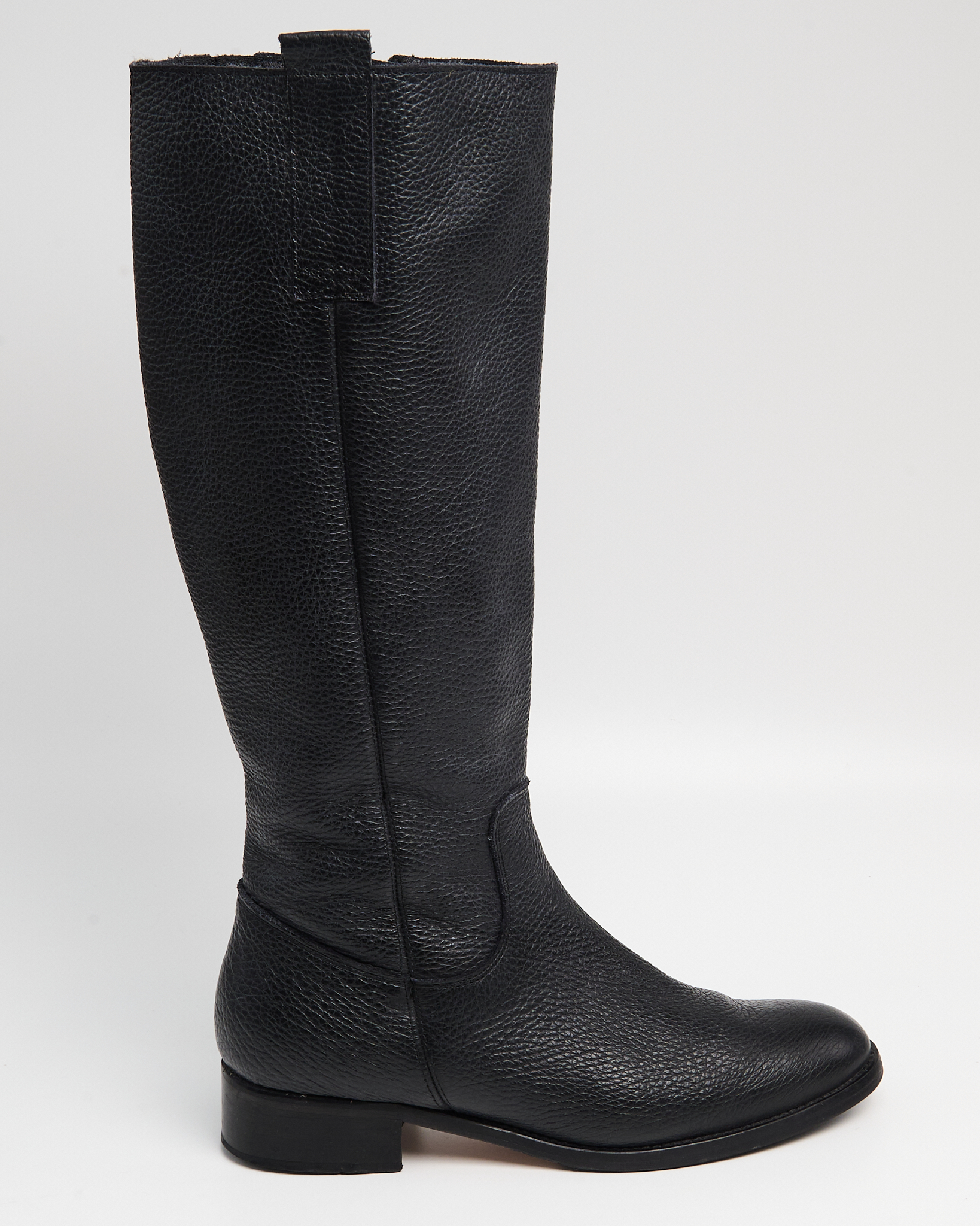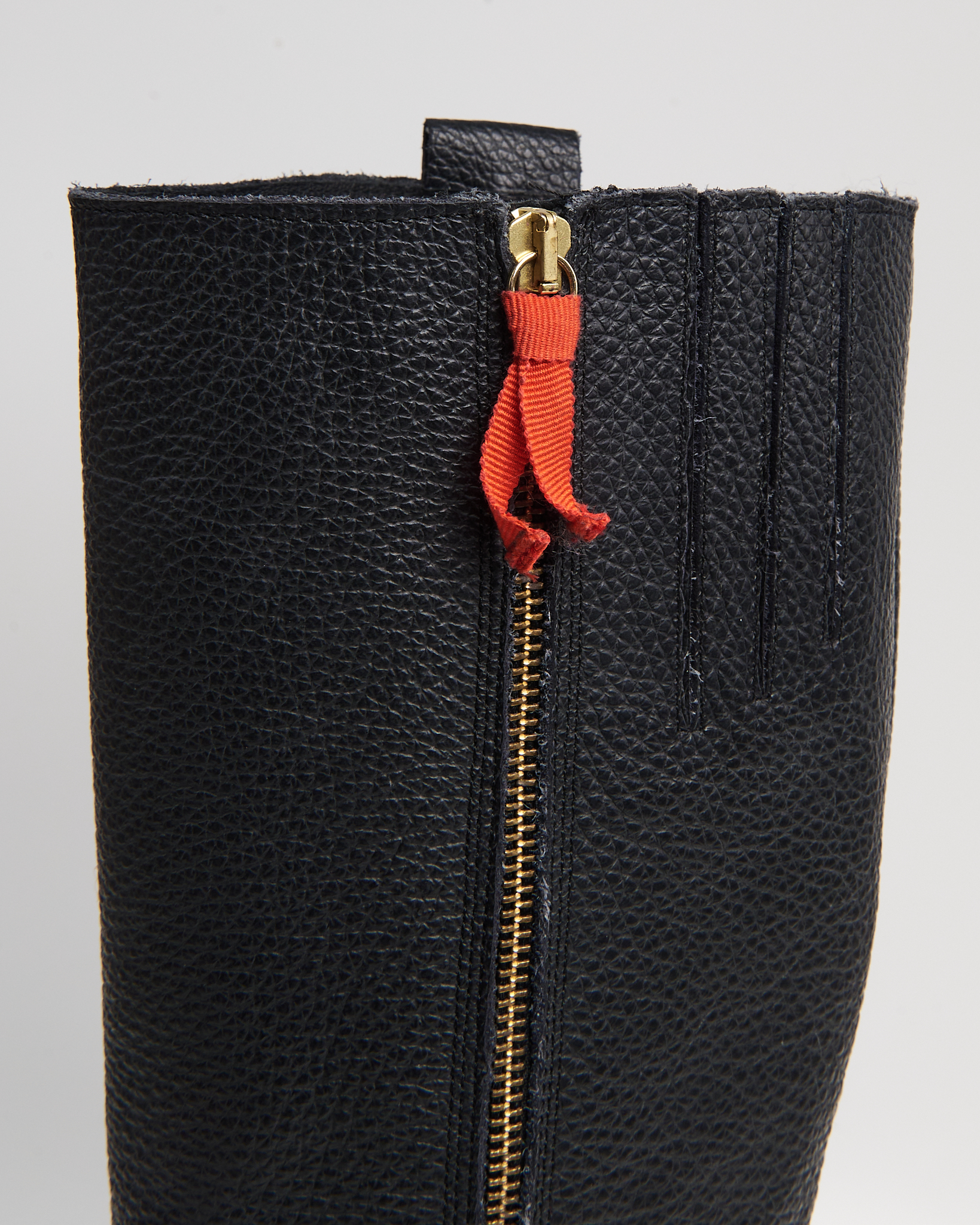 Сапоги из плотной зернистой кожи. Высокое голенище, устойчивый низкий каблук. Молния с контрастной текстильной застежкой. Итальянское производство.