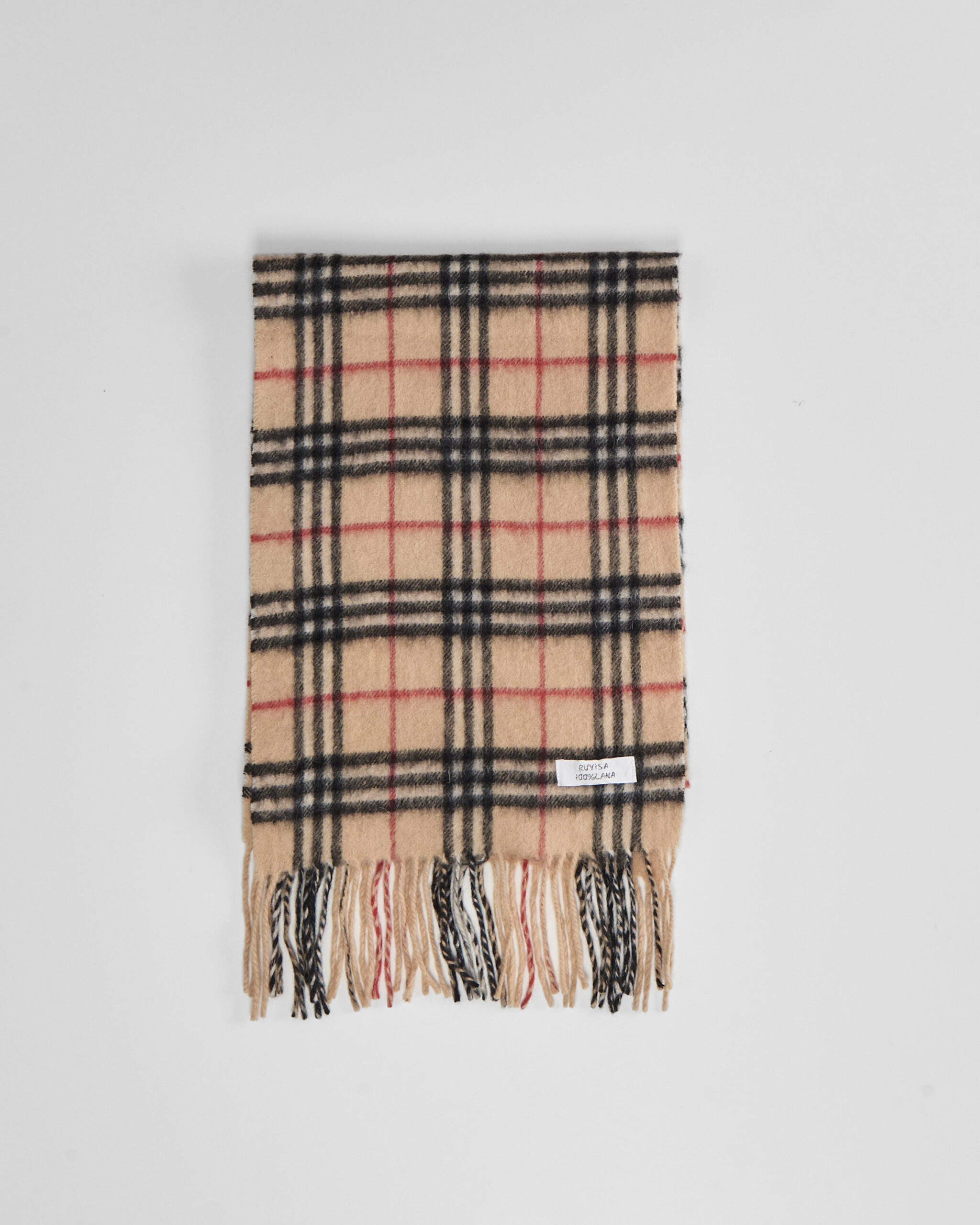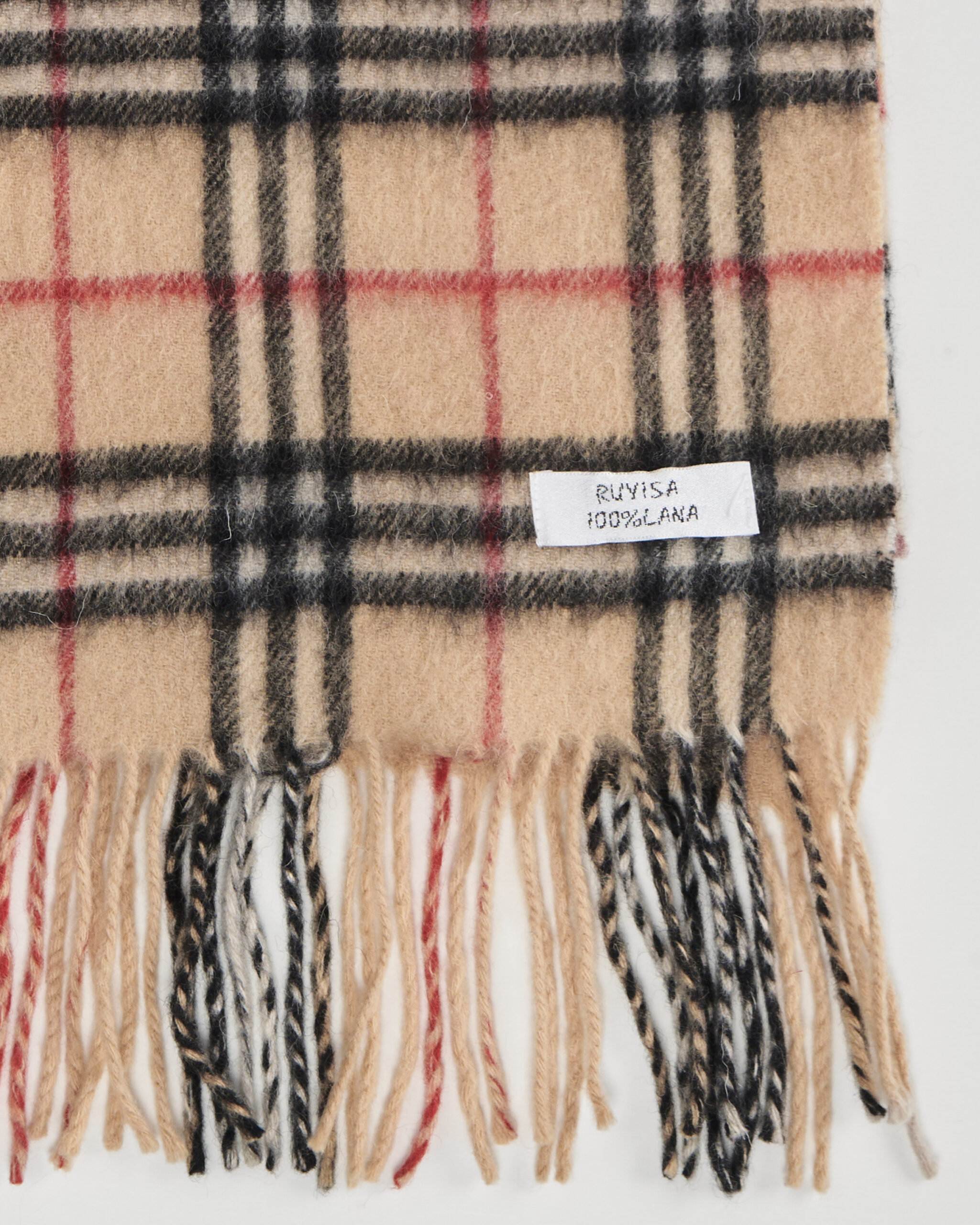 Шарф из 100% шерсти. Классическая клетка, край оформлен длинной густой бахромой.