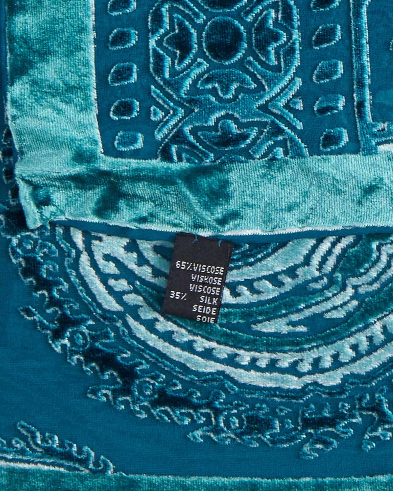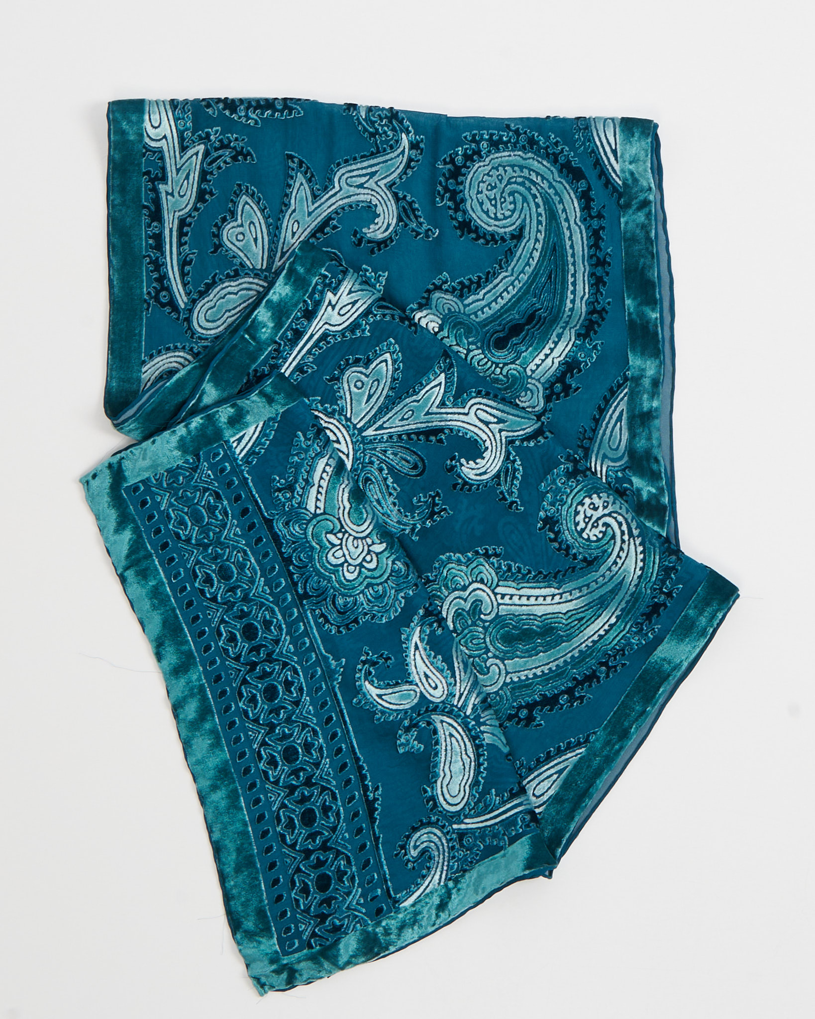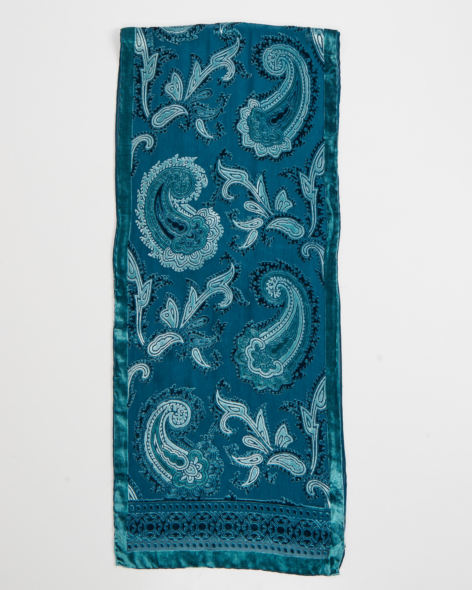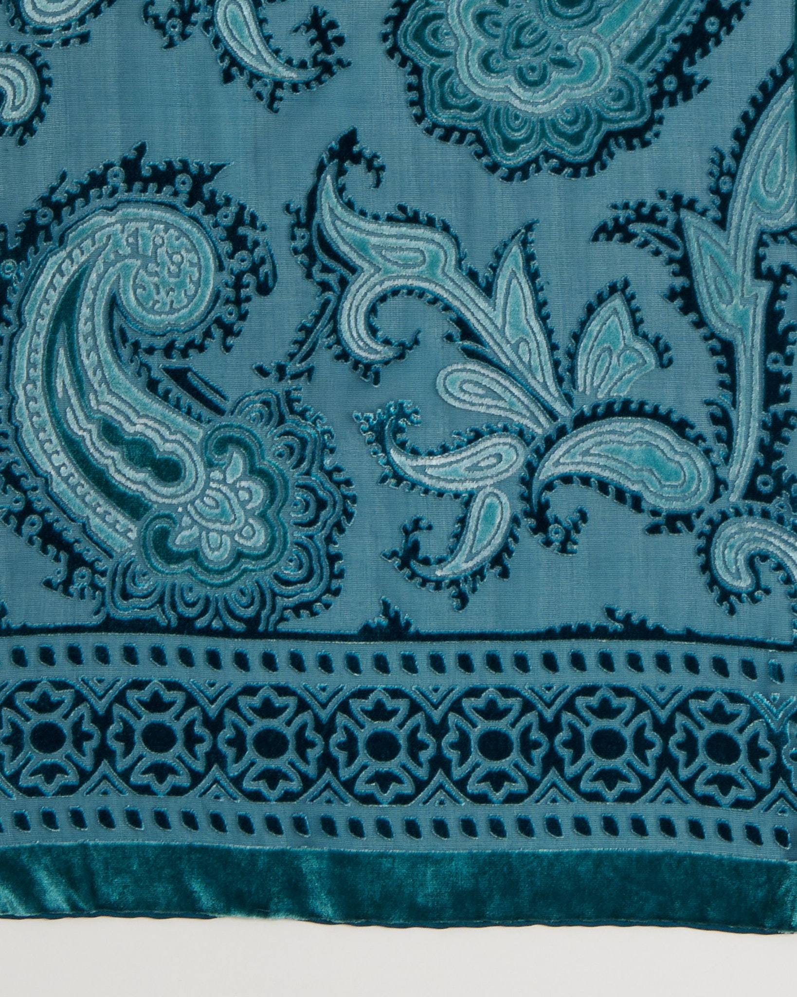 Шарф из вискозы и шелка. Шарф с  орнаментом пейсли в глубоких бирюзово-синих оттенках. Детальный рисунок и фактура бархата.