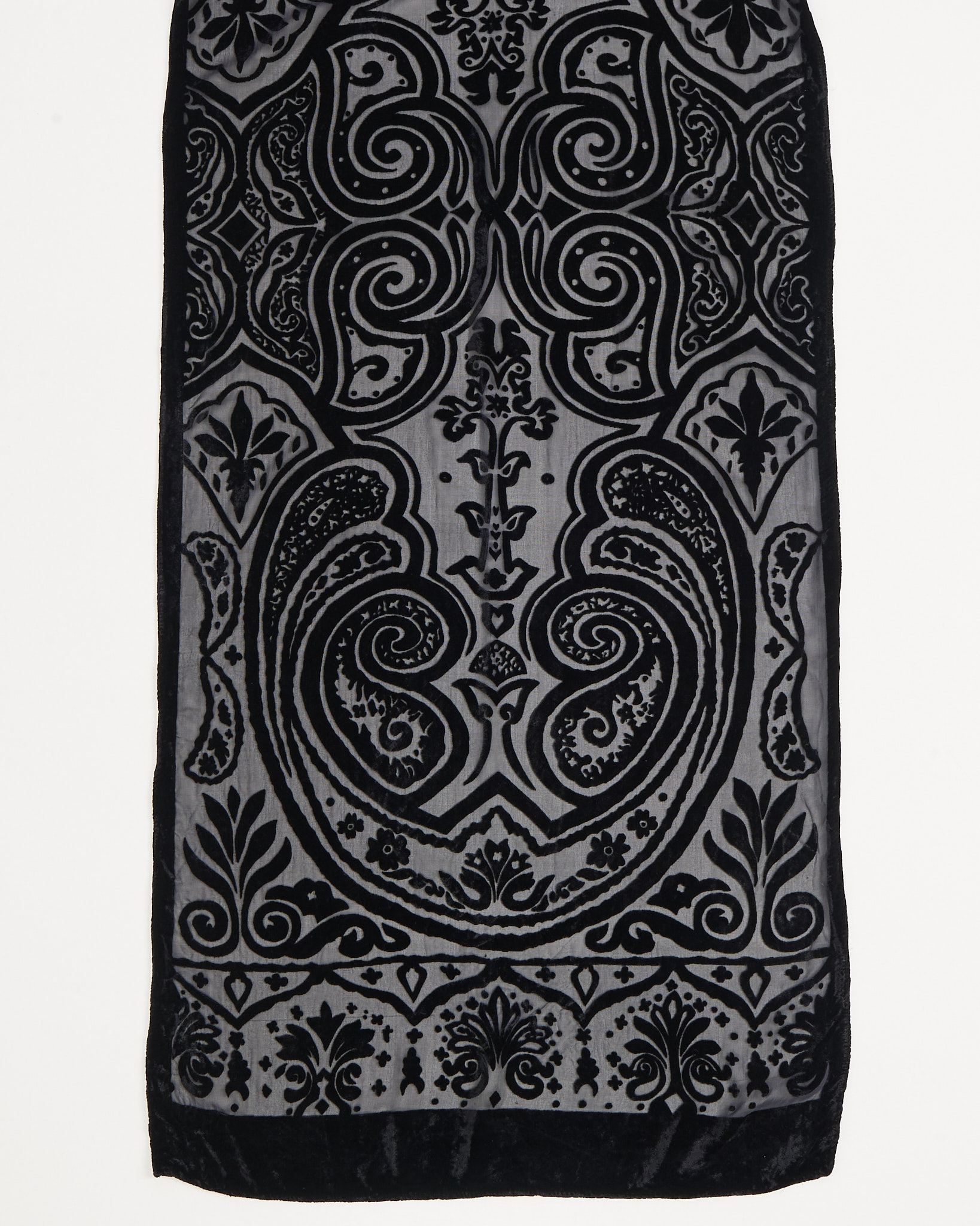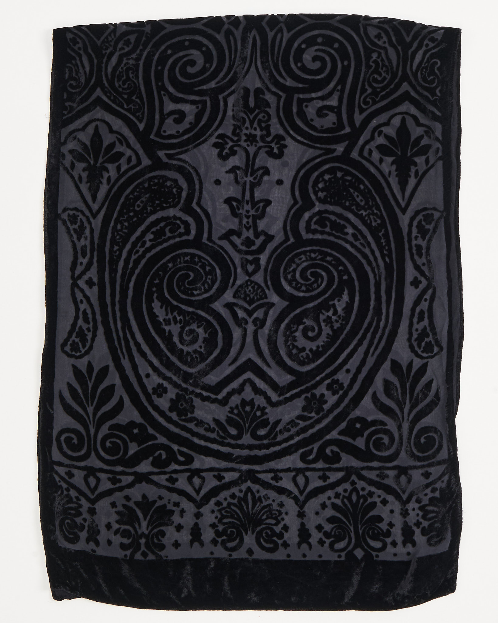 Винтажный шарф из вискозы и шёлка. Шарф с выжженным бархатным рисунком в глубоких тёмных оттенках.