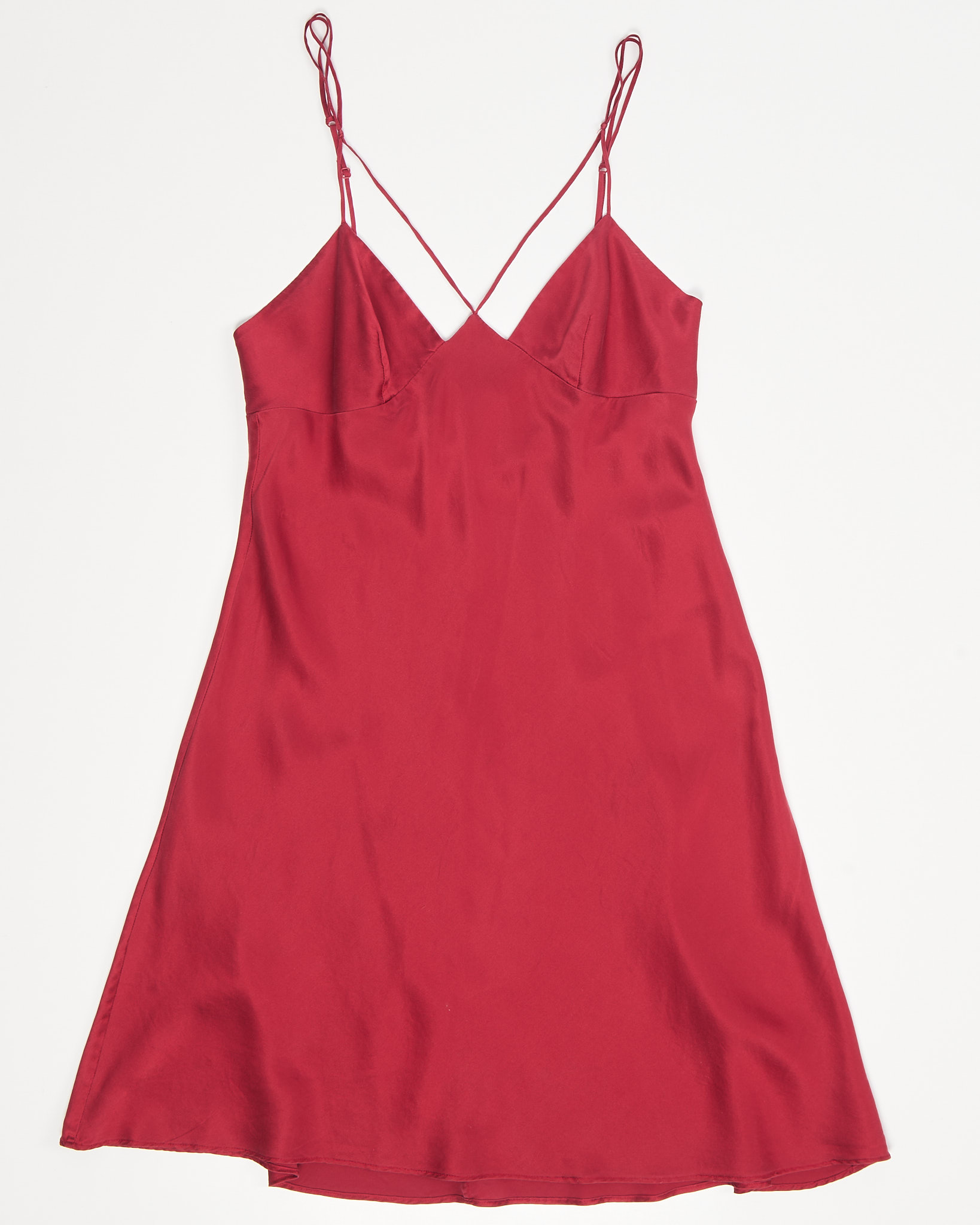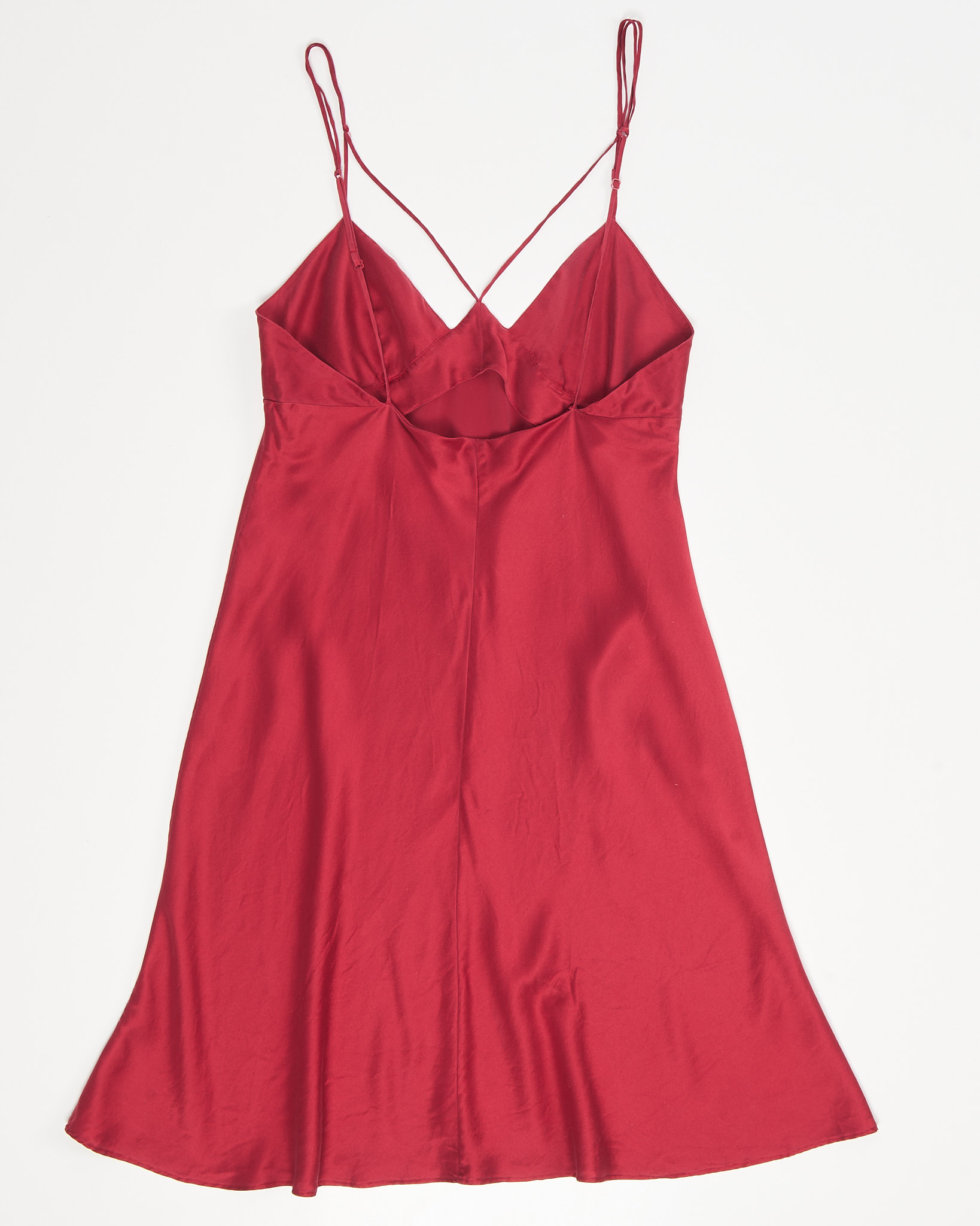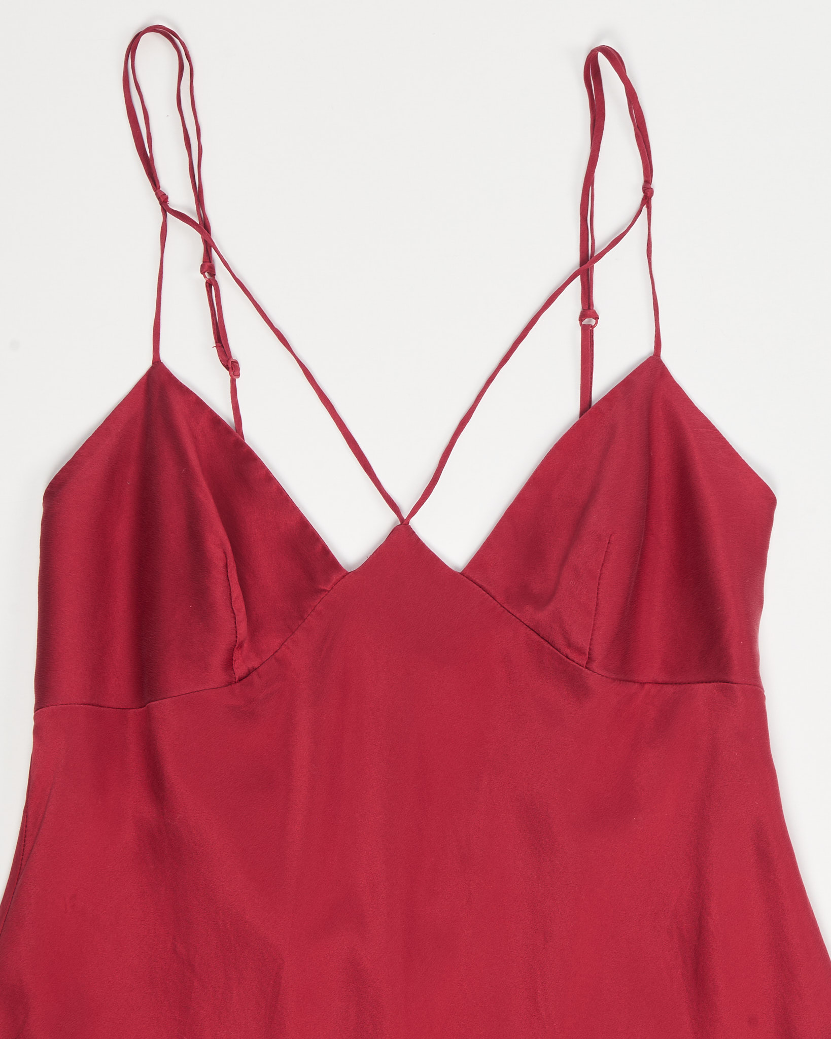 Платье-комбинация из 100% шелка. Лаконичный силуэт подчёркивает линию корпуса и формирует аккуратную посадку по фигуре. Регулируемые бретели дают возможность настроить высоту и сделать крой более точным. Глубокий рубиновый оттенок добавляет выразительность образу. Модель выполнена в стиле lingerie и выделяется тонкой работой ткани.