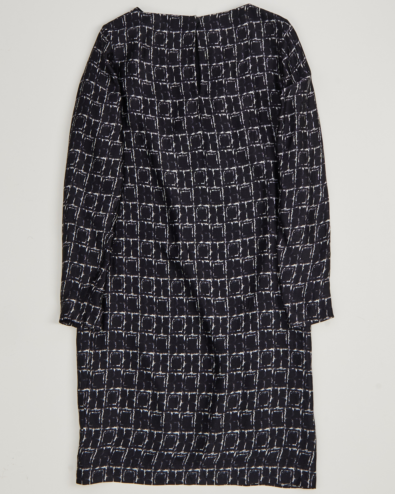 Платье Drykorn из натурального шелка.  Посадка прямая, силуэт свободный, линия плеча расслабленная. Принт с эффектом ручного рисунка, застежка на пуговицу сзади.