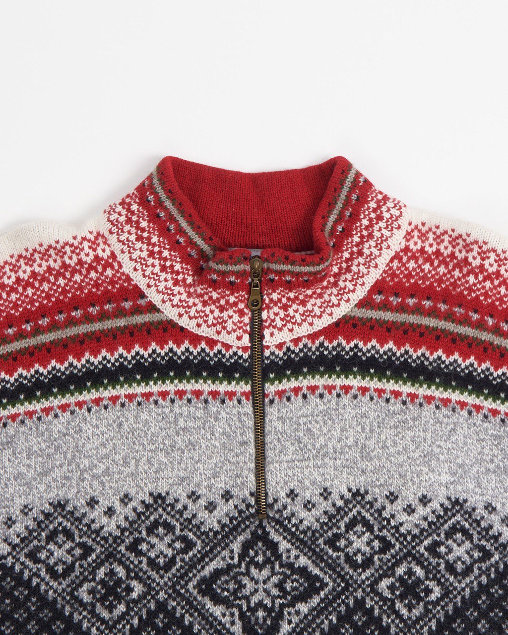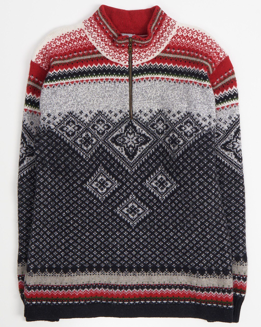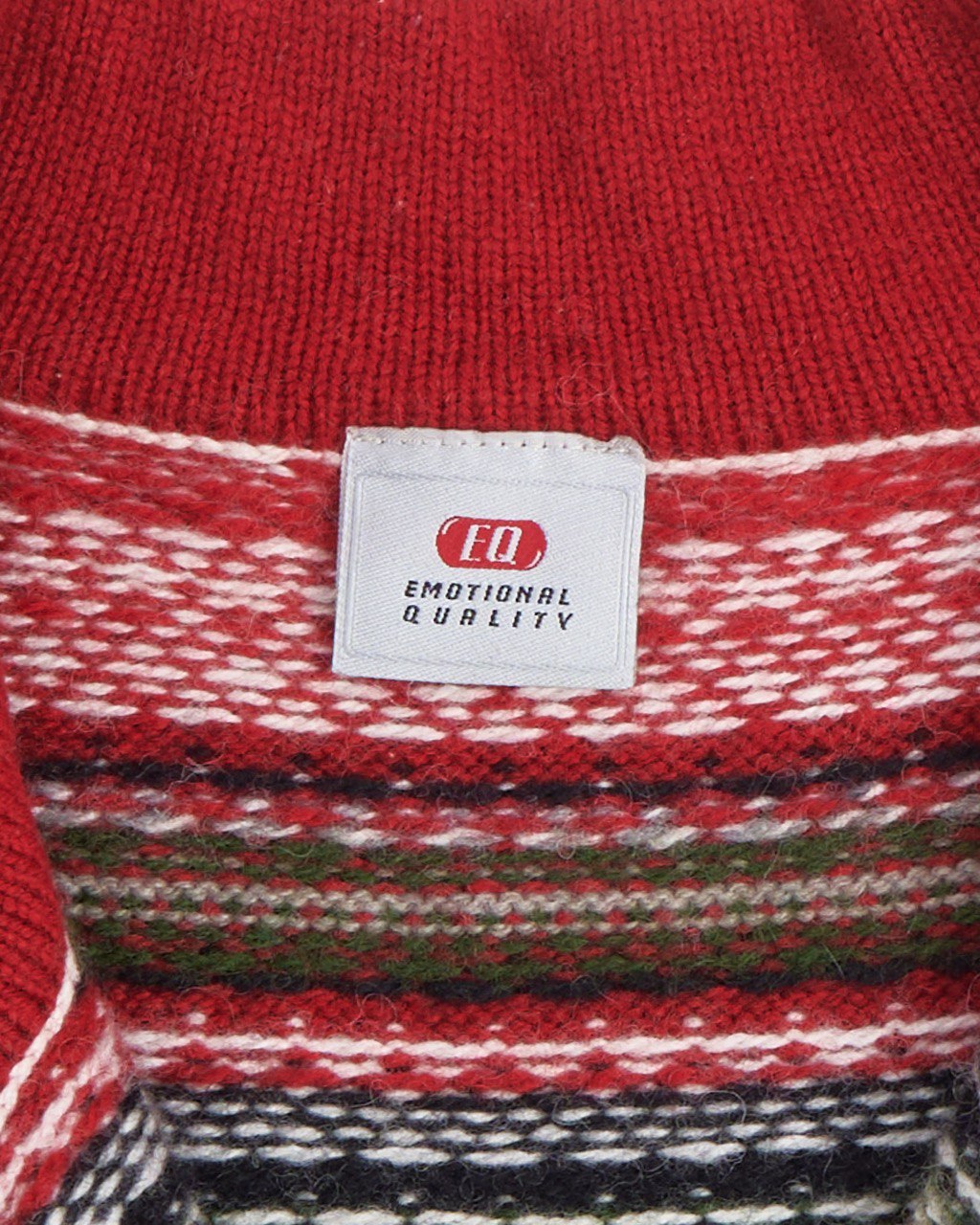 Шерстяной свитер EQ в нордическом стиле. Плотная вязка на 90% состоит из натуральной шерсти. Сложный геометрический орнамент, прямой крой, свободная посадка. Высокий воротник на молнии надежно закрывает шею от ветра и холода.