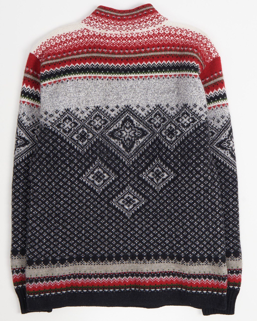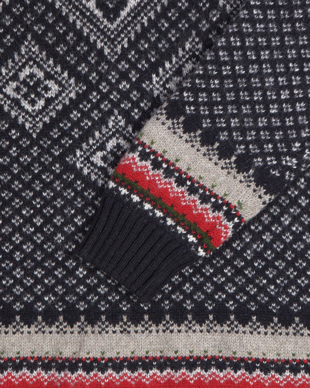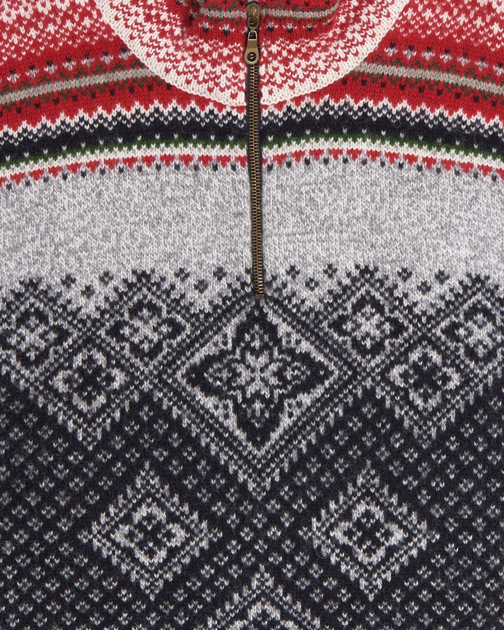Шерстяной свитер EQ в нордическом стиле. Плотная вязка на 90% состоит из натуральной шерсти. Сложный геометрический орнамент, прямой крой, свободная посадка. Высокий воротник на молнии надежно закрывает шею от ветра и холода.