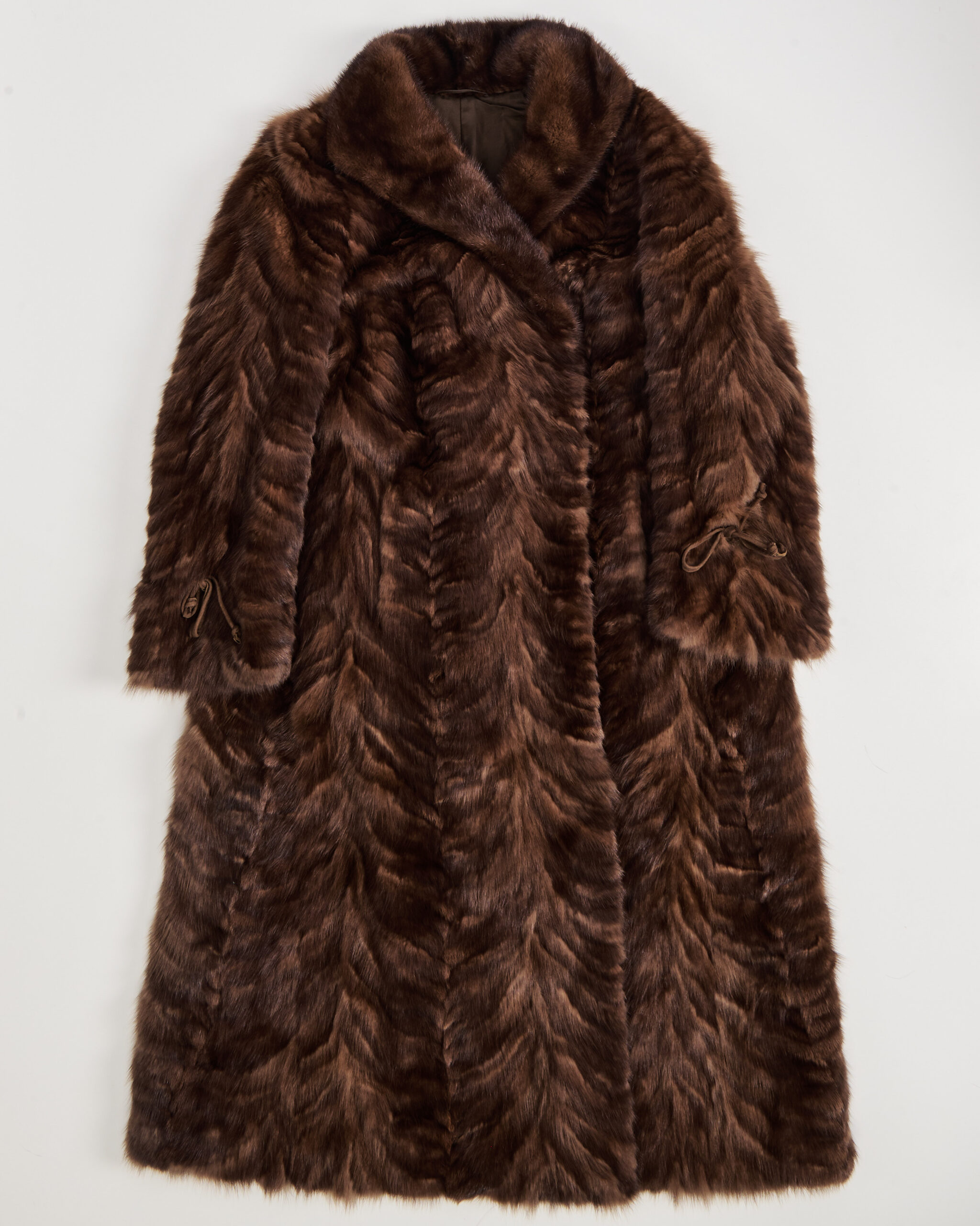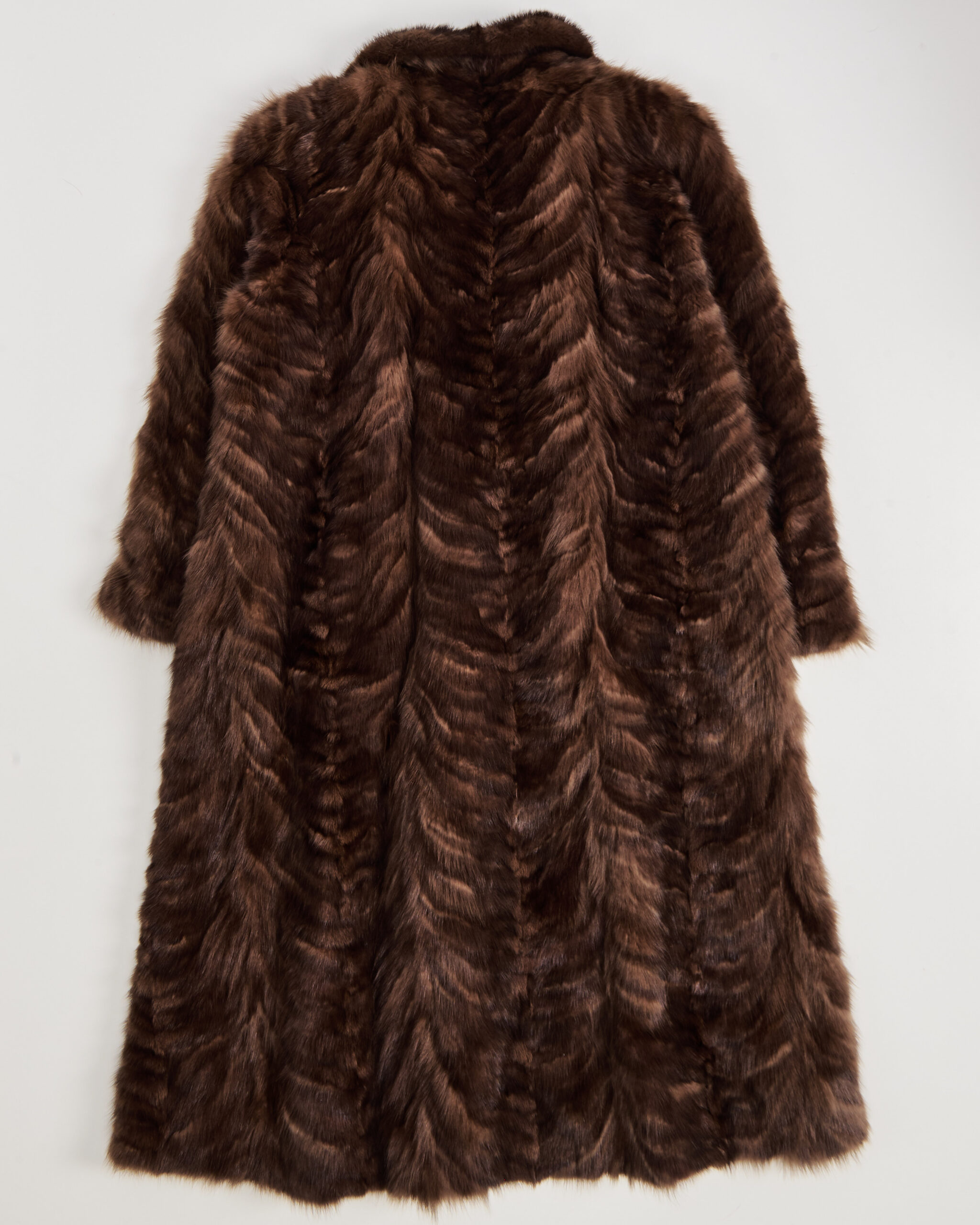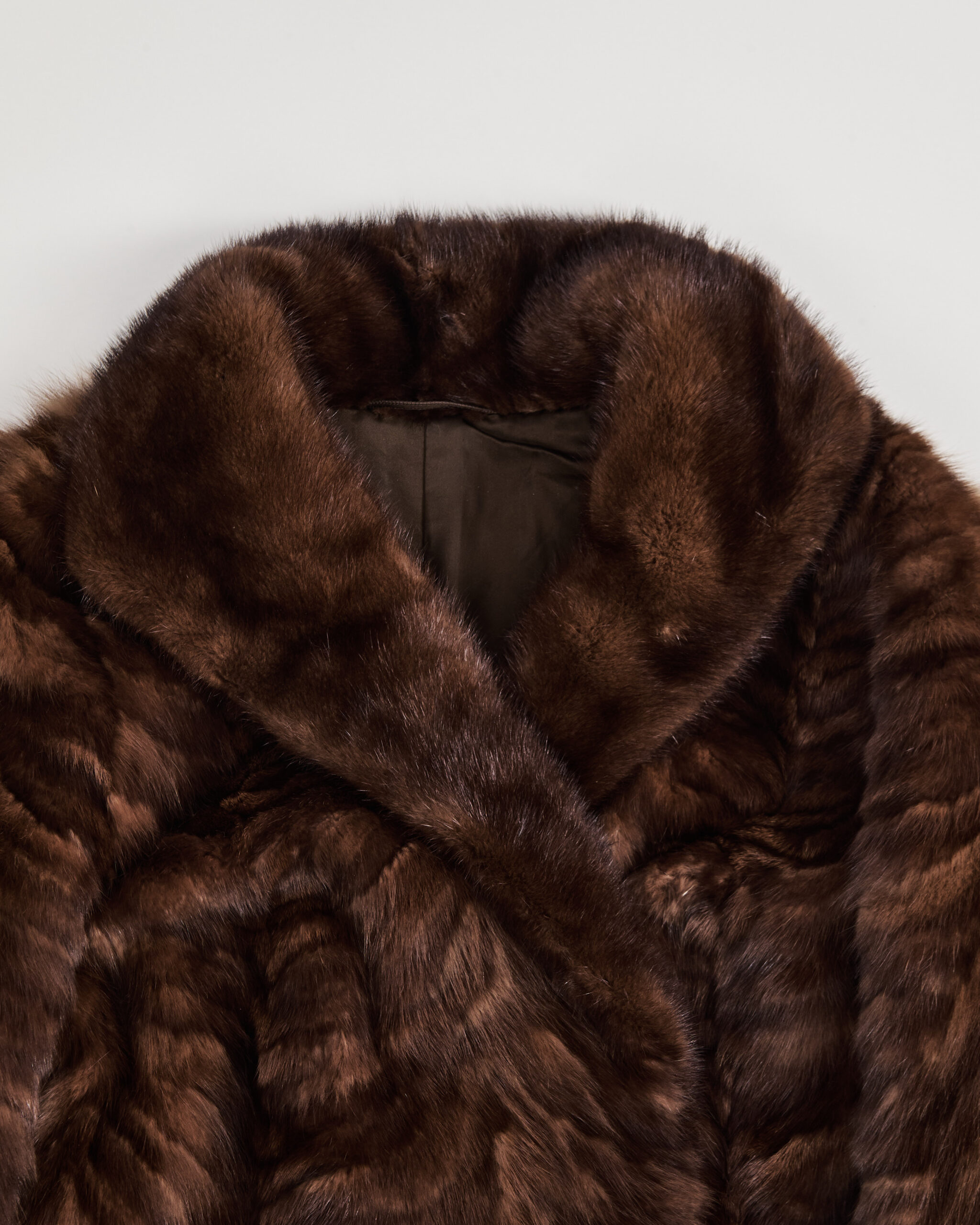 Винтажная шуба из натурального меха куницы с воротником из меха соболя. Шуба легкая. Прямой удлиненный силуэт