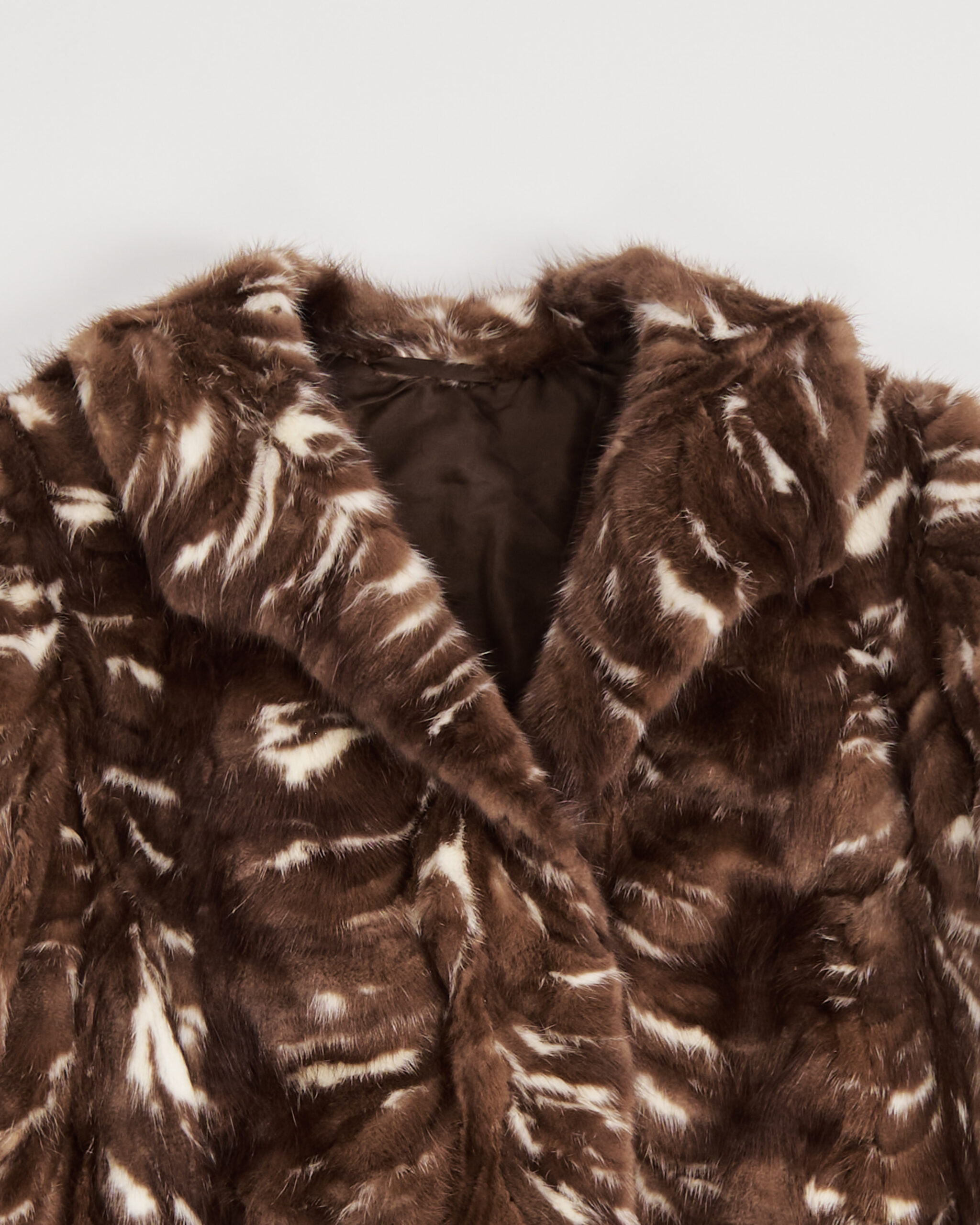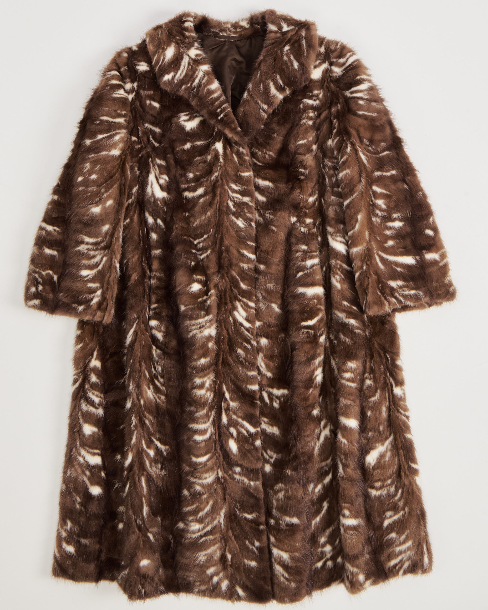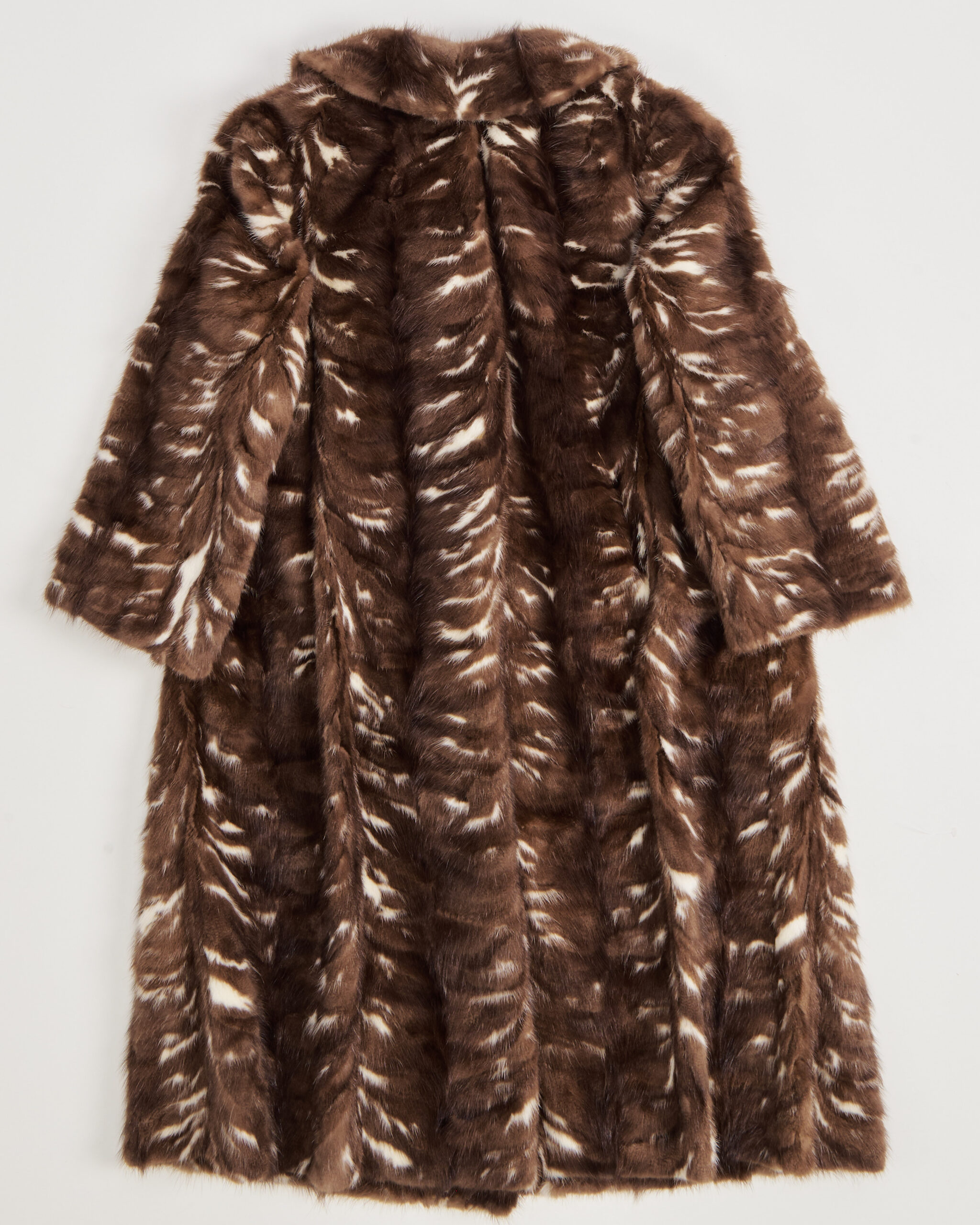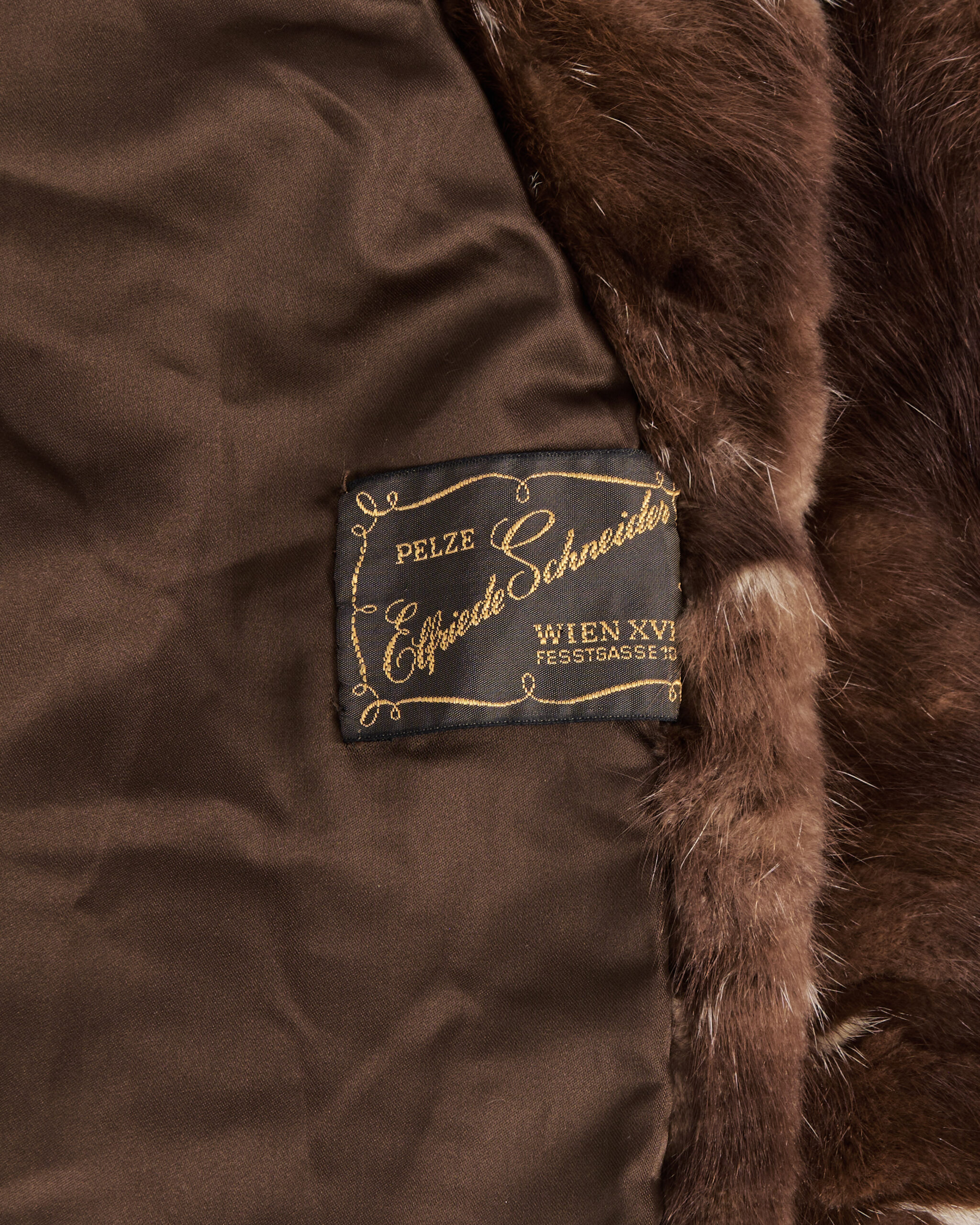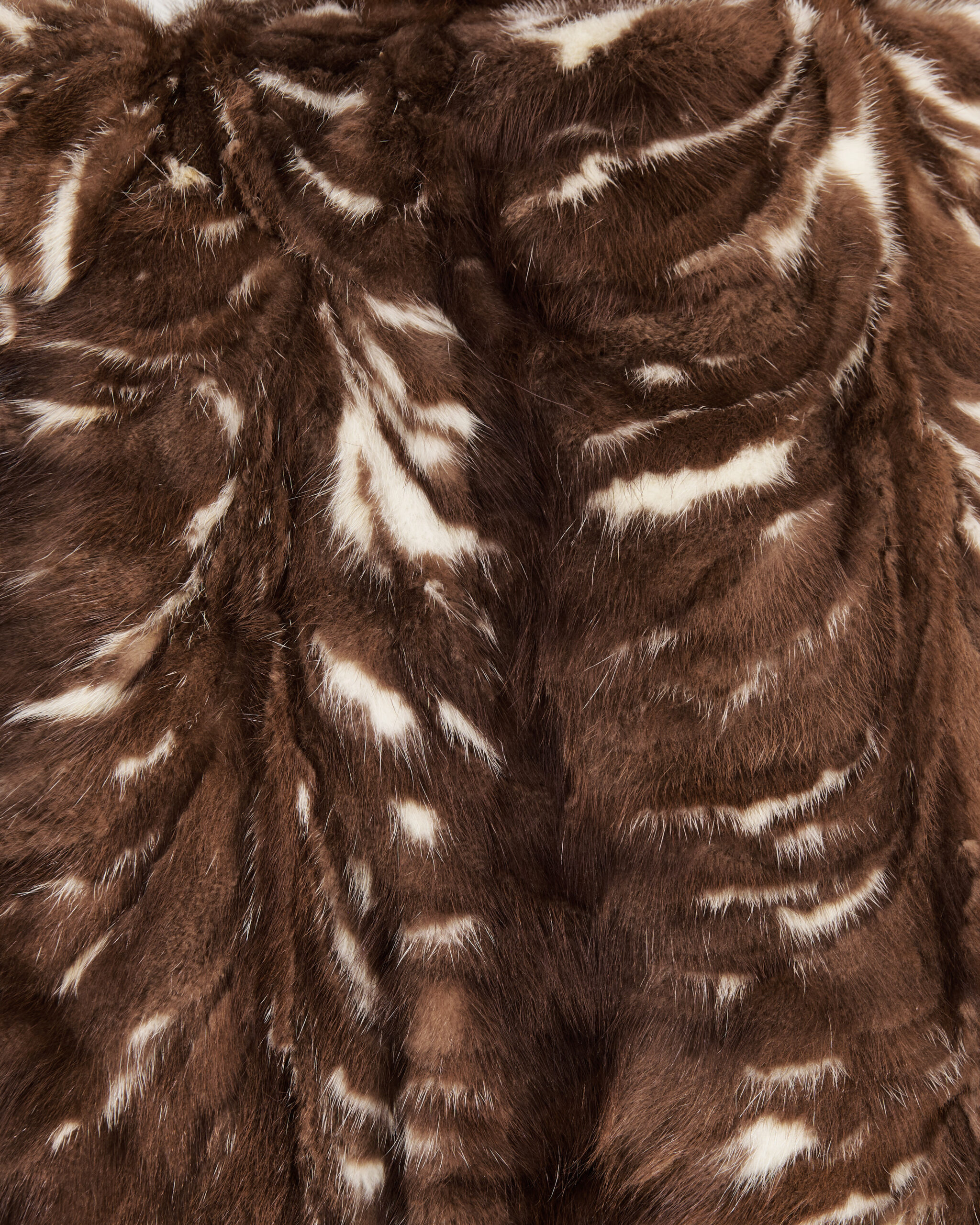 Шуба выполнена из мягкого меха, с приятной на ощупь фактурой. Посадка свободная, за счёт акцента на плечи силуэт выглядит объёмным. Мех с глубоким коричневым оттенком и контрастными светлыми вкраплениями. Длина позволяет создать цельный образ как с платьем или юбкой, так и с брюками. Уникальность модели в редкой расцветке меха.