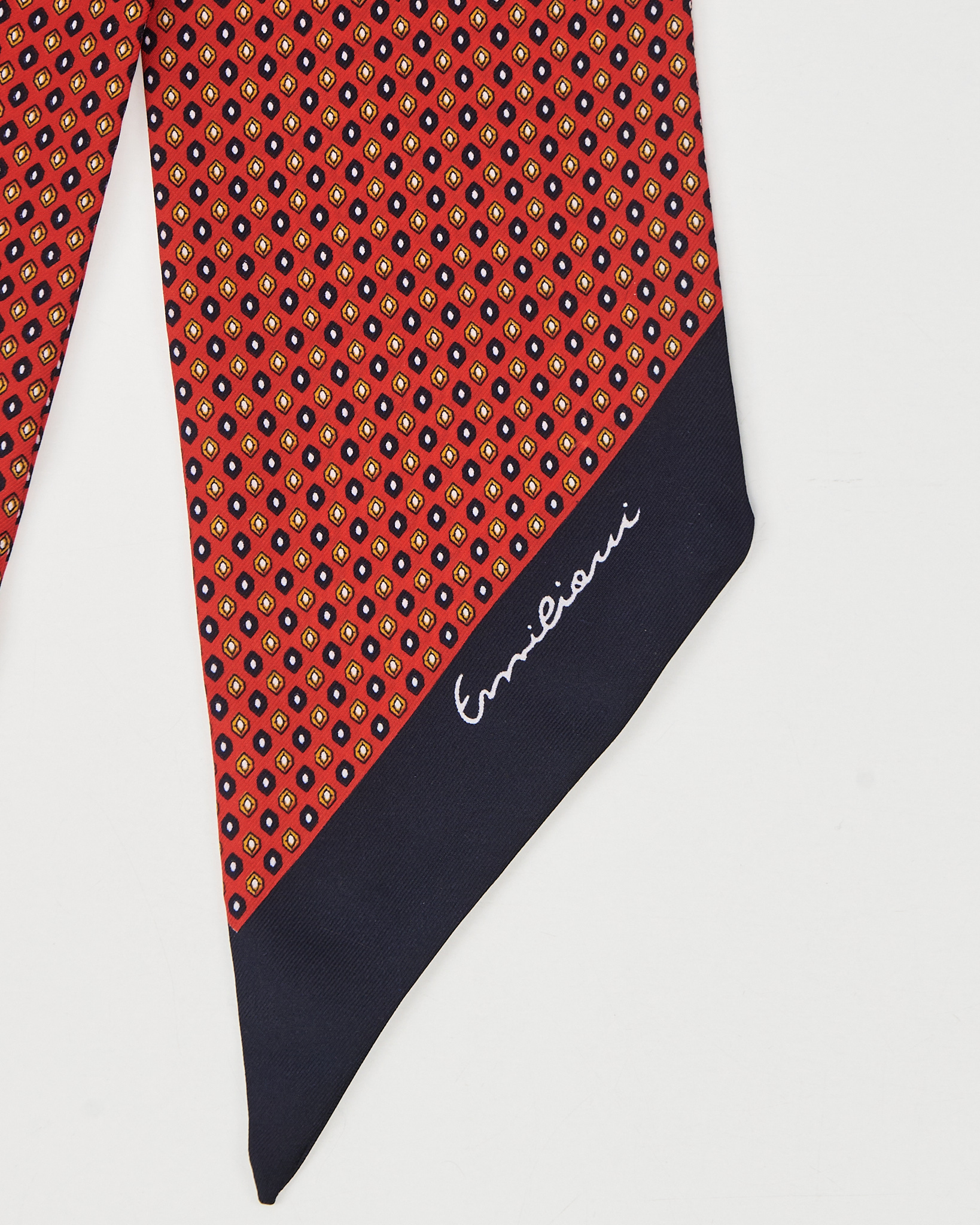 Платок из 100% натурального шелка. Контрастный геометрический рисунок, фирменный логотип.