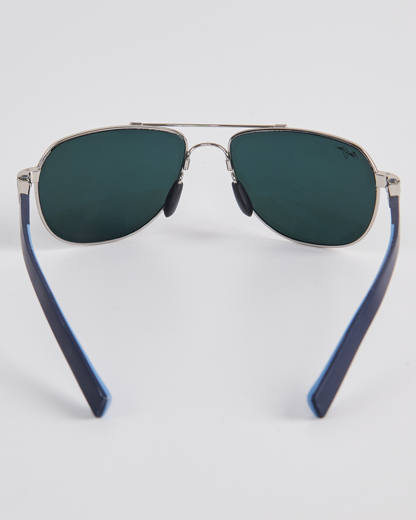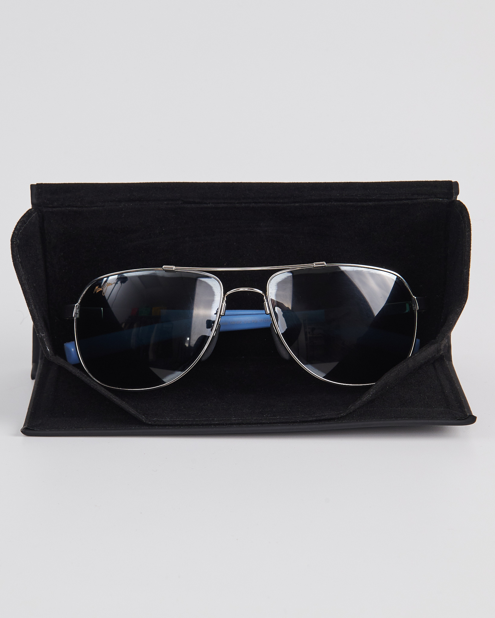 Очки "авиатор" в металлической оправе. Дужки сине-голубого цвета. Линзы с защитой от ультрафиолета. Лимитированная серия очков, выпущенная к чемпионату BMW PGA Championship