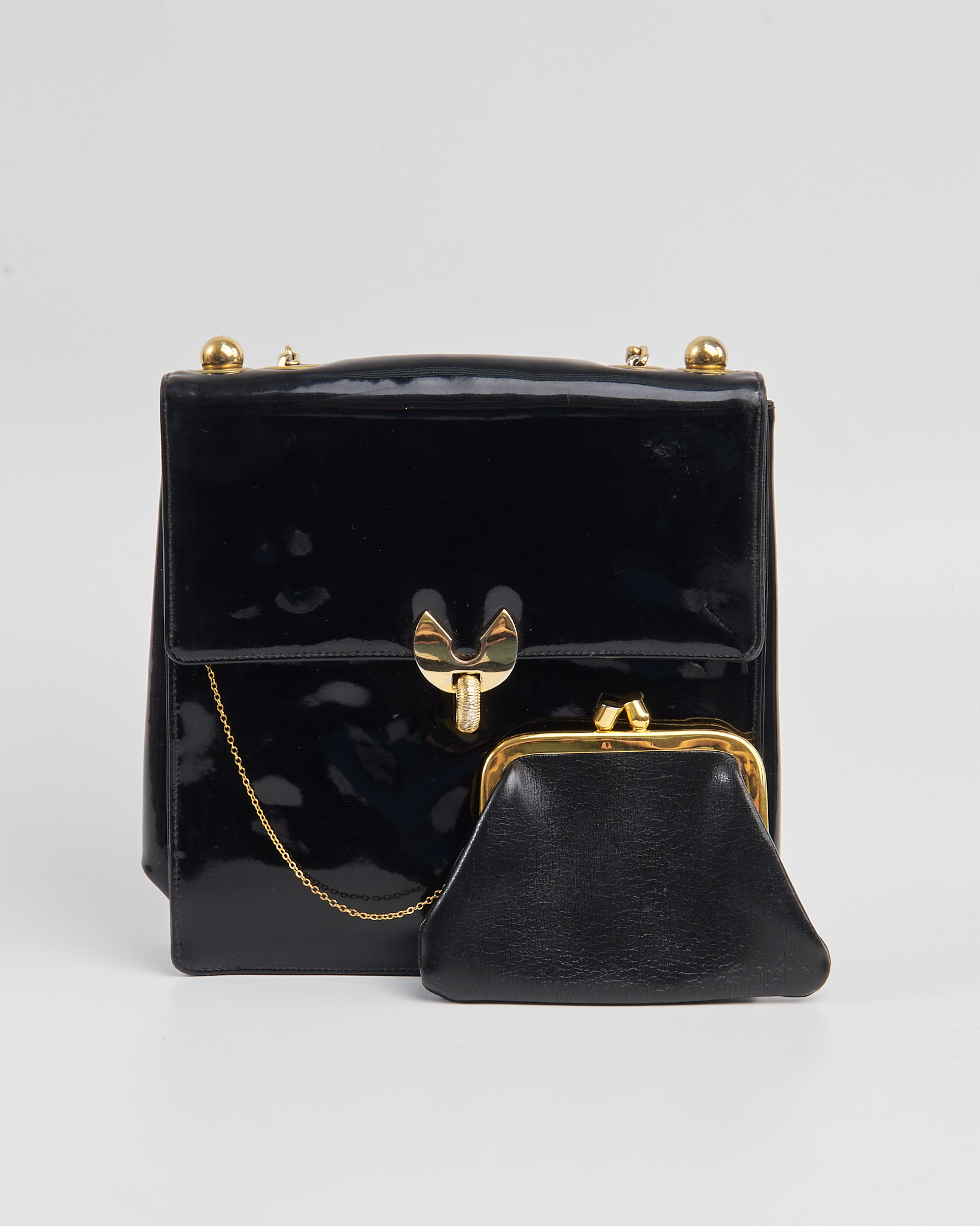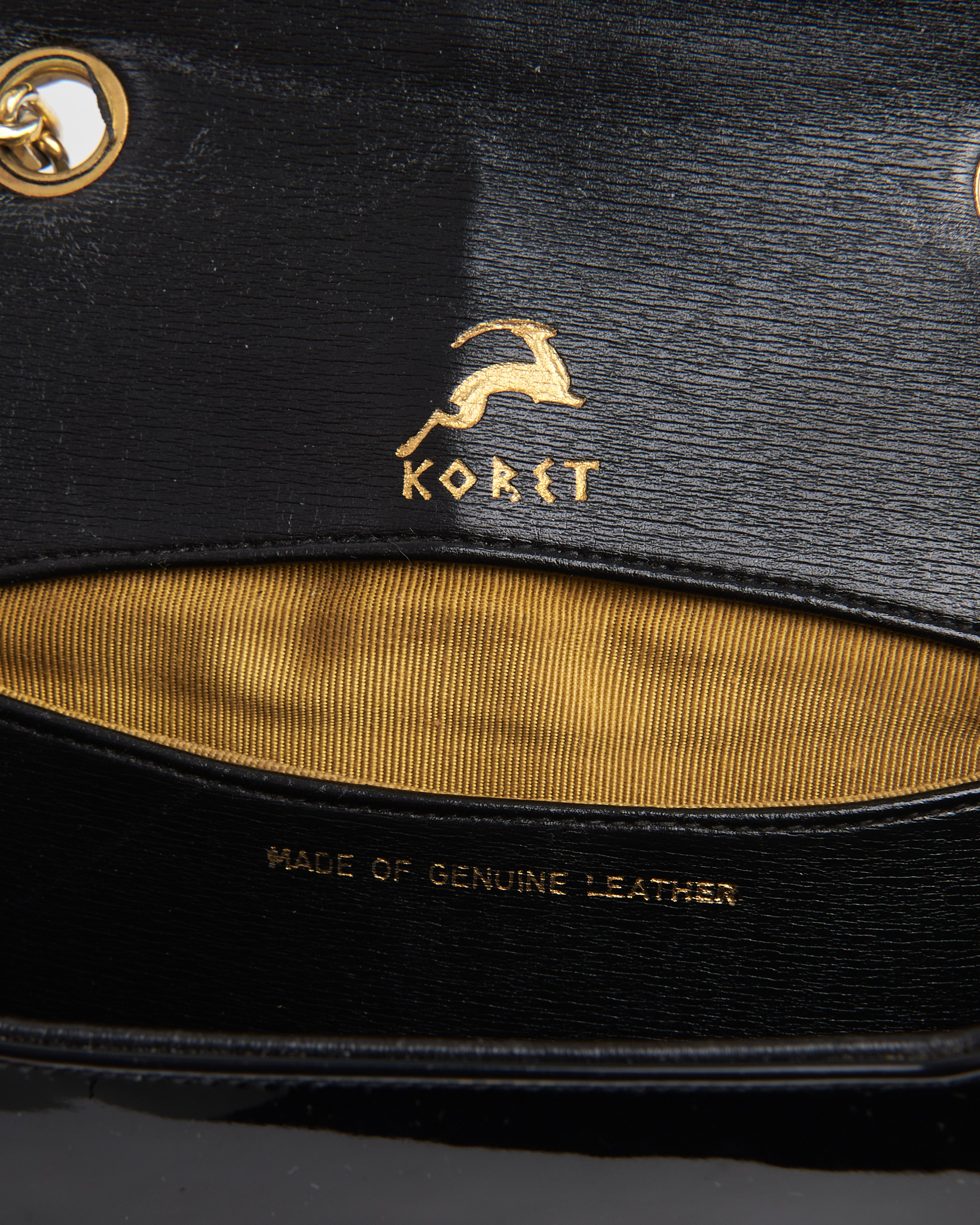 Чёрная сумка Koret из 100% натуральной кожи. Металлическая фурнитура с надёжным замком, несколько функциональных отделений внутри сумки, так же в комплекте миниатюрный кошелёк.