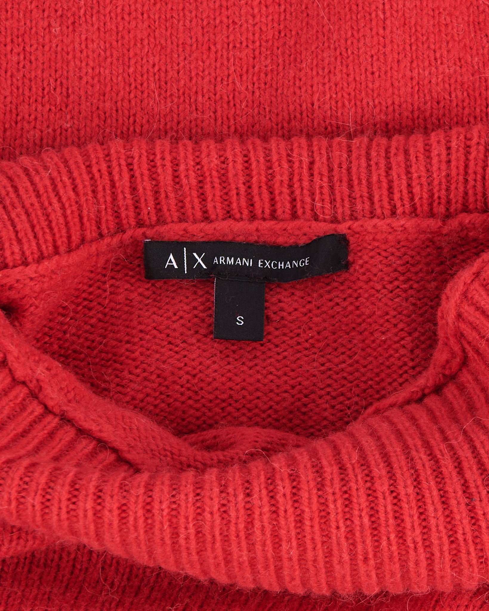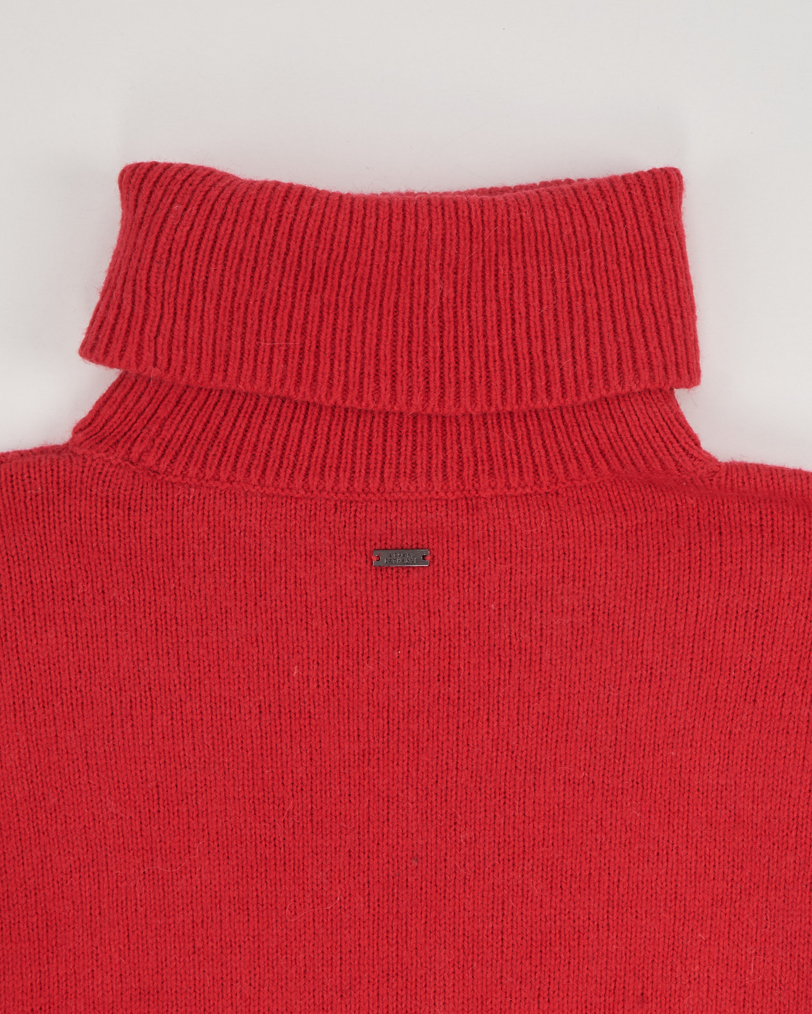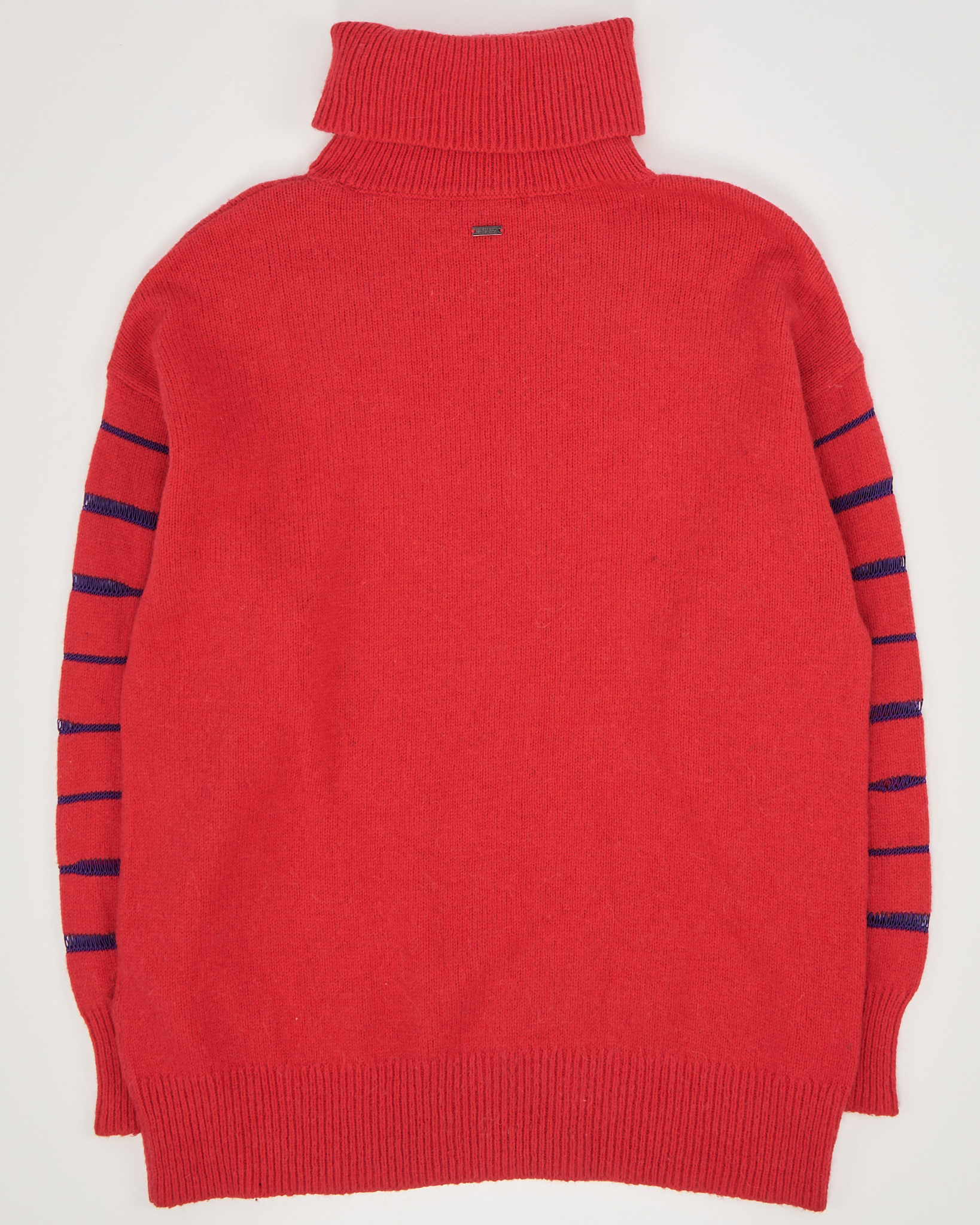 Розовый свитер с высоким воротом Armani Exchange. Расслабленный силуэт, свободная посадка. Контрастные полосы на рукавах и минималистичная металлическая пластина на спинке.