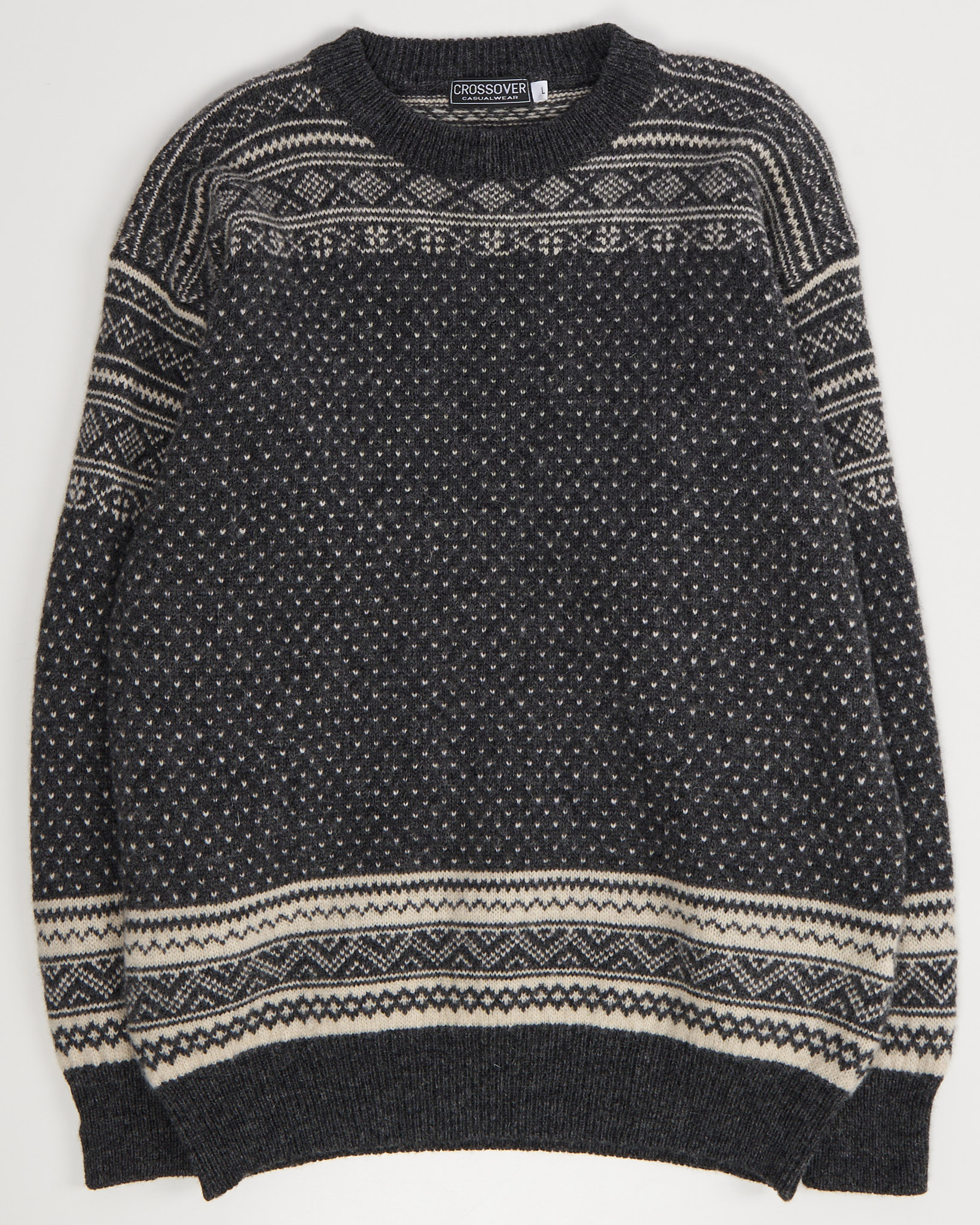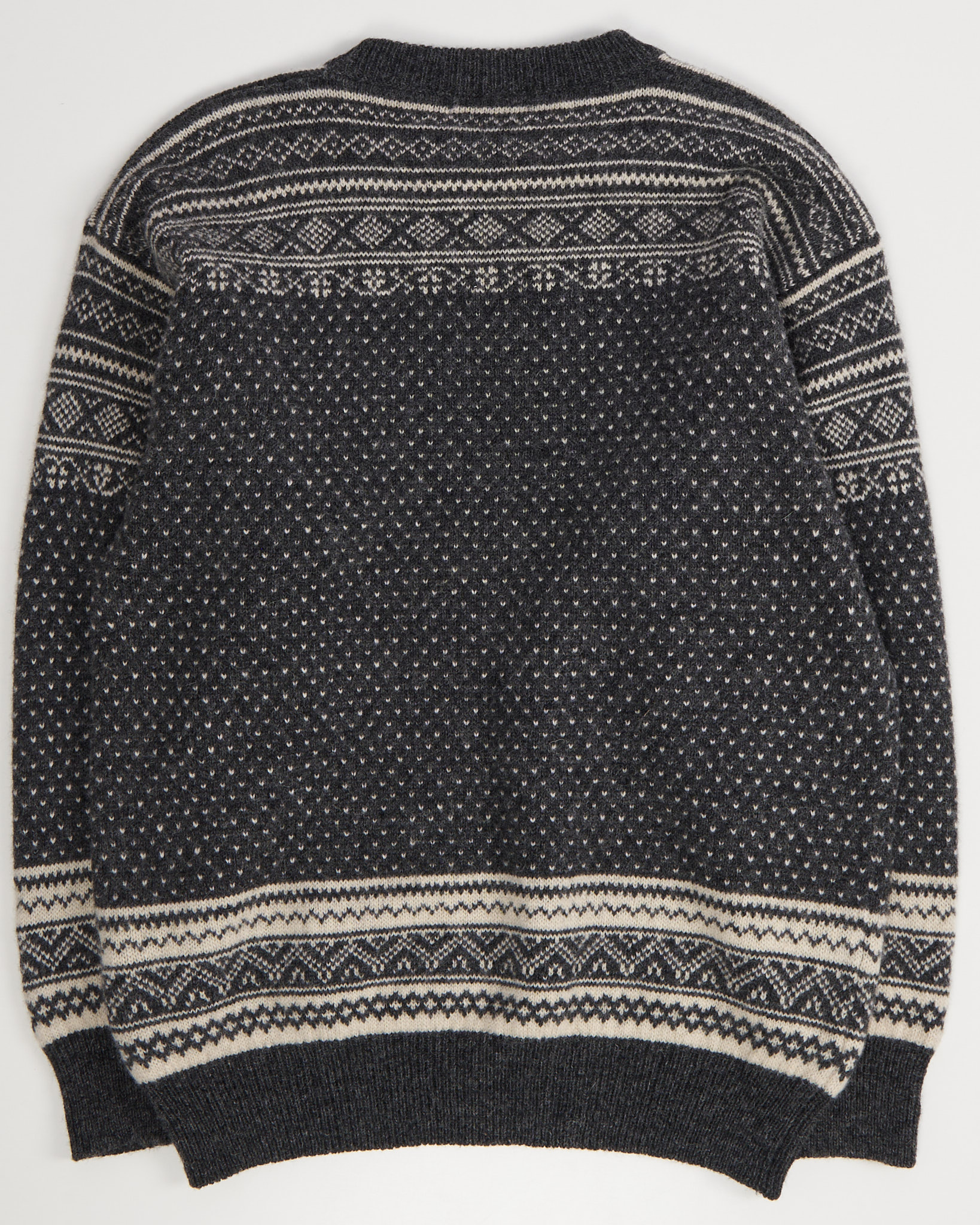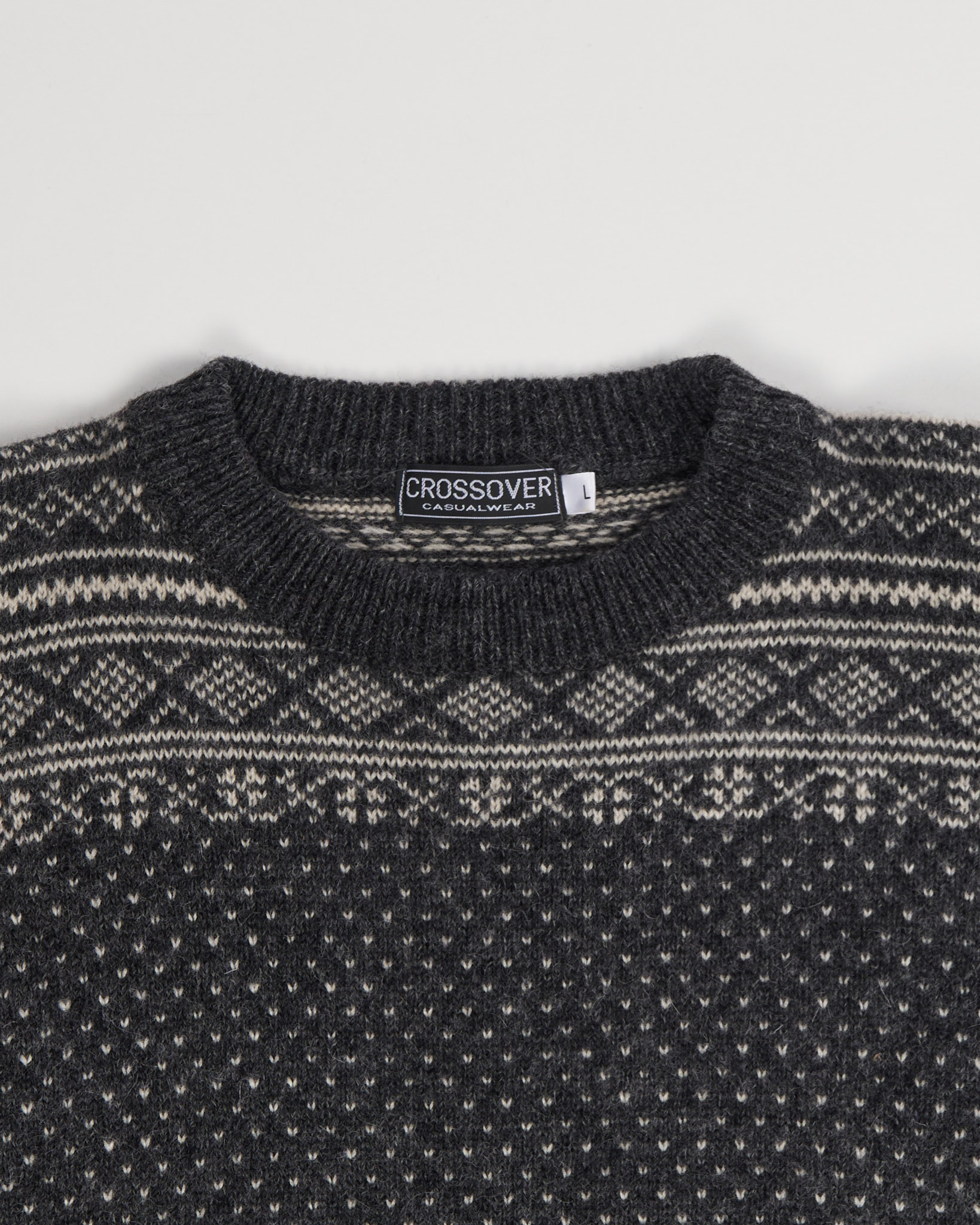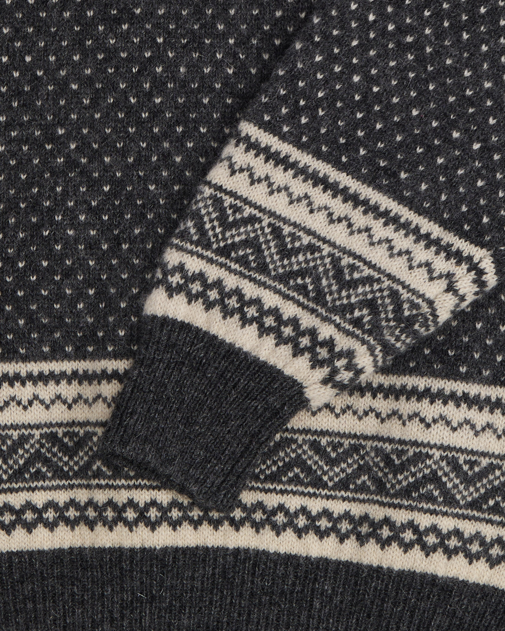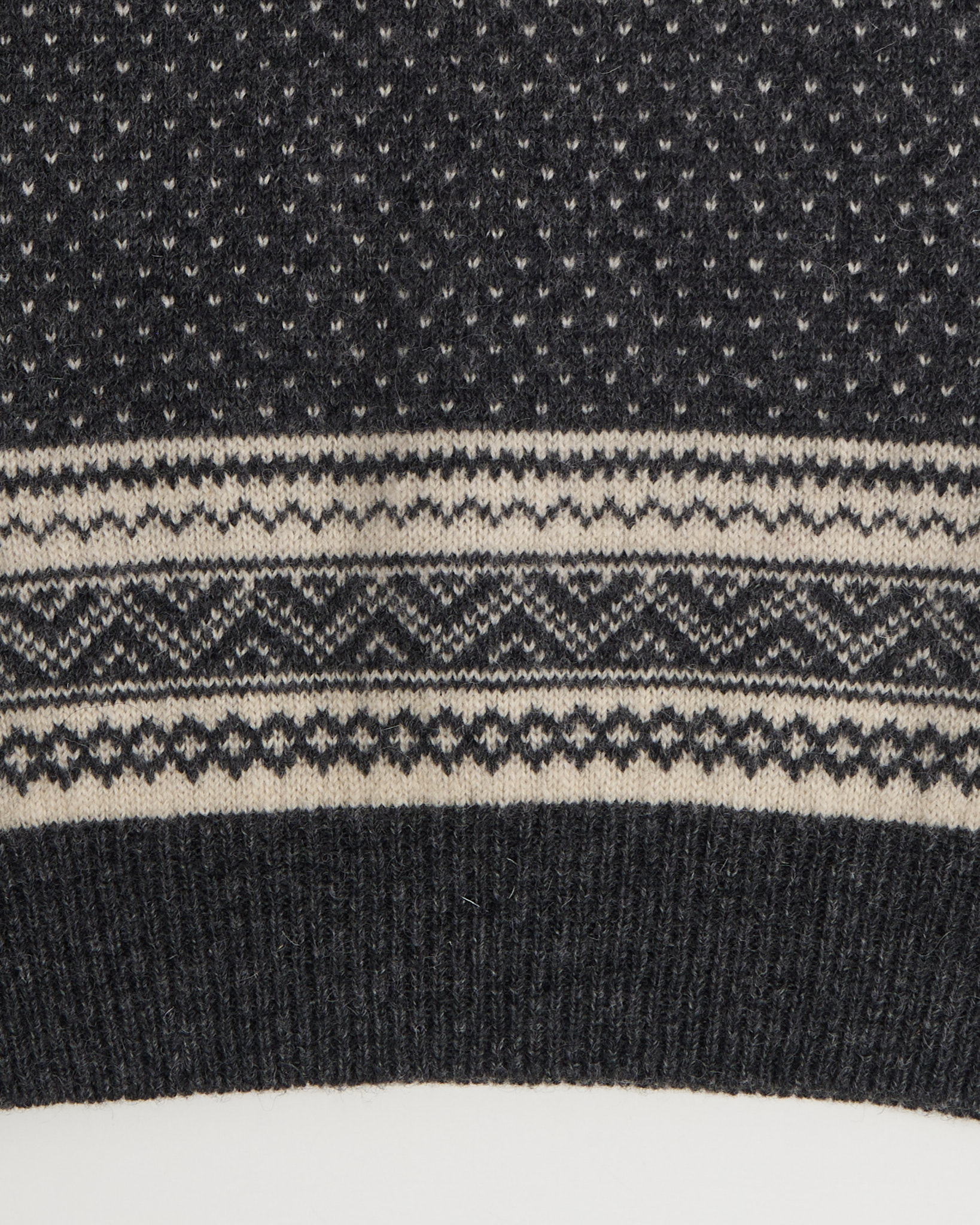 Свитер из 100% шетландской шерсти. Посадка свободная, без излишнего объёма. Контрастный рисунок, плотная вязка, манжеты и горловина дополнены аккуратной резинкой.