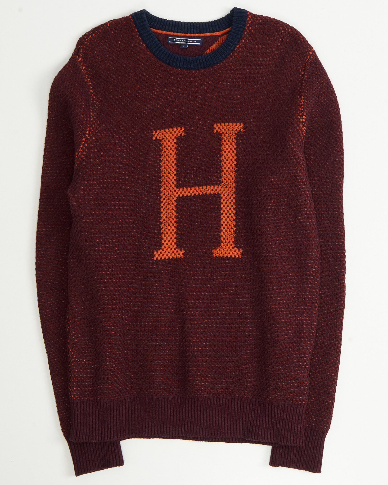 Свитер из шерсти с контрастной буквой H на груди и аккуратной отделкой по вороту. Посадка прямая