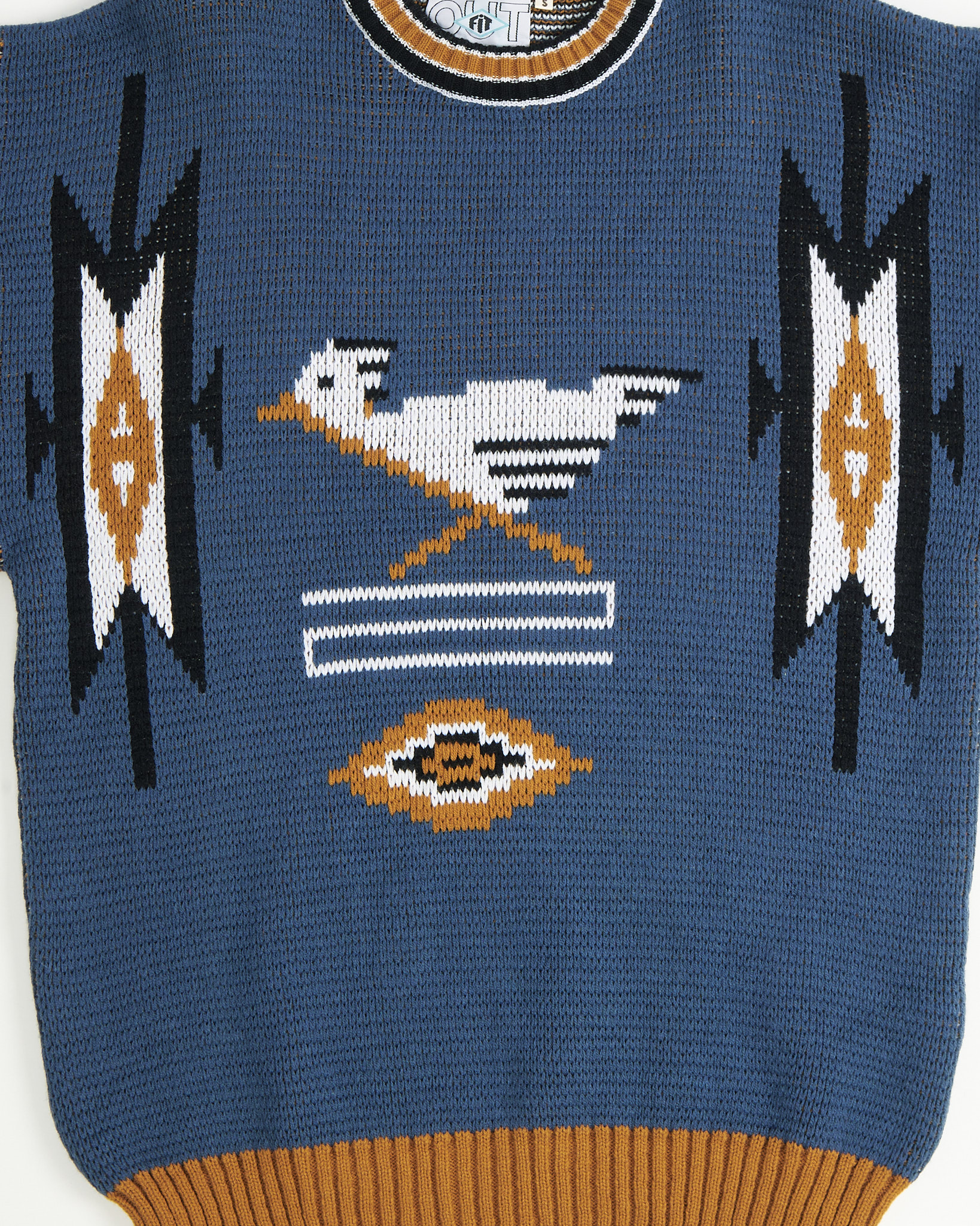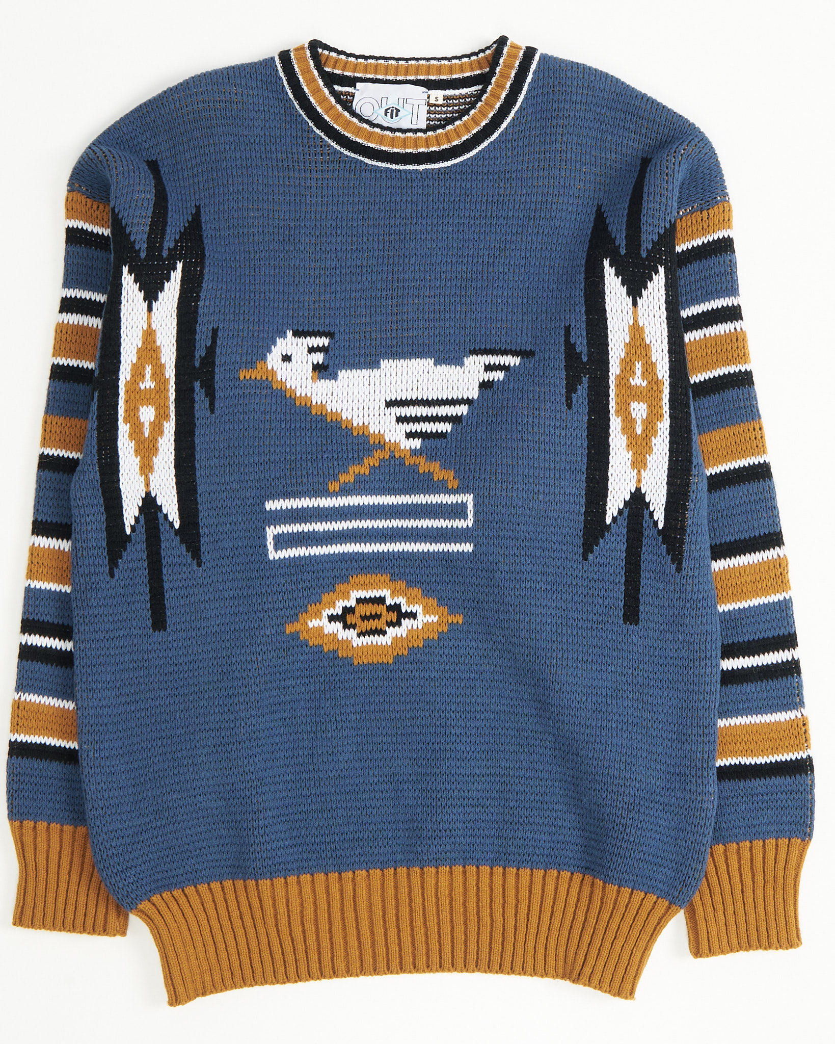 Вязаный свитер с насыщенным орнаментом и контрастными деталями, который сразу привлекает внимание фактурой и рисунком. Посадка свободная, с мягкой линией плеч и аккуратными манжетами, за счёт чего вещь комфортно лежит по фигуре и не сковывает движения. Свитер плотный с графичным принтом.