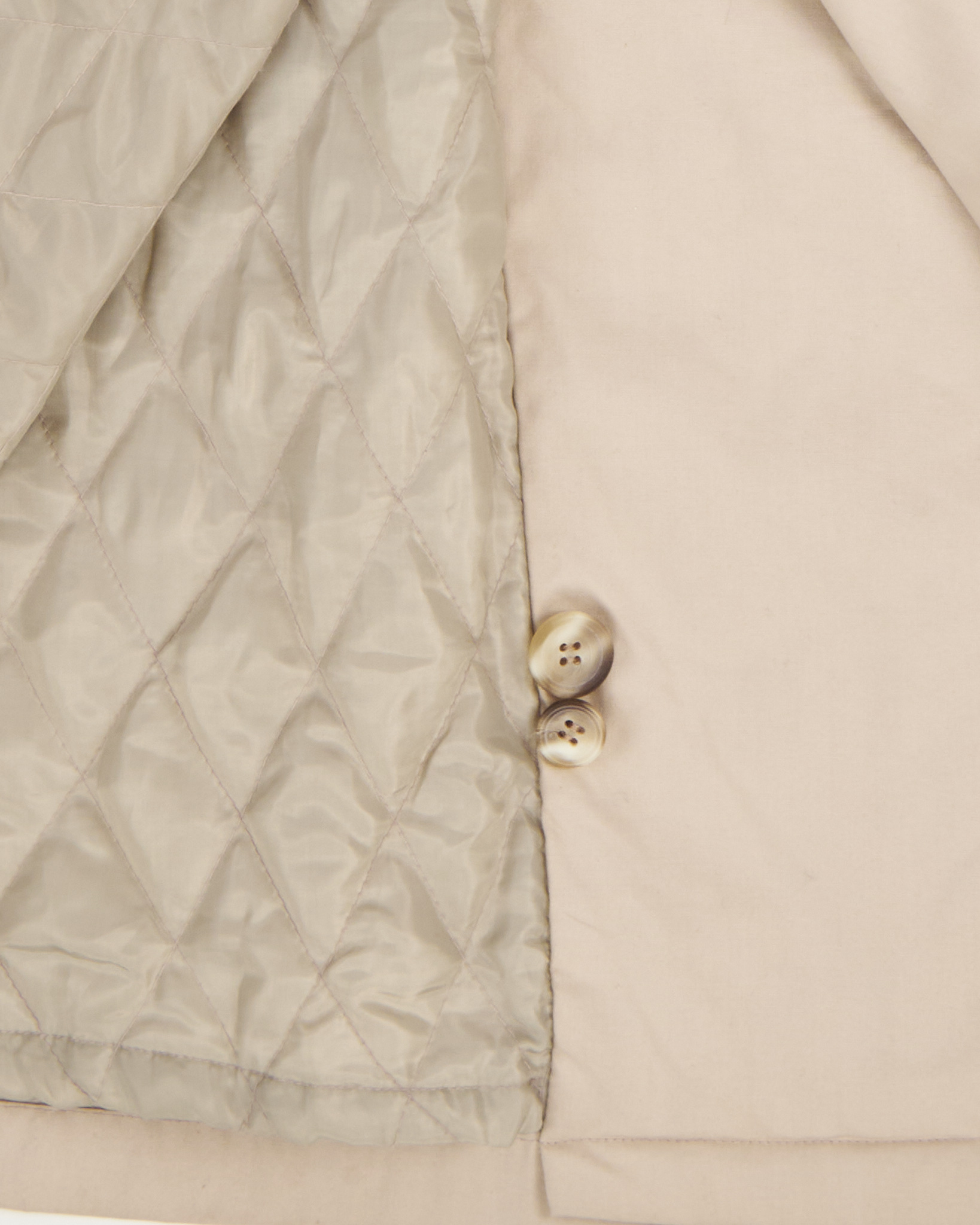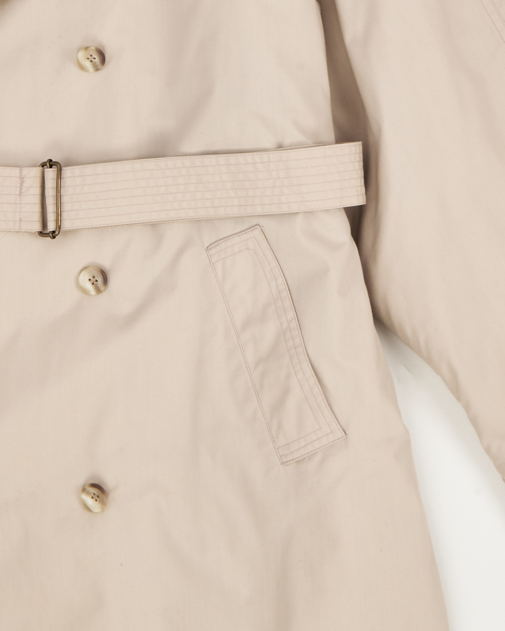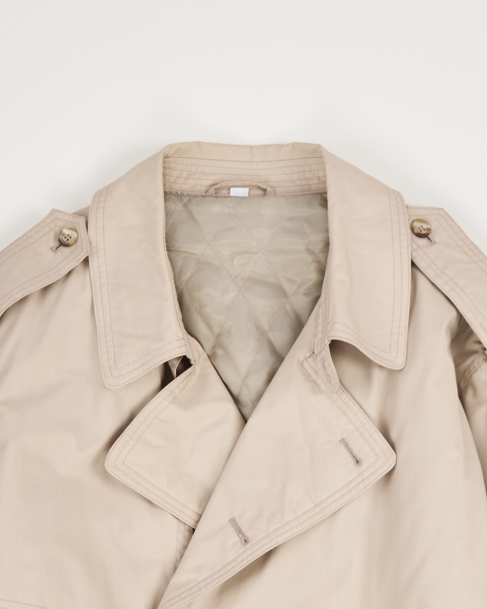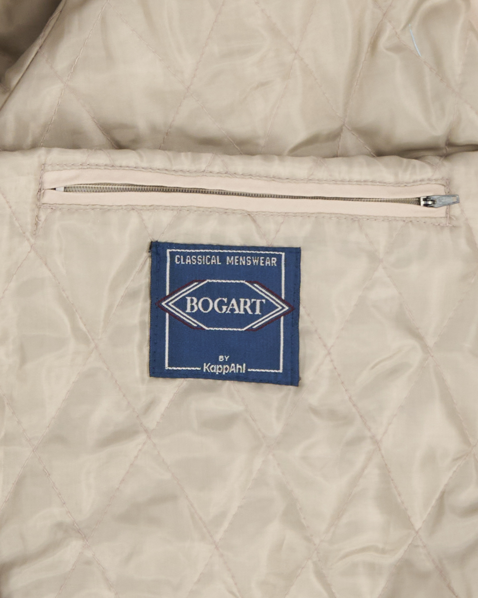 Тренч Bogart от KappAhl в светлом бежевом оттенке. Модель из плотной хлопковой ткани с чёткой посадкой, регулируется поясом на талии. Внутри стёганая подкладка с ромбовидной строчкой. Двубортная застёжка, широкий воротник и погоны.