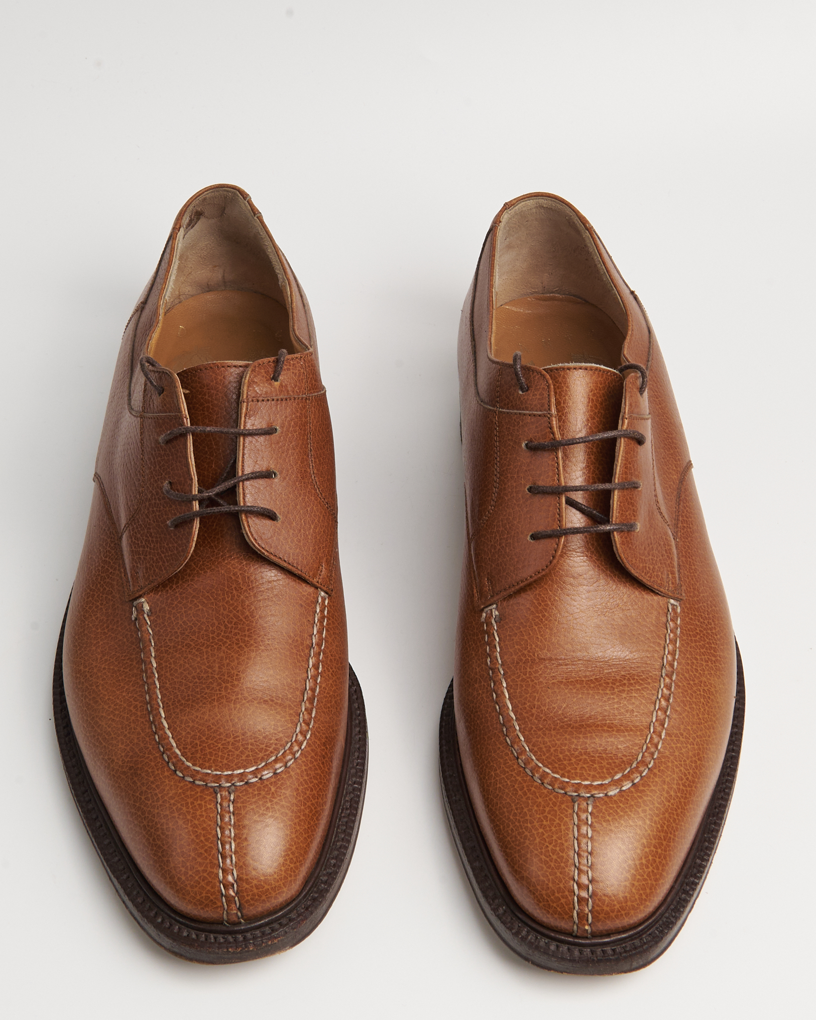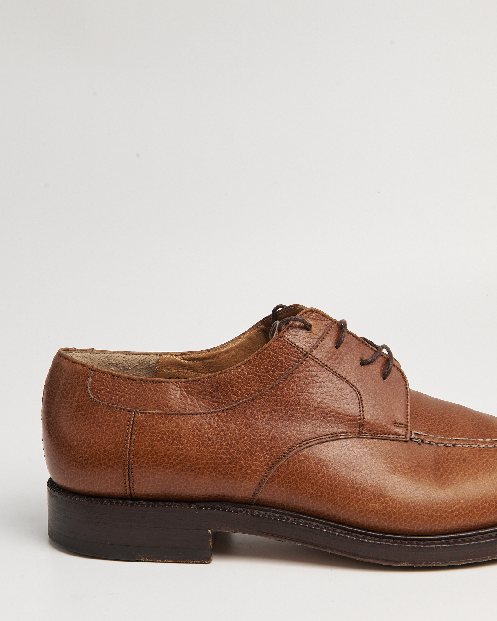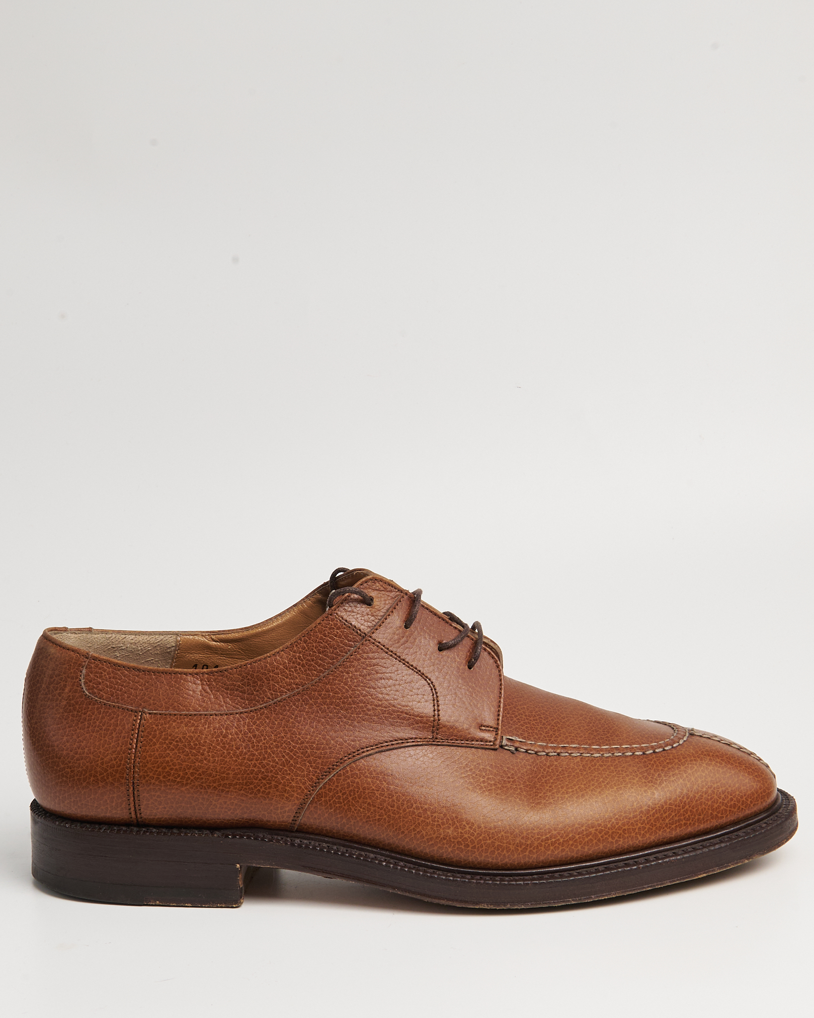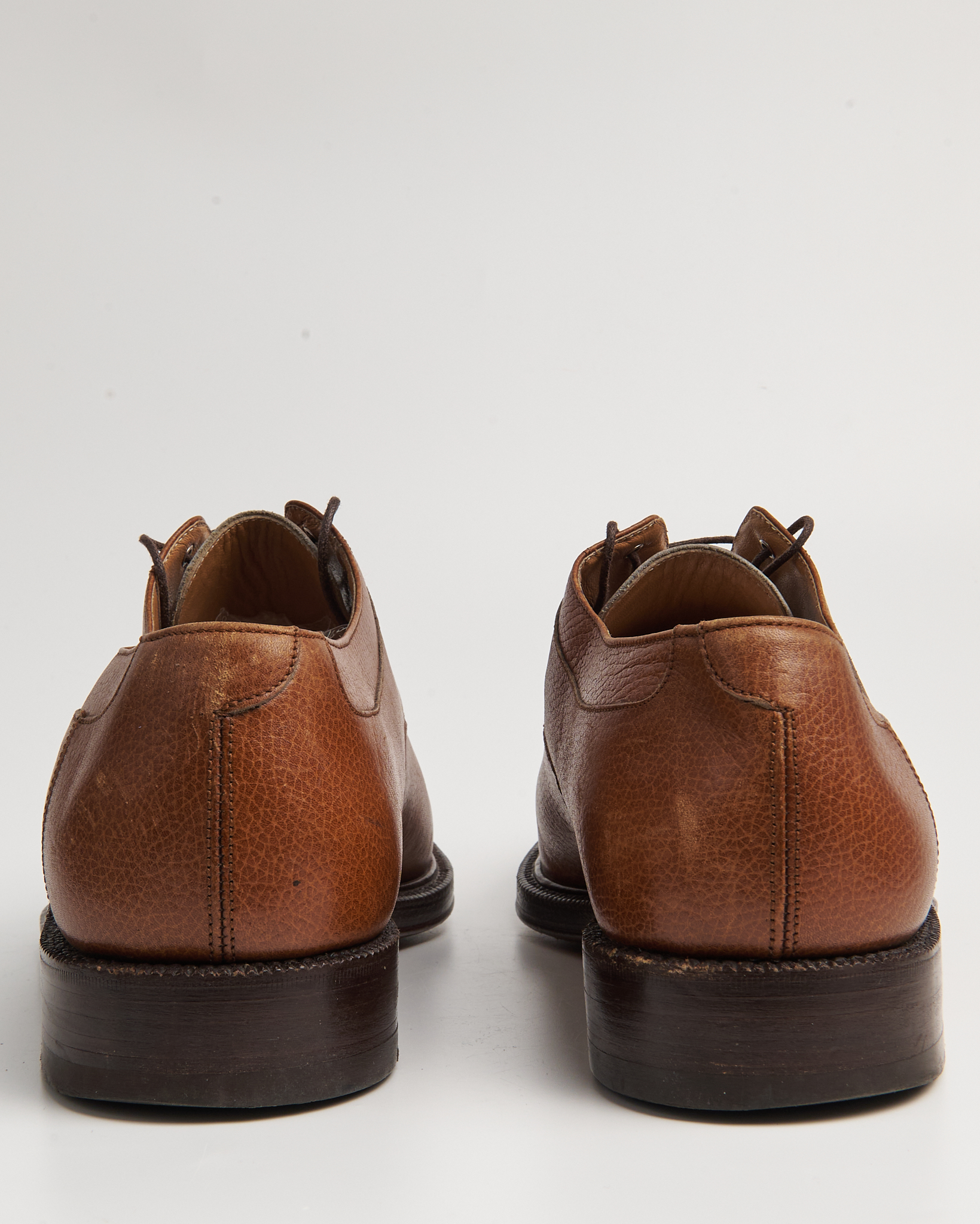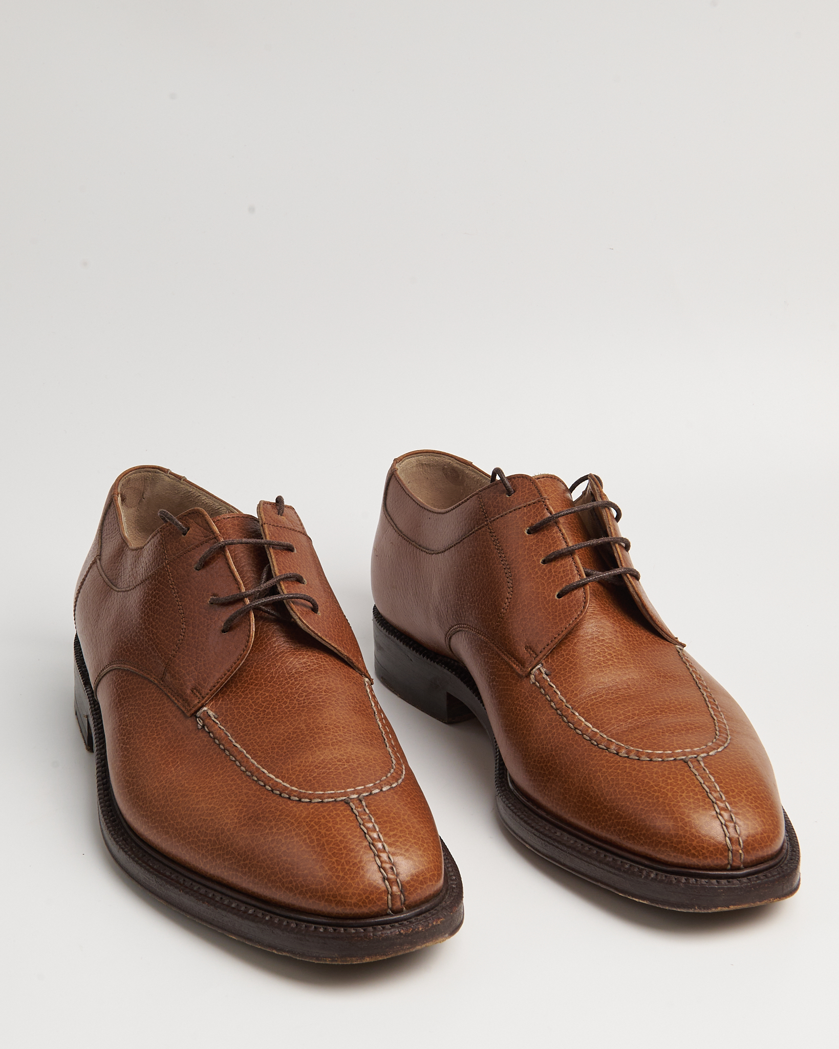 Классический дерби-дизайн с прострочкой по союзке. Подошва кожаная, с набойкой из резины. Модель с ручной прошивкой Goodyear Welted. Маркировка на подошве: “Lavorazione a Mano Goodyear”