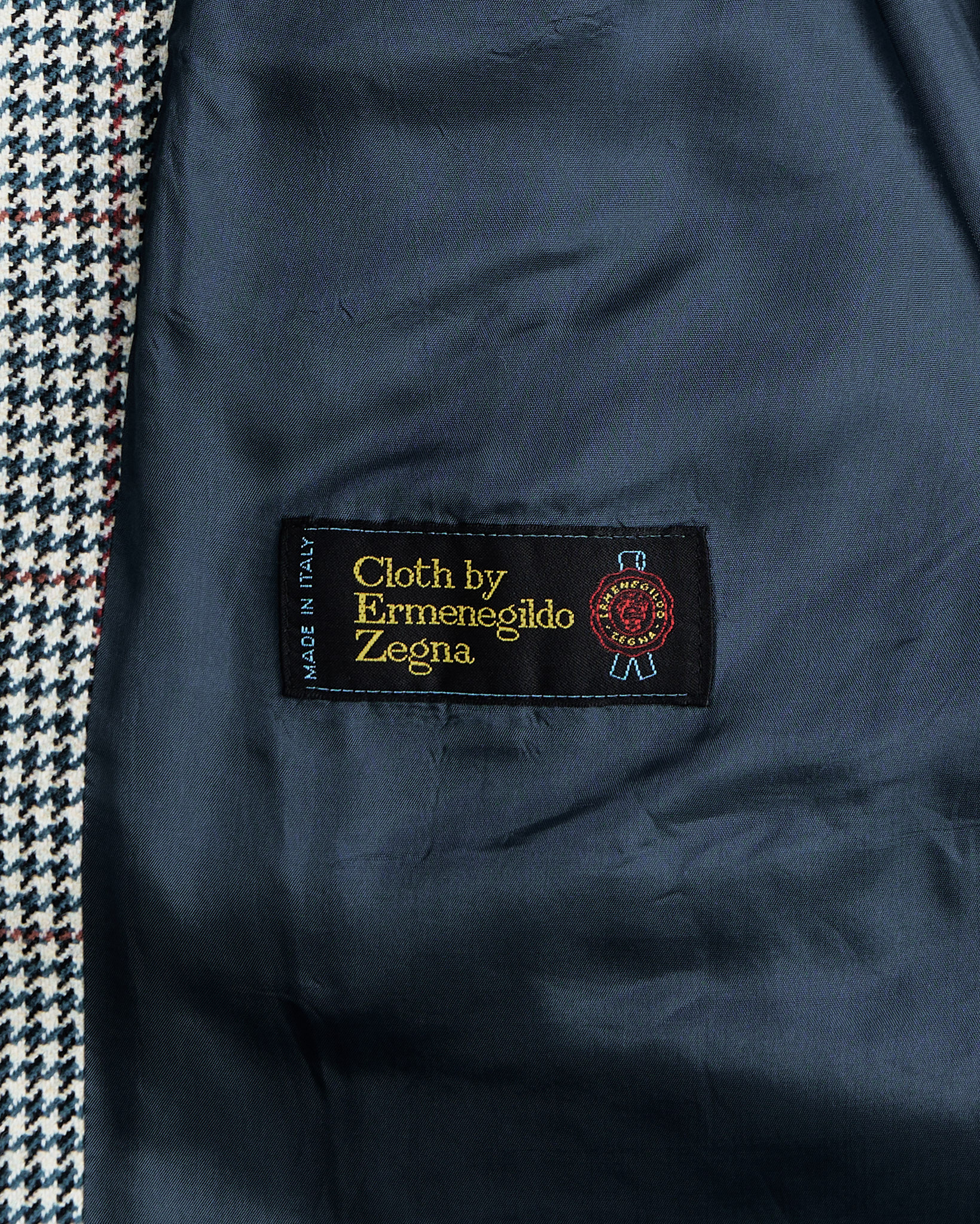 Пиджак из 100% шерсти Zegna. Посадка ближе к прямой, контрастная подкладка из вискозы.