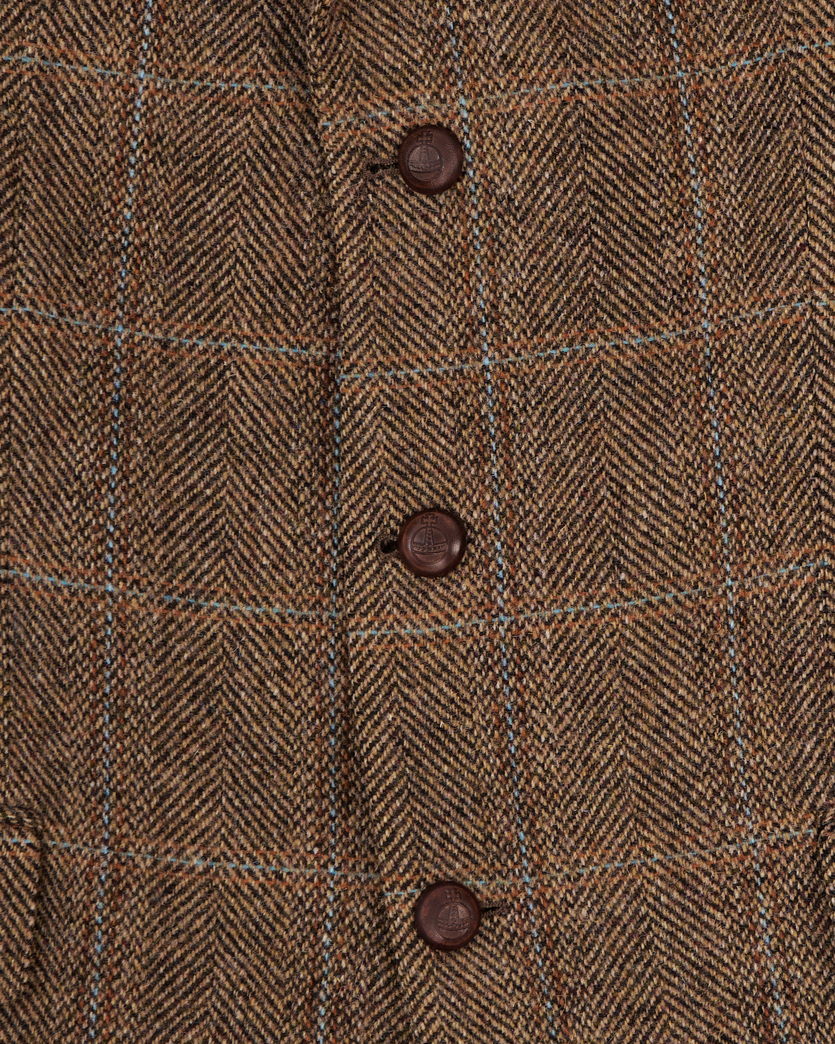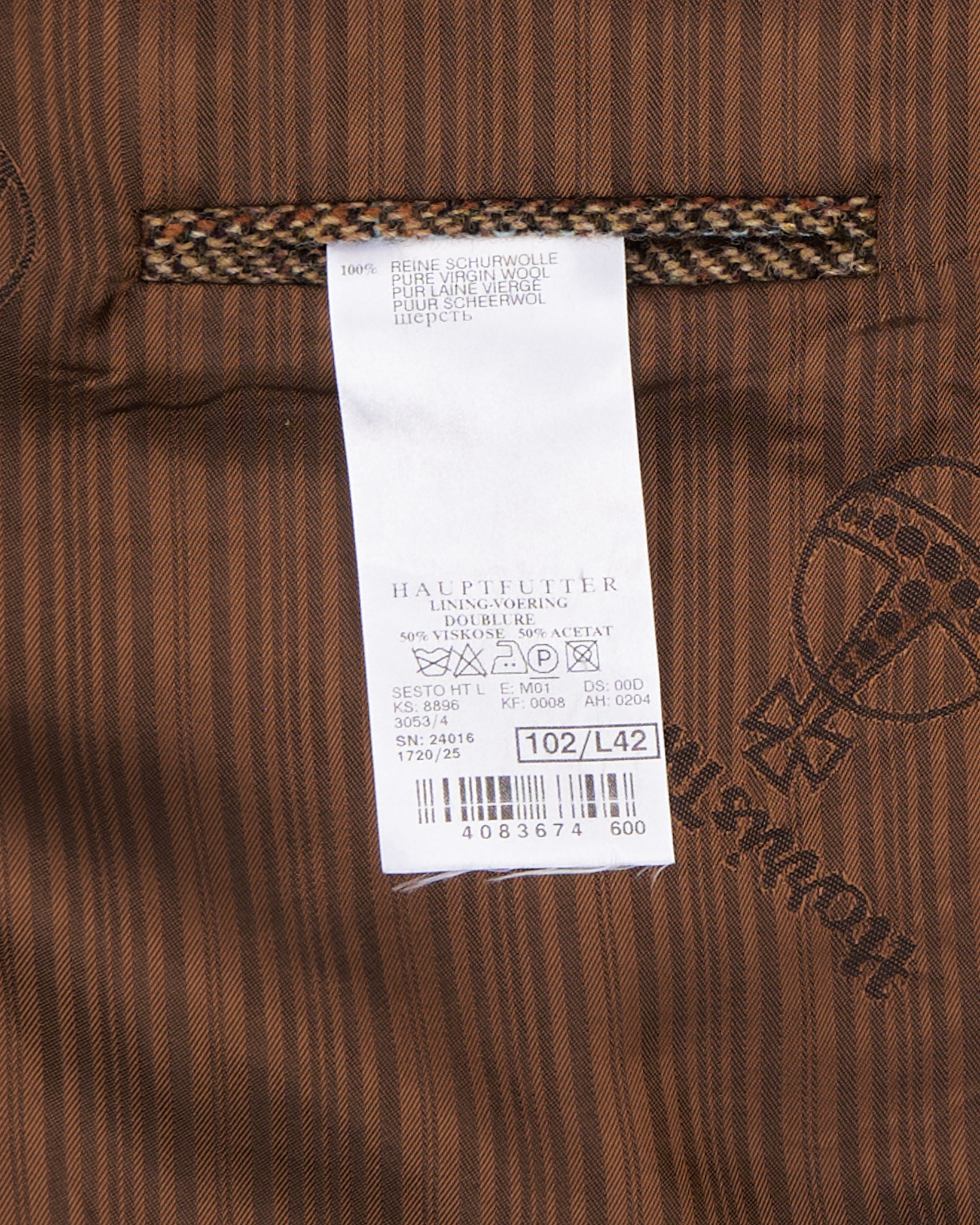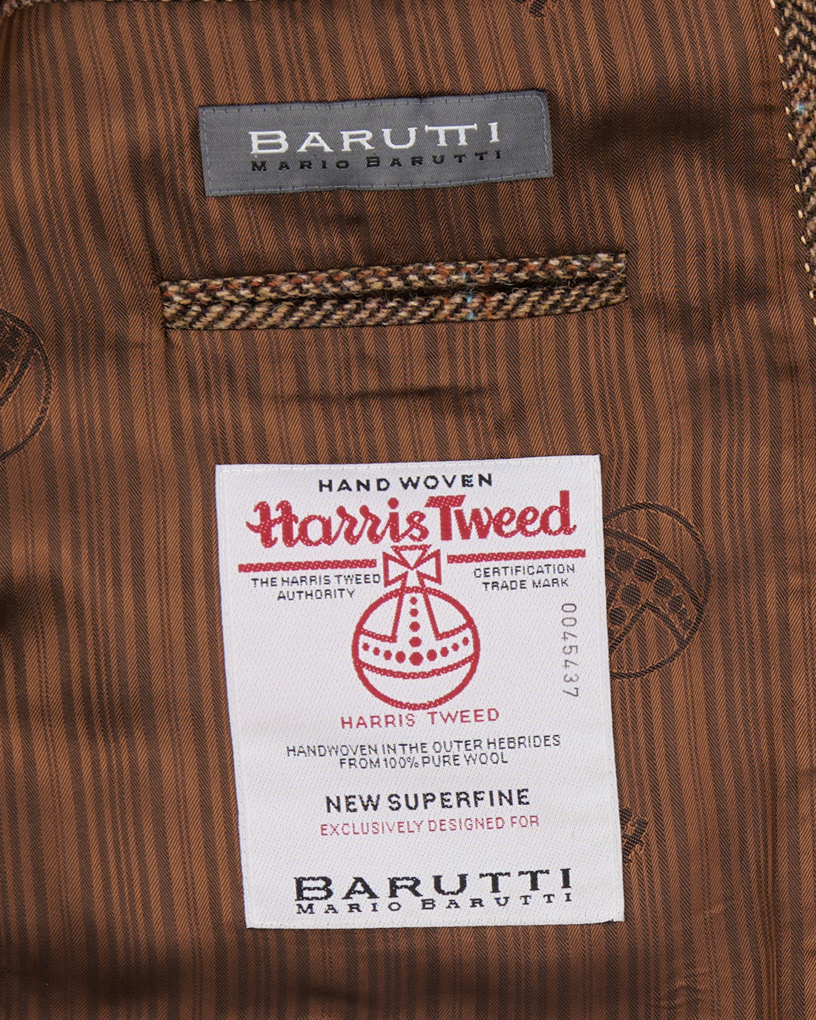 Твидовый пиджак Mario Barutti из шерсти Harris Tweed. Плотная 100% , классический узор «елочка» . Плетеные кожаные пуговицы и маркировка качества на подкладке.