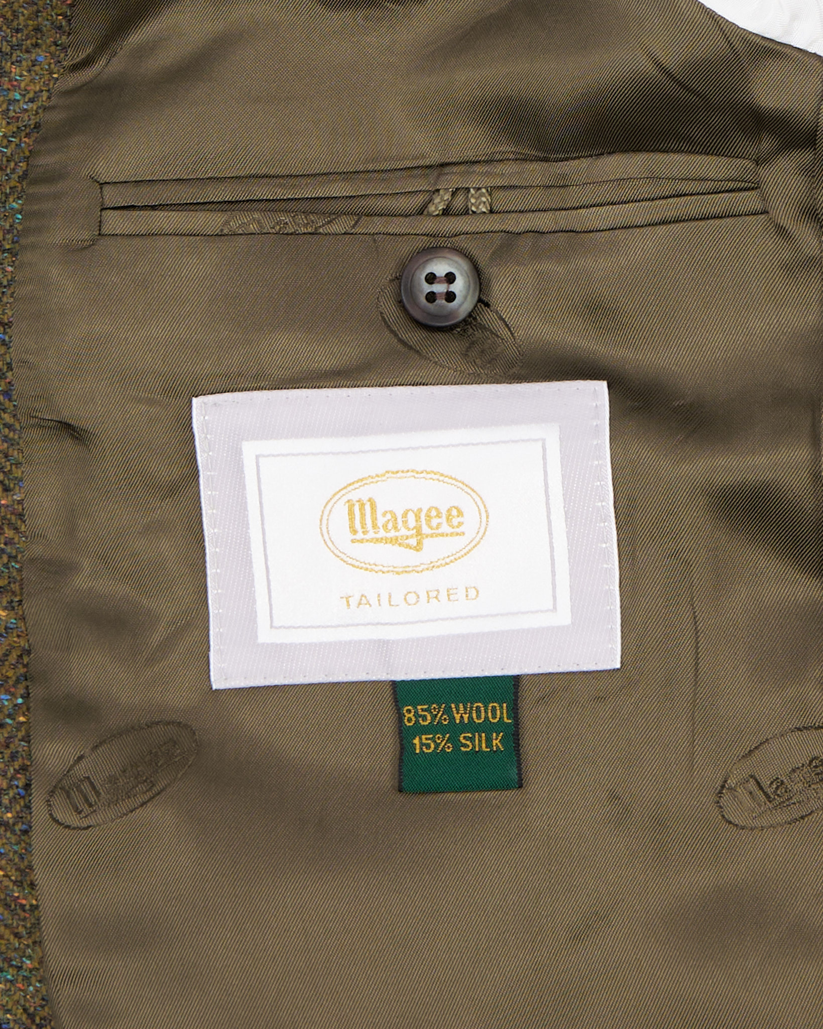Ирландский твидовый пиджак Magee из шелка и шерсти. Твидовое плетение «елочка» , прямой крой, функциональные карманы.