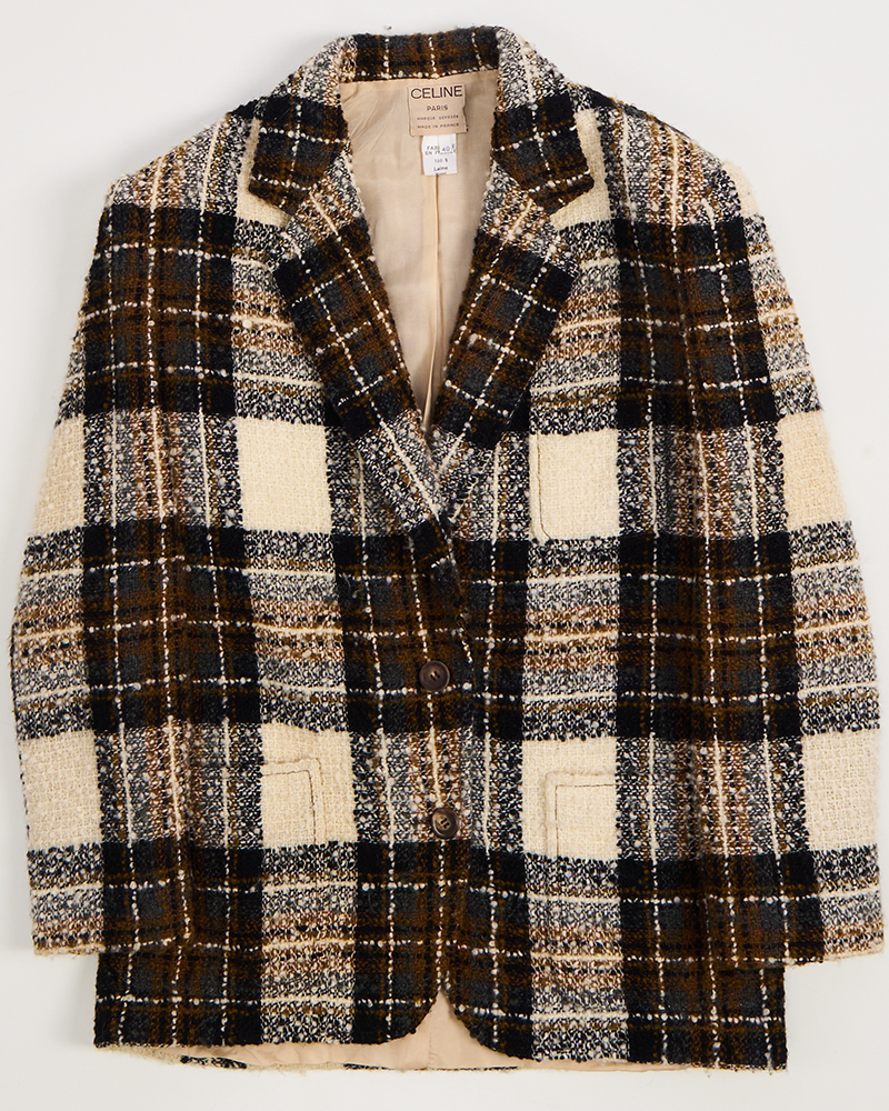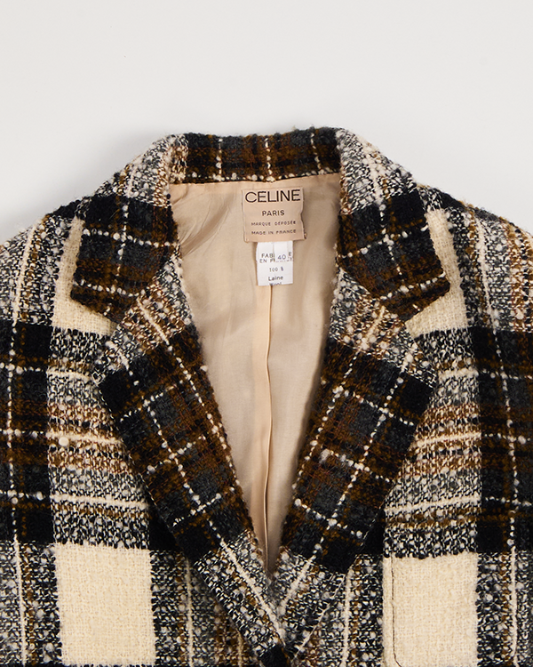 Твидовый жакет CELINE выполнен из плотной 100% шерсти. Посадка свободная, с ровным силуэтом. Made in France