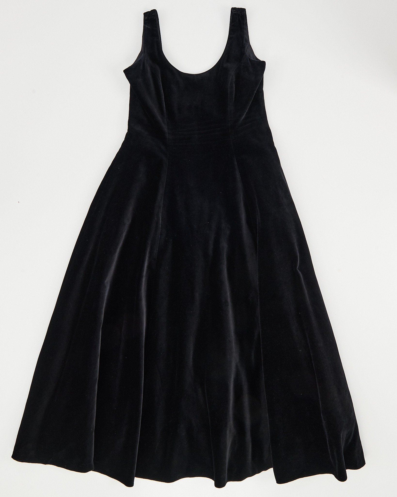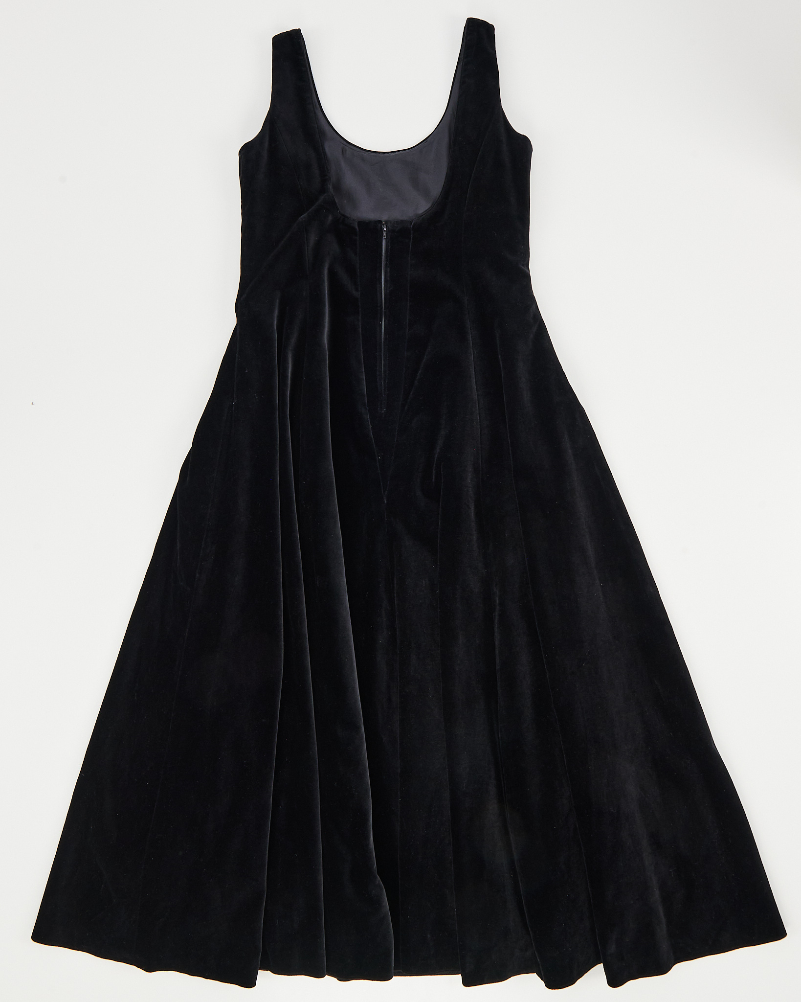 Платье из вельвета черного цвета. Длина макси, А-силуэт. Фатиновый подъюбник добавляет пышность.