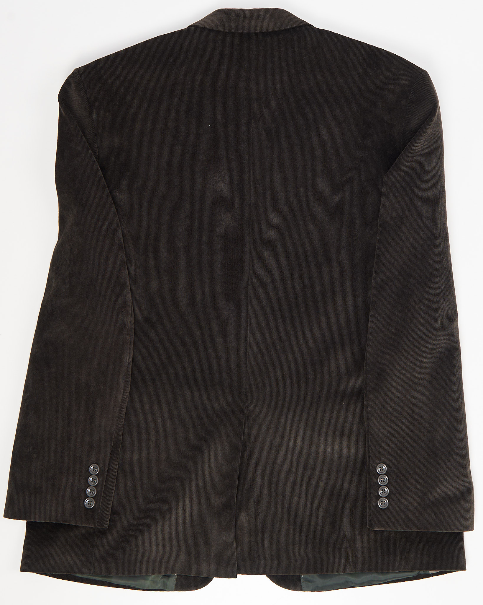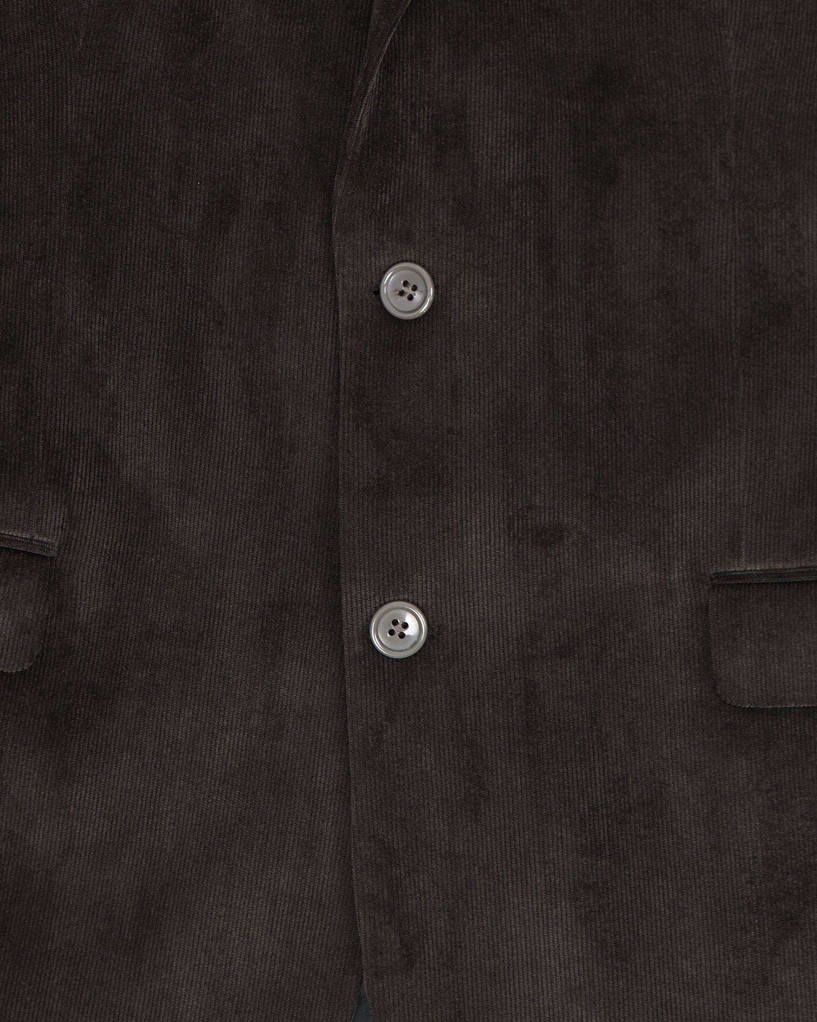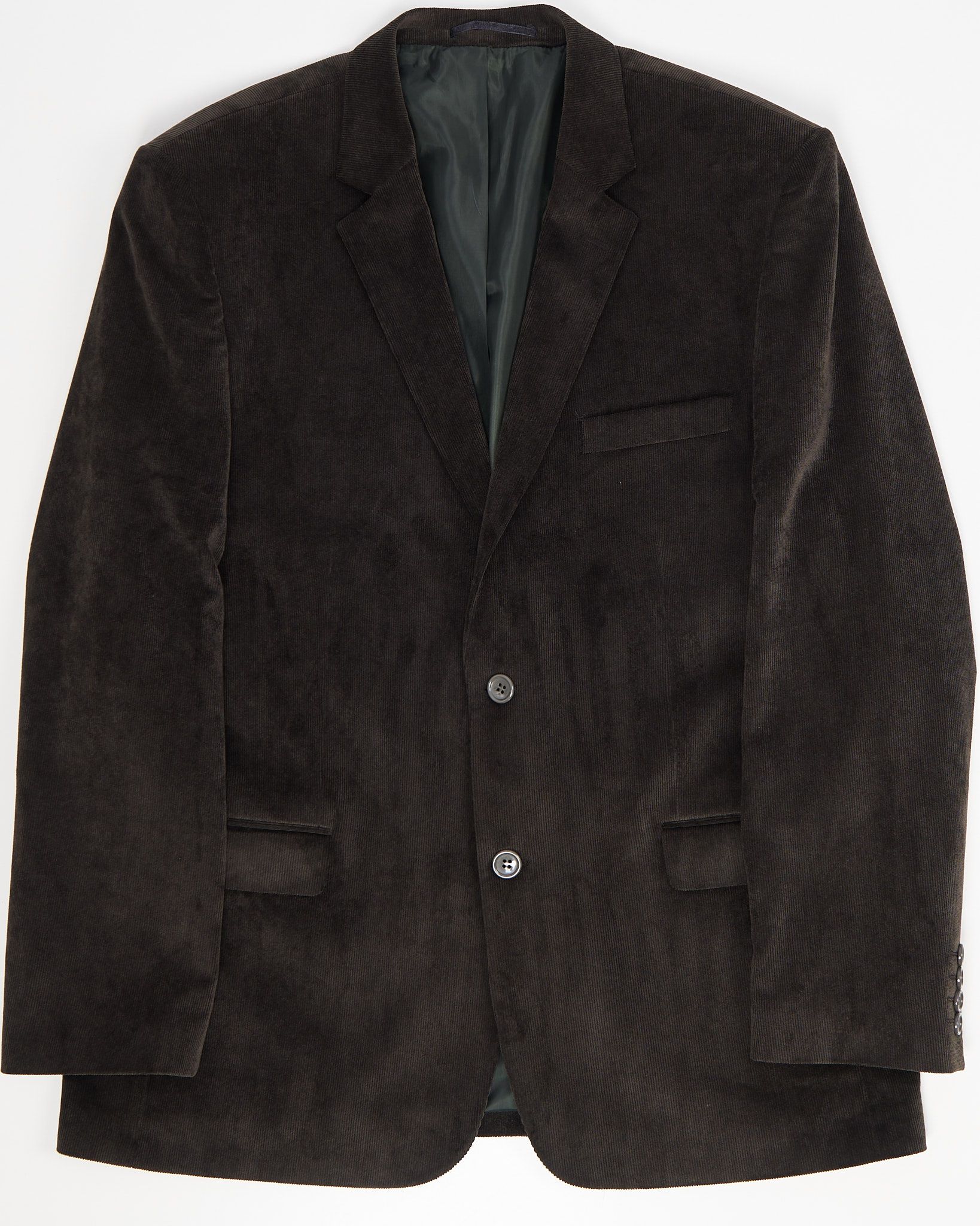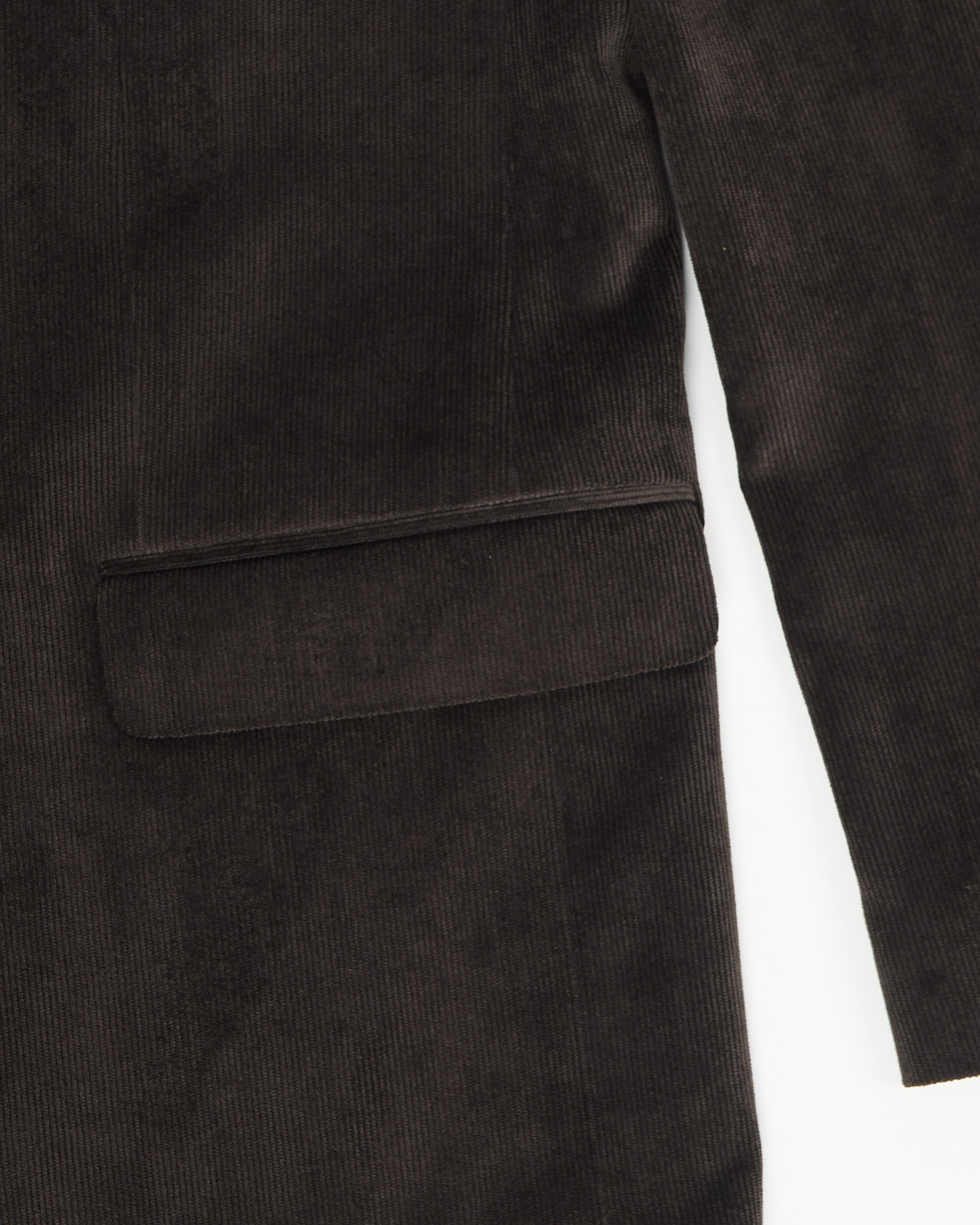 Пиджак из плотного вельвета глубокого тёмно-коричневого оттенка от бренда CARPA. Посадка прямая, классическая застёжка на две пуговицы и аккуратные клапанные карманы.