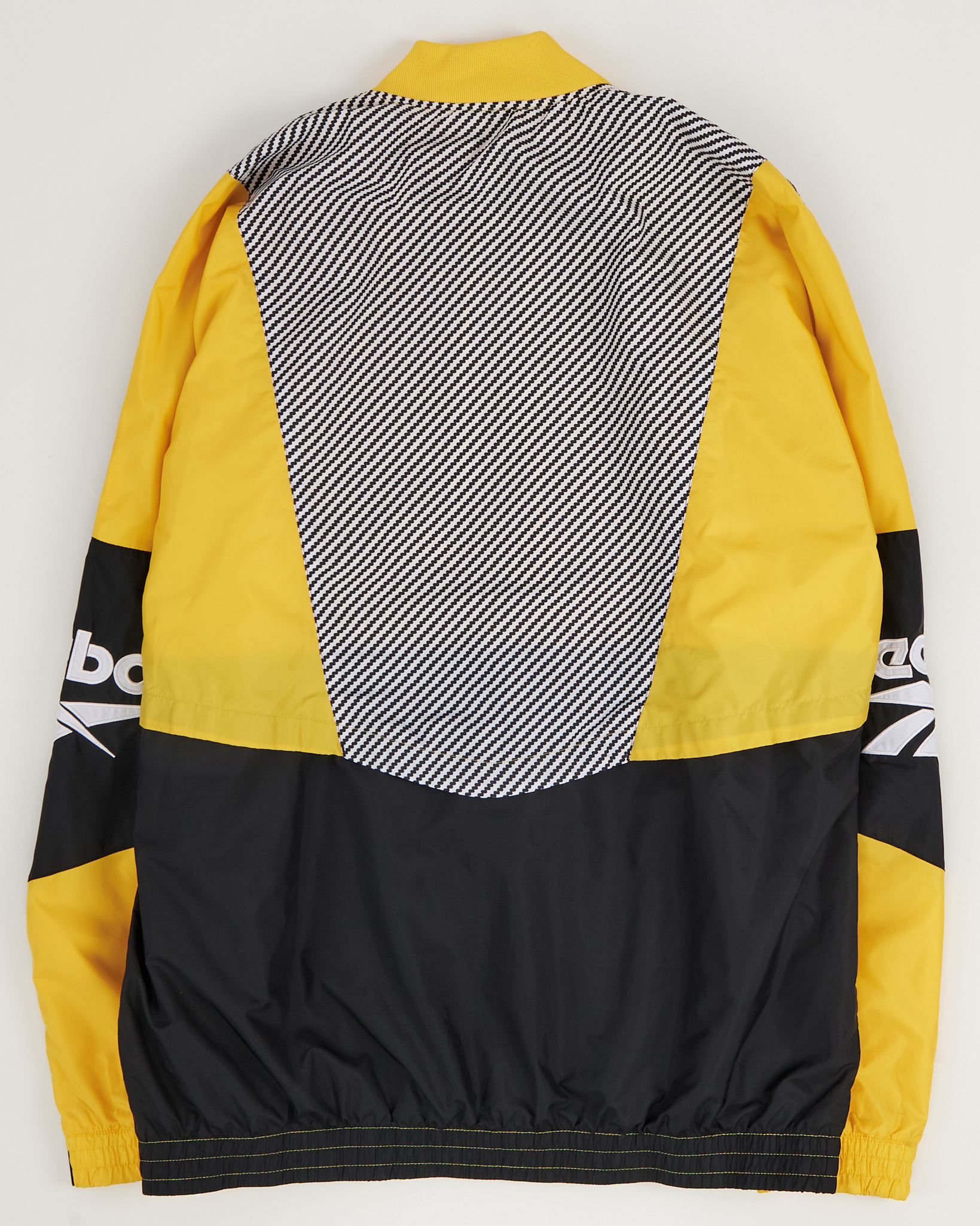 Ветровка Reebok со свободной посадкой. Контрастное сочетание цветов, удобная застежка на молнию, функциональные карманы по бокам. Логотип Reebok на груди и фирменный принт на рукавах.