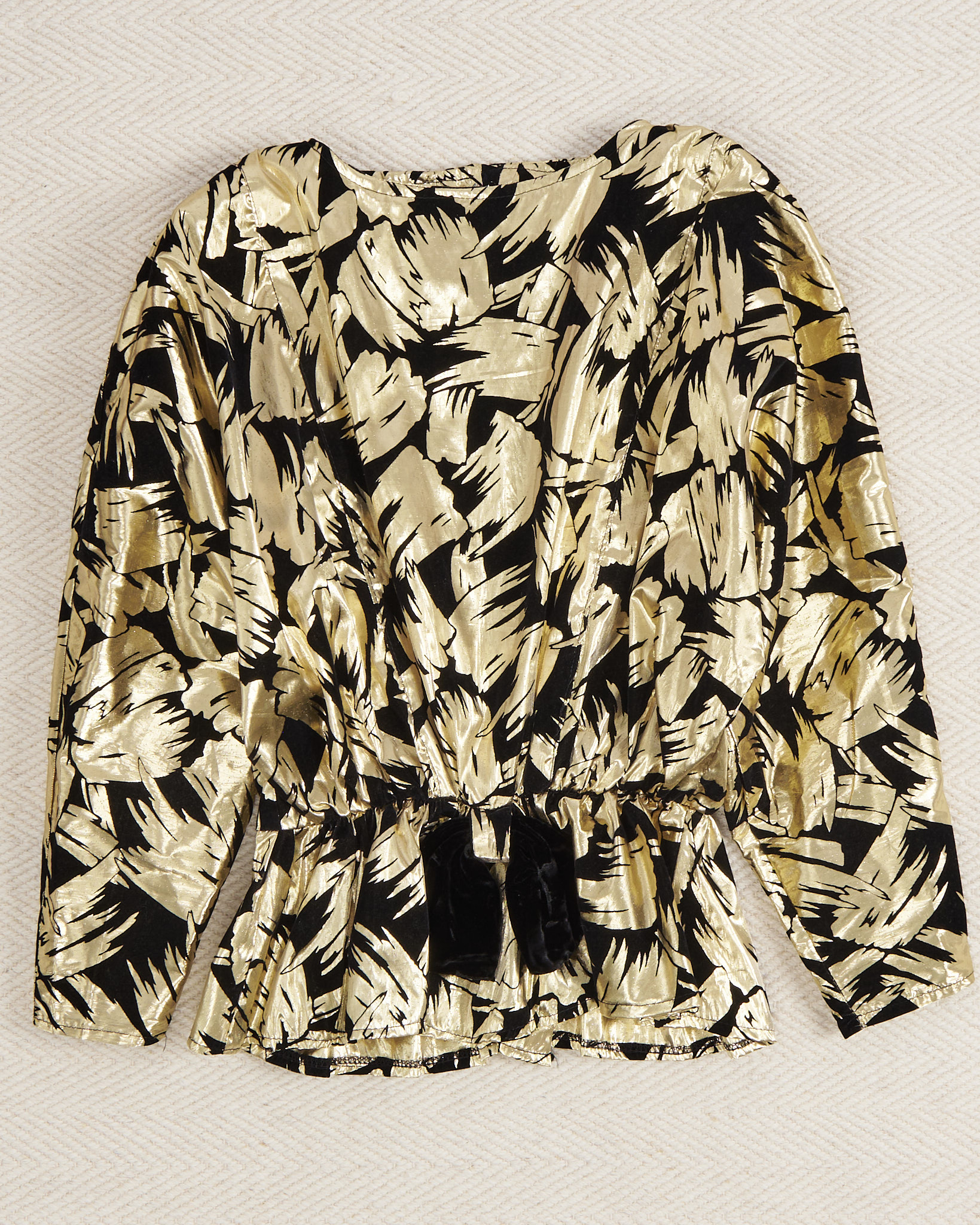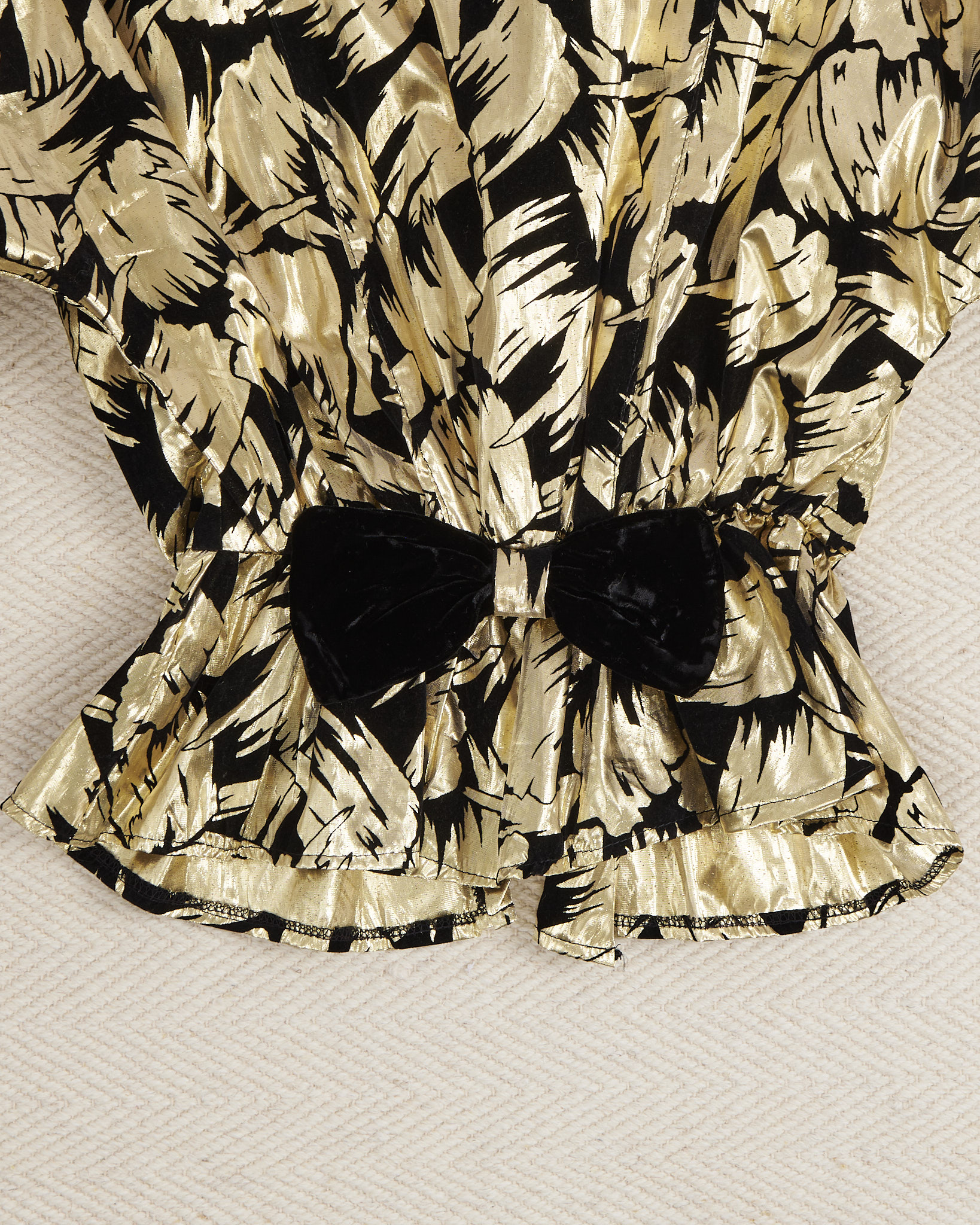 Блуза с золотистым принтом и бархатным бантом. Эффектная блуза в стиле глэм с выразительным контрастным рисунком. Свободная посадка, ткань гладкая, струящаяся. Акцентный бархатный бант .