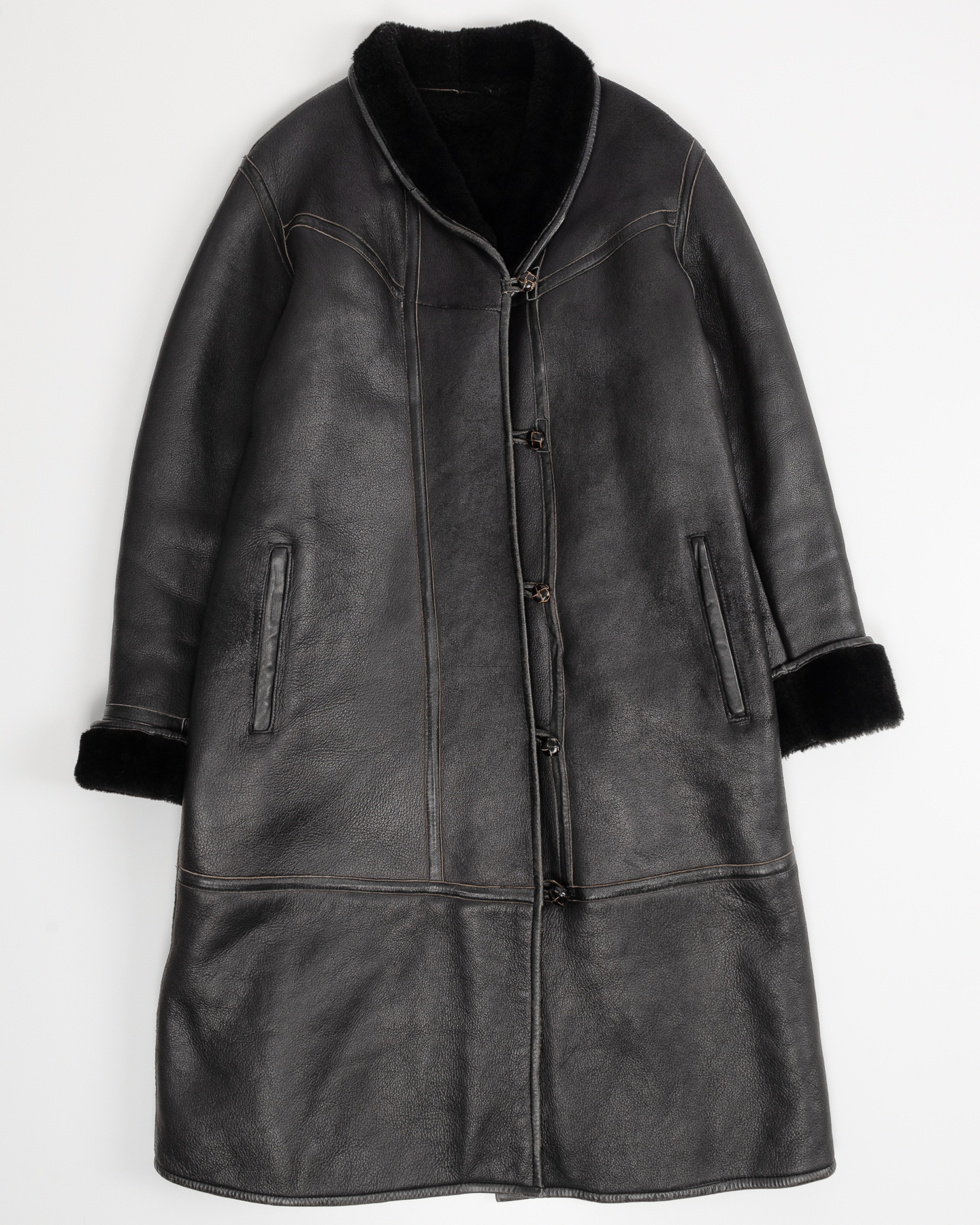 Винтажная дубленка Kenzo Paris из плотной натуральной кожи с мягкой меховой отделкой. Посадка прямая, длина закрывает бедра и хорошо держит форму. Кожа плотная, гладкая на ощупь, мех внутри густой и приятный