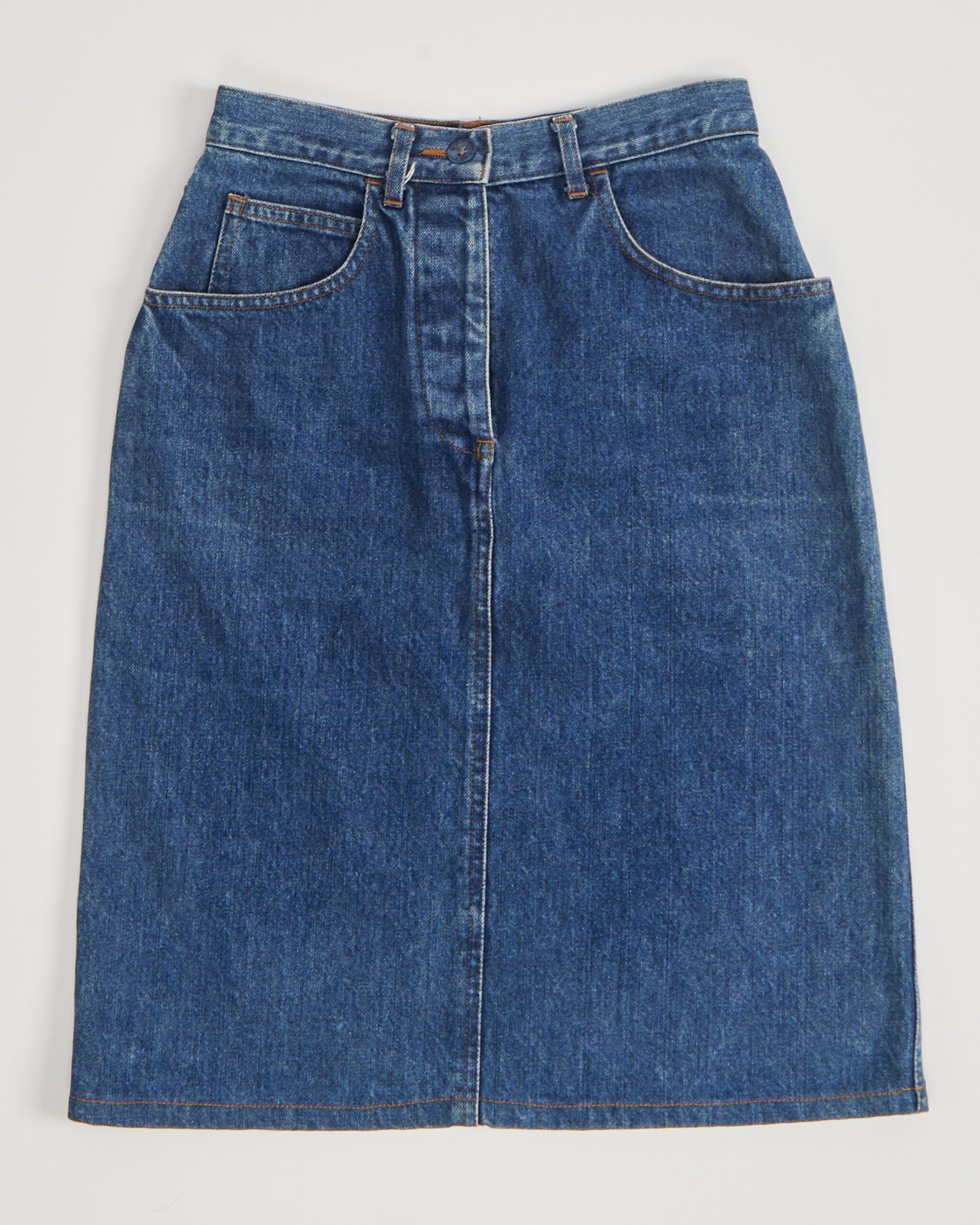 Модель в стиле 90-х выполнена из хлопка. Юбка застегивается спереди на замок, есть несколько карманов спереди и сзади. Идеально садится по фигуре за счет продуманного кроя. Сделана в Италии