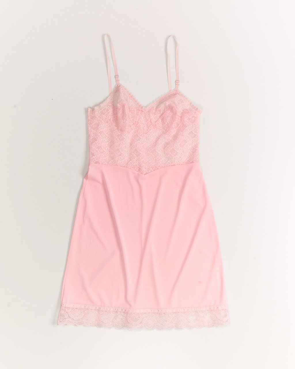 Винтажная комбинация в пастельно-розовом оттенке. Свободный крой, регулируемые бретели для идеальной посадки по высоте груди. Редкий цветочный узор на кружеве.
