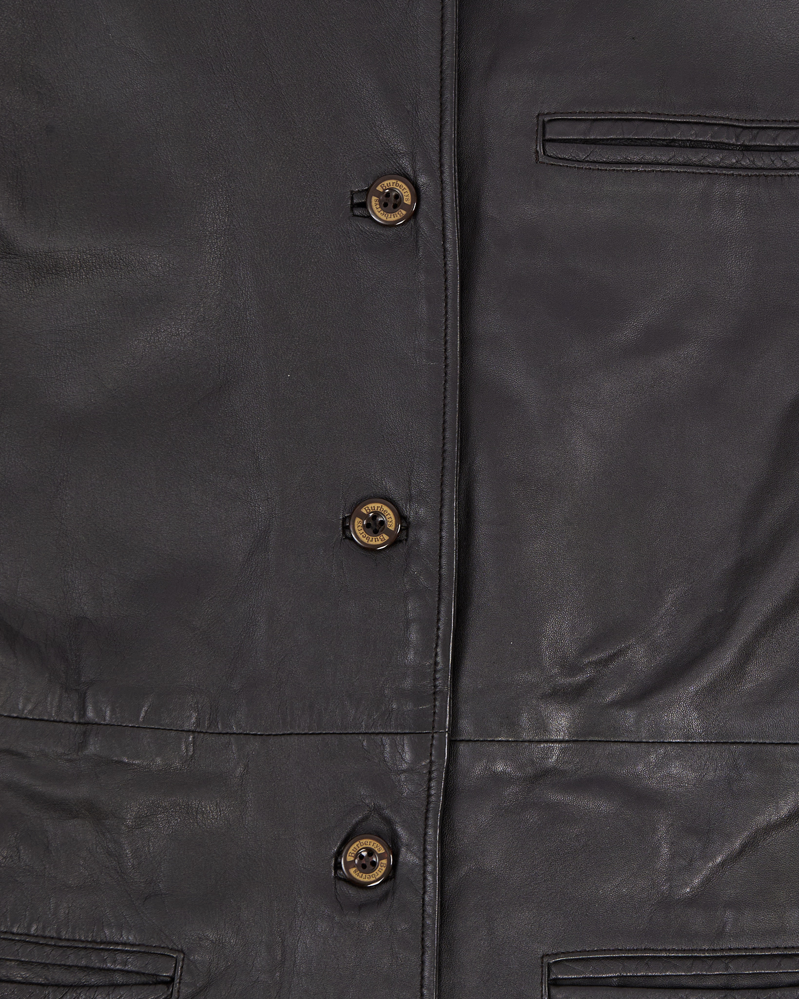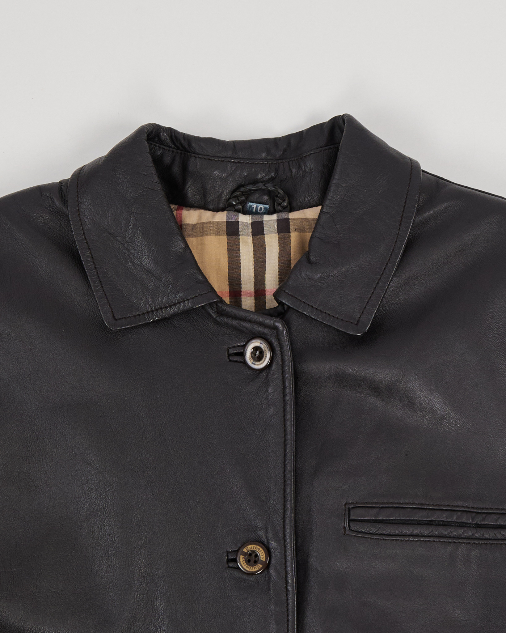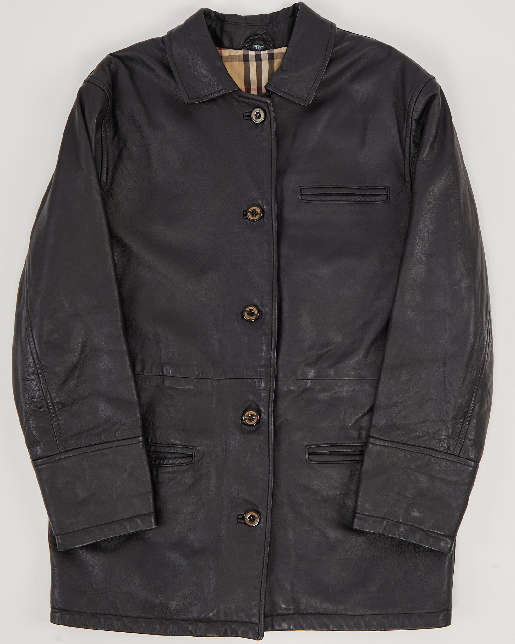 Винтажная куртка из натуральной кожи Burberrys. Модель от культового бренда Burberrys, произведена в Англии, с фирменной клетчатой подкладкой. Прямой крой, сдержанный дизайн с аккуратными карманами и пуговицами.