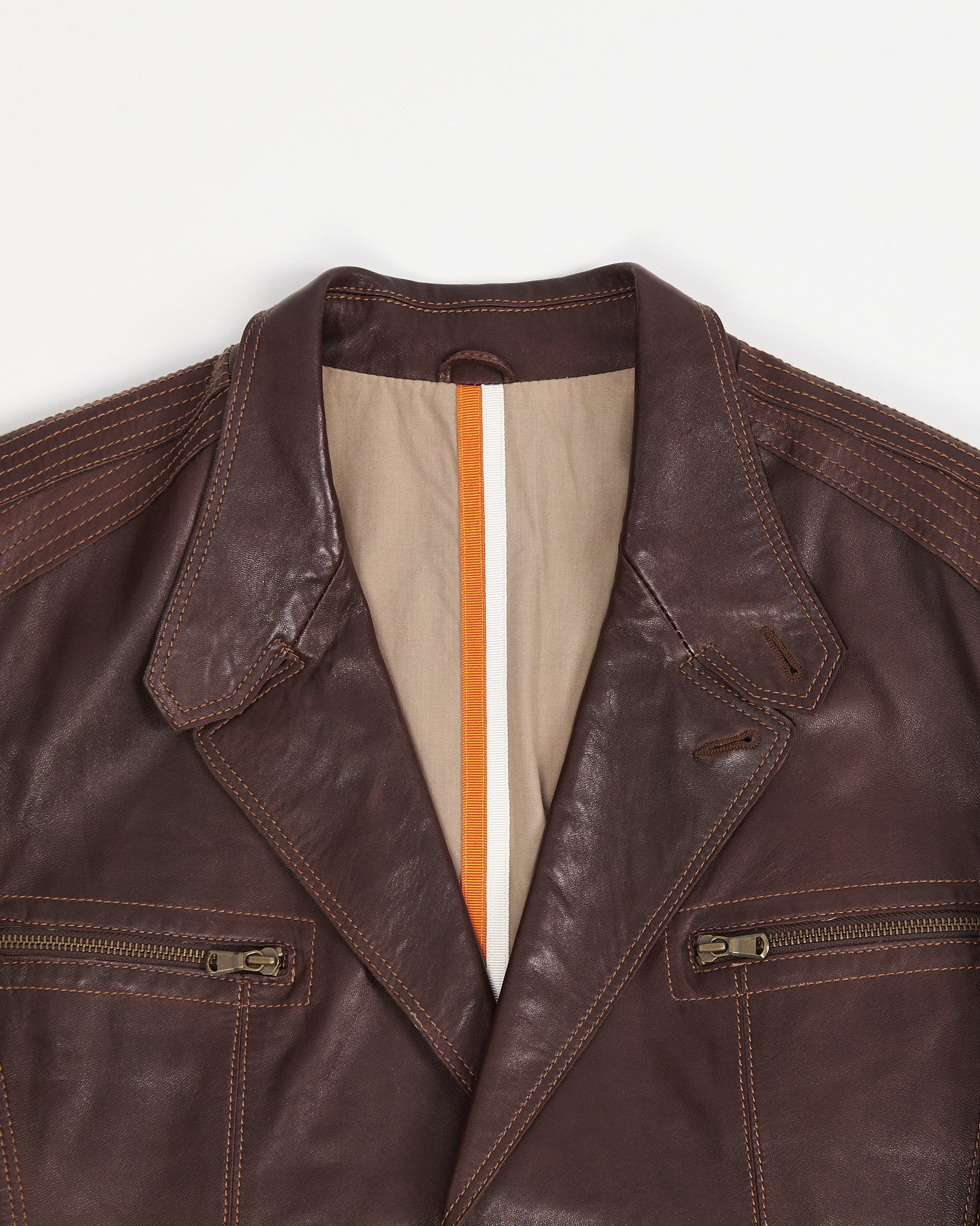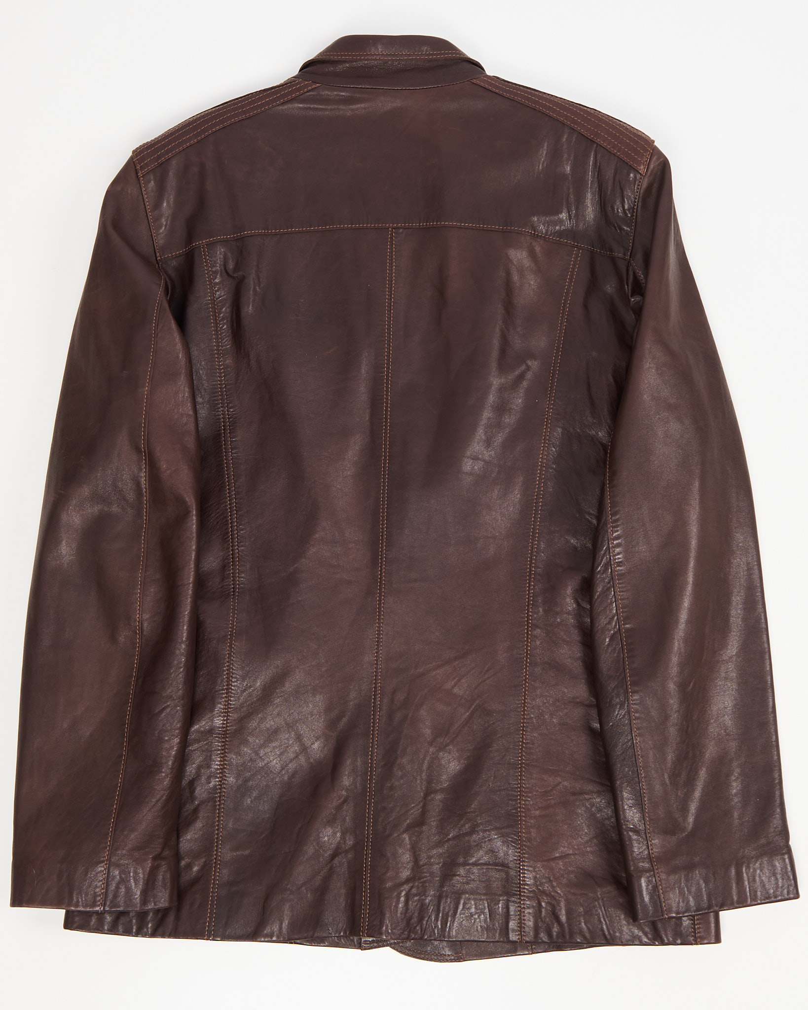 Куртка из плотной натуральной кожи глубокого коричневого оттенка от турецкого бренда Kircilar. Посадка прямая, с четкой линией плеч. Контрастная строчка, функциональные молнии и продуманная внутренняя отделка.