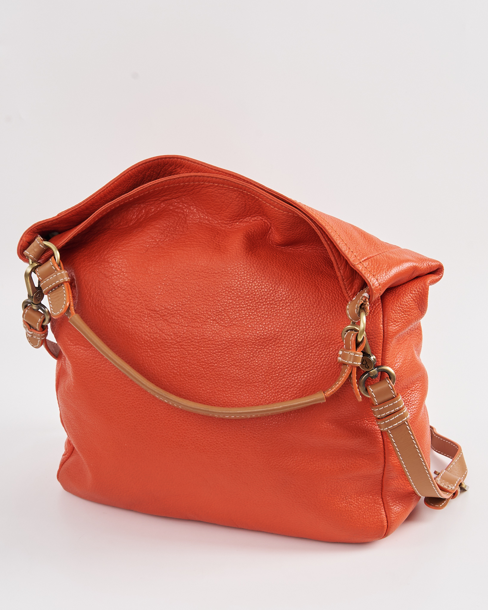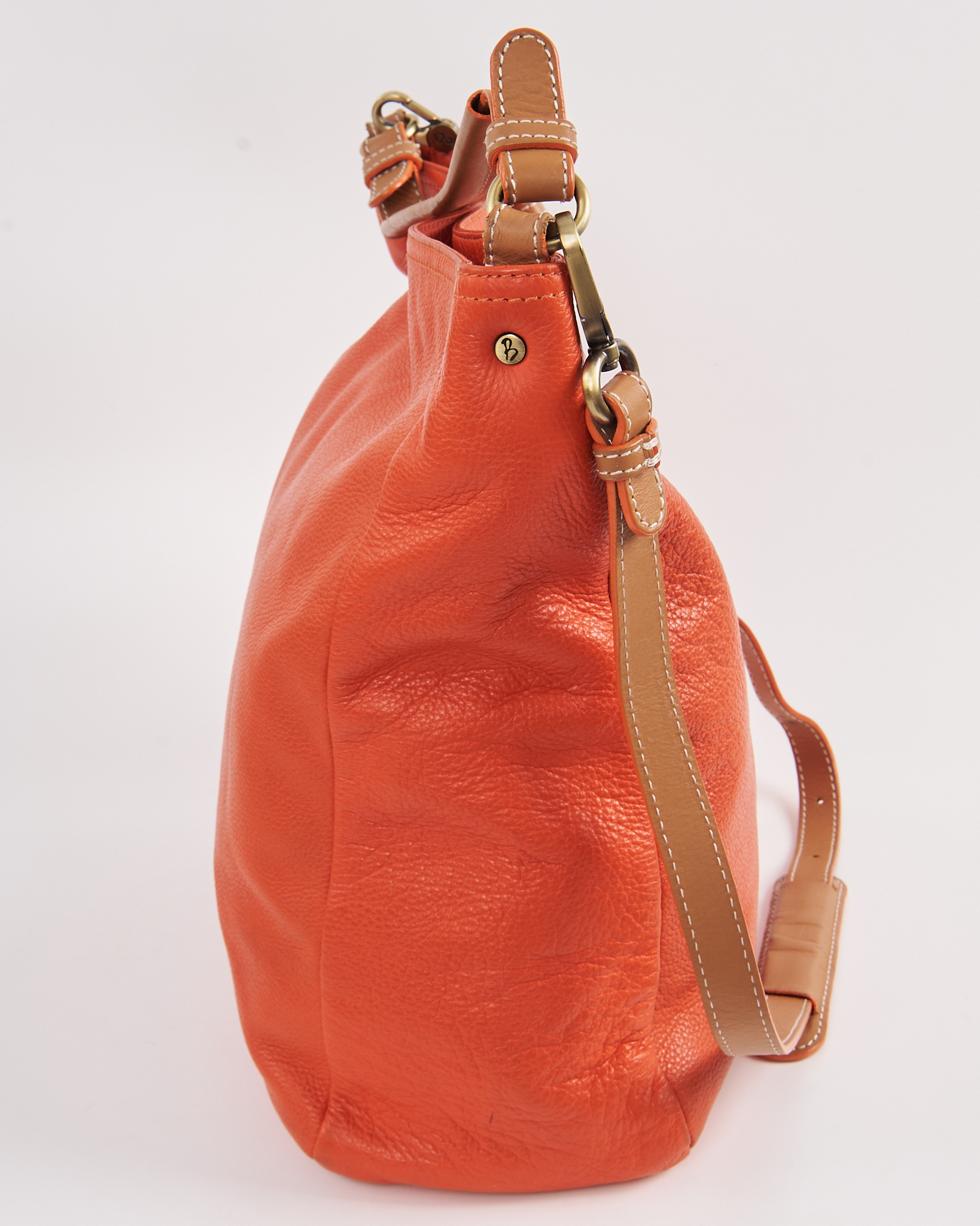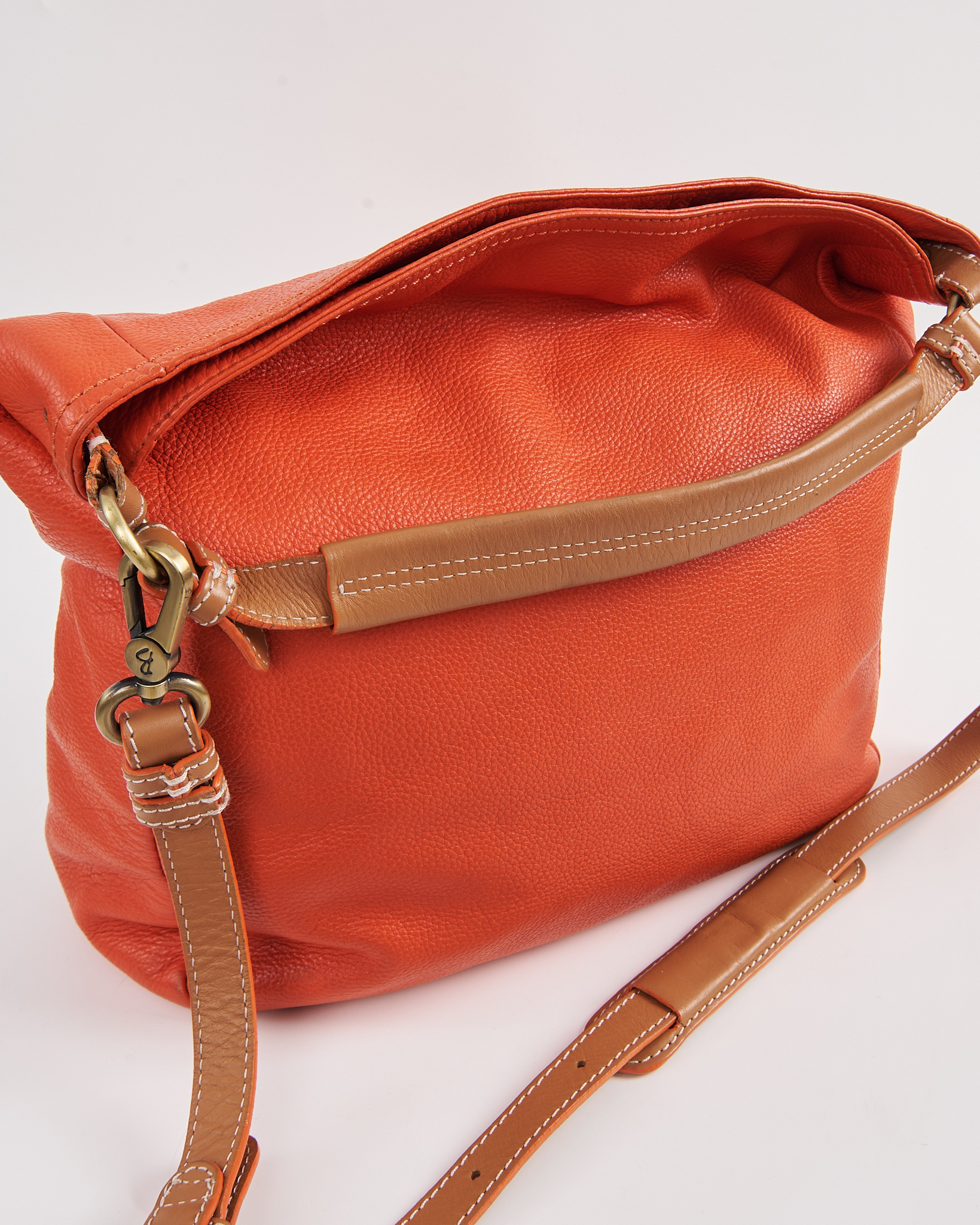 Кожаная сумка из натуральной кожи насыщенного оранжевого цвета. Объёмная форма, несколько функциональных карманов, регулируемый ремень позволяет менять посадку по длине. Контрастная светлая строчка, качественная металлическая фурнитура.