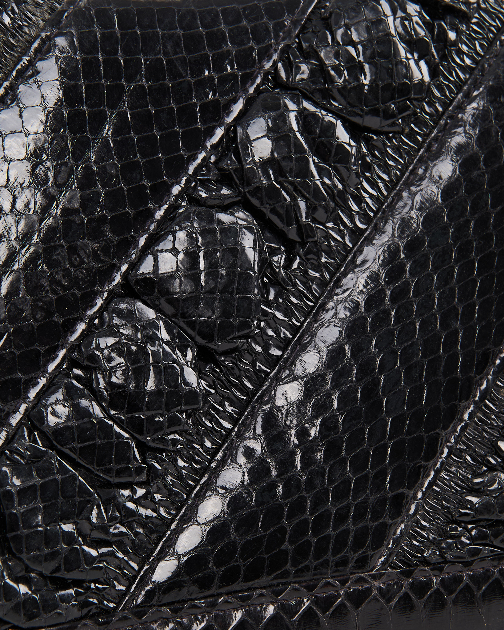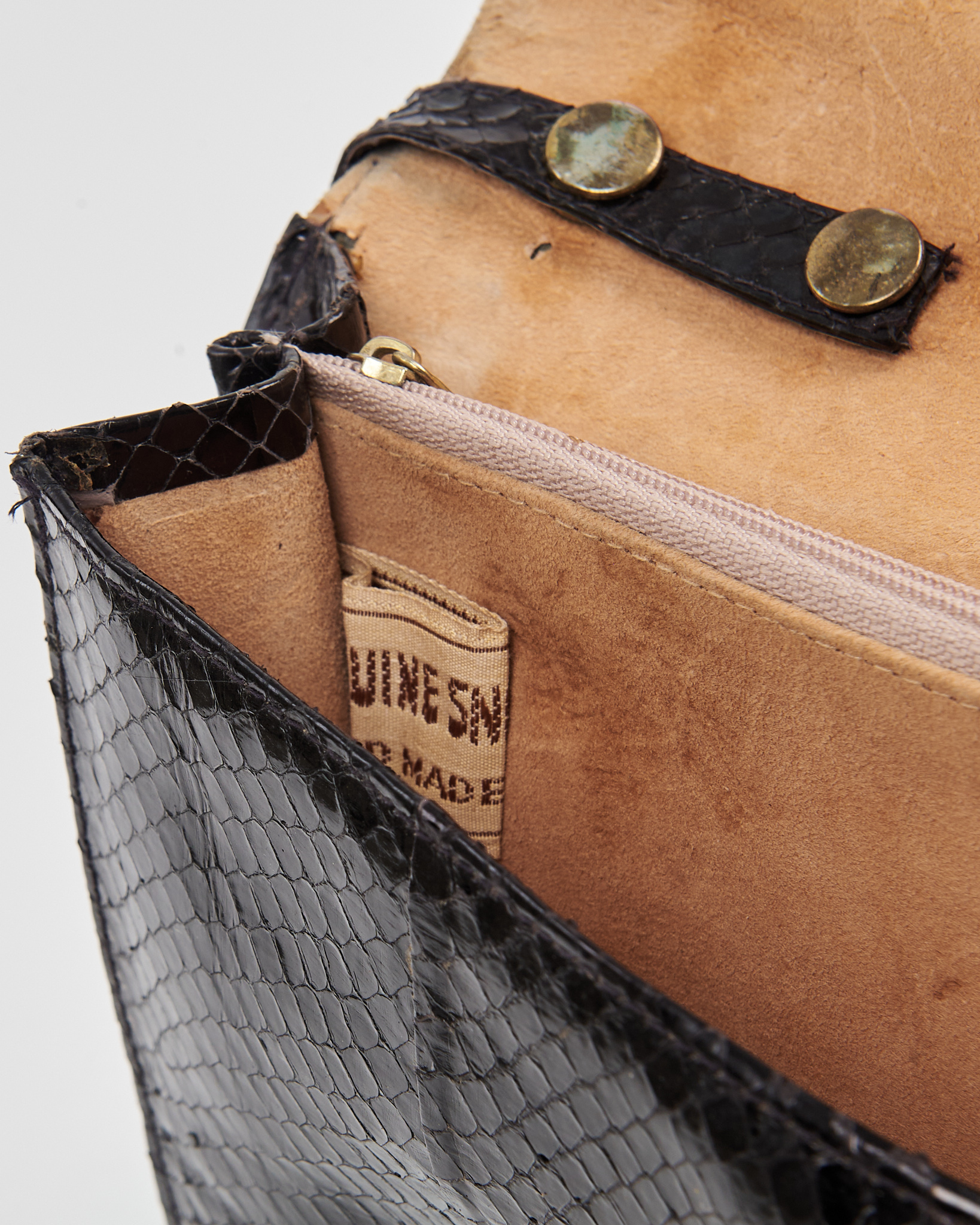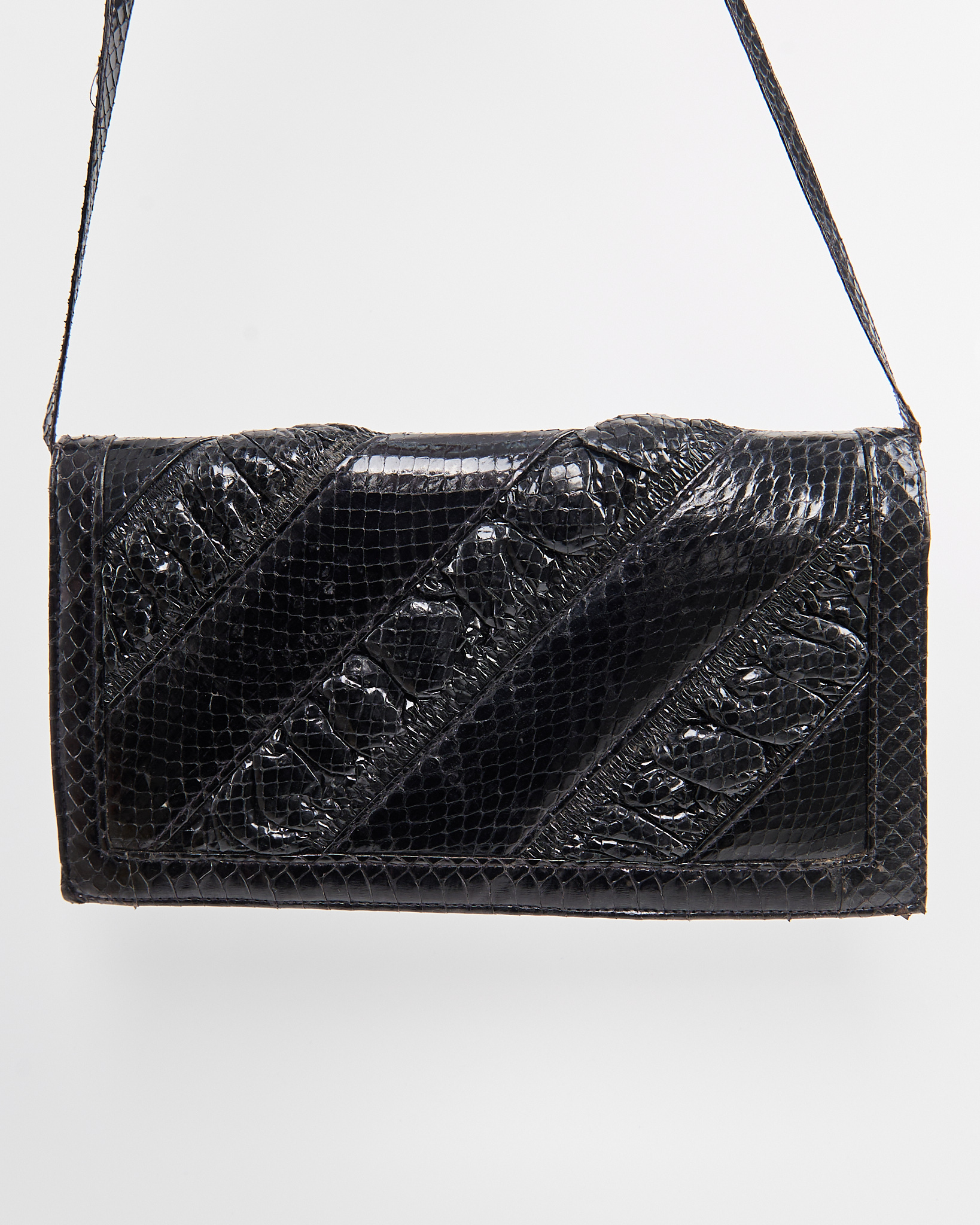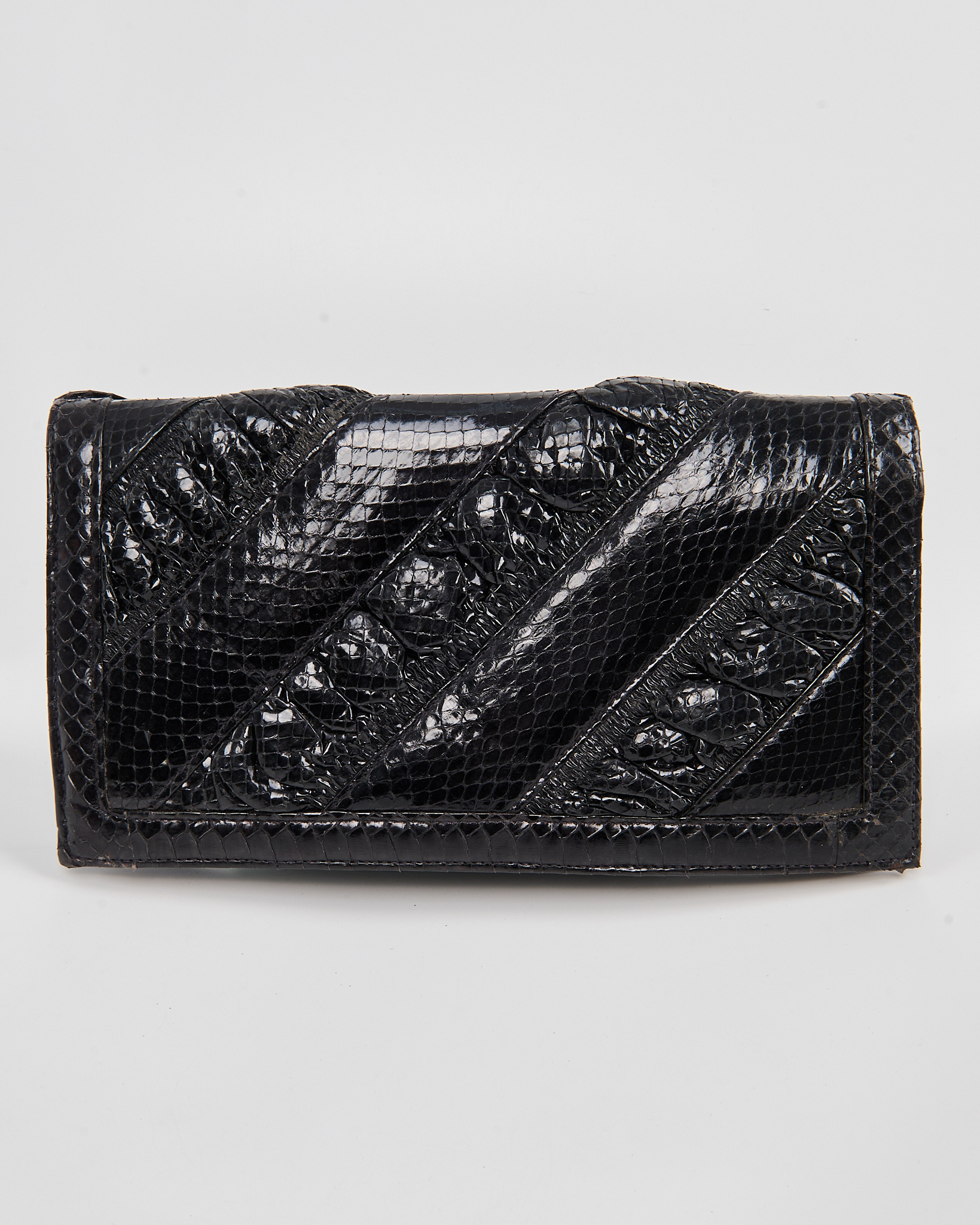 Сумка из кожи рептилии. Компактная вытянутая форма, внутреннее отделение организовано практично и подходит для повседневных мелочей
