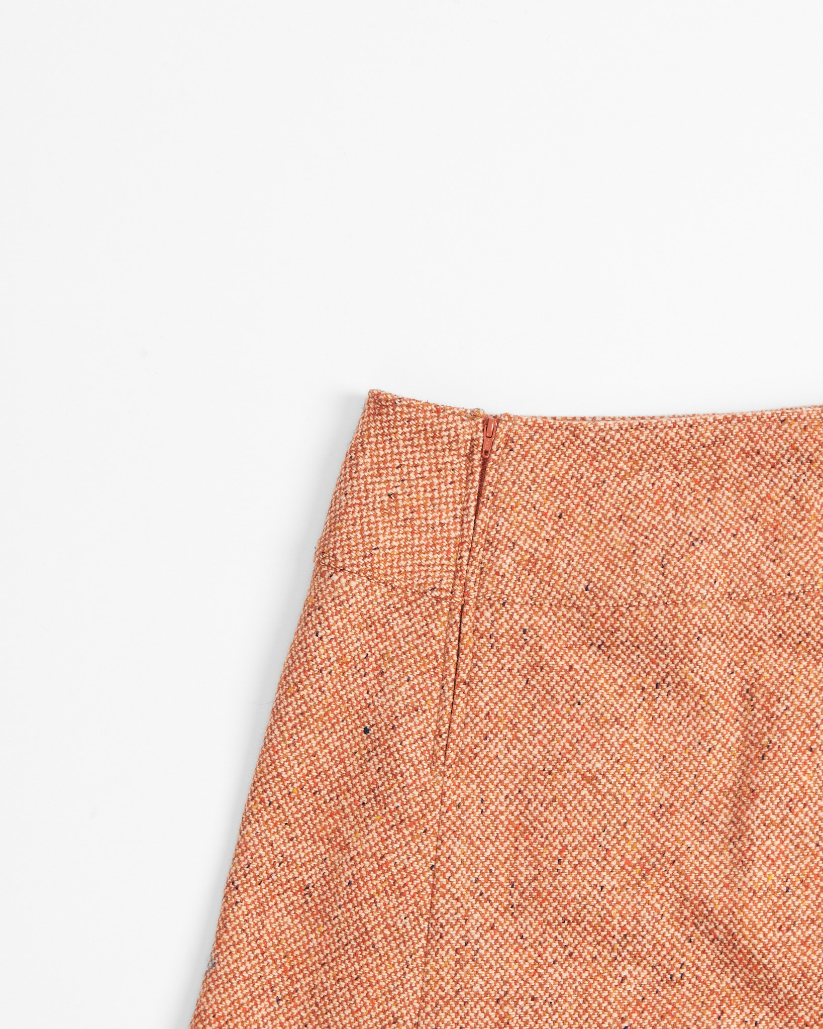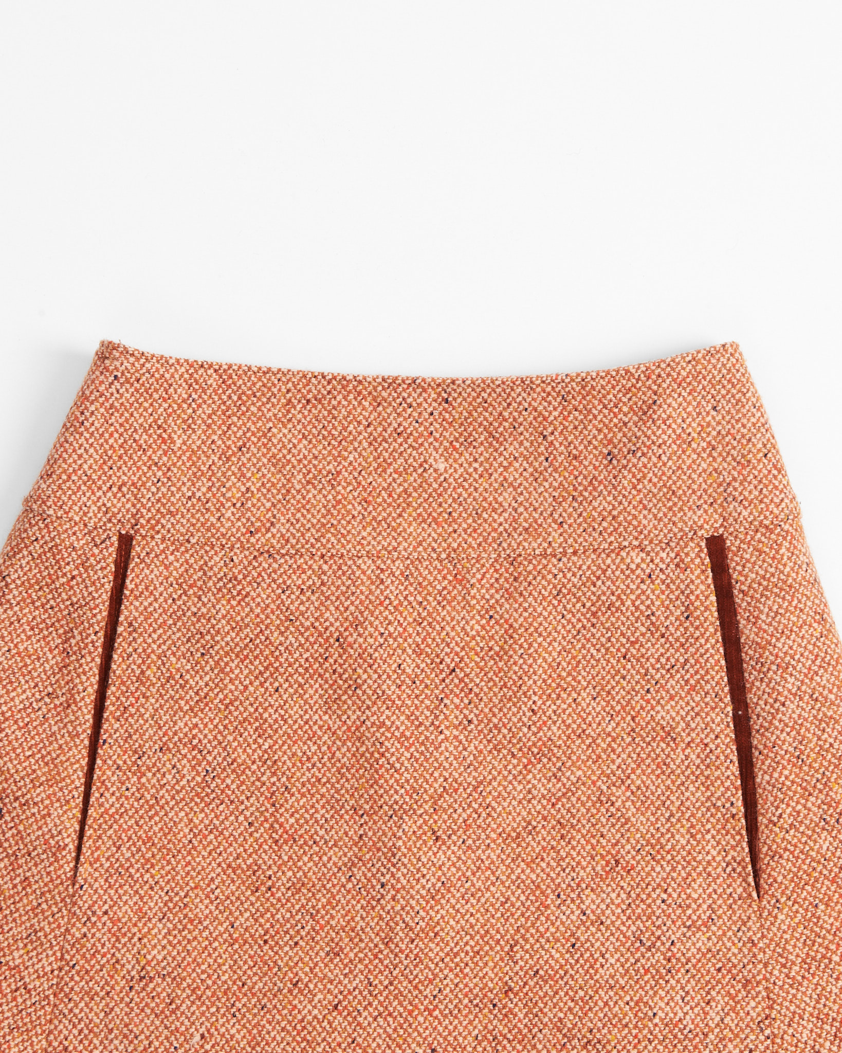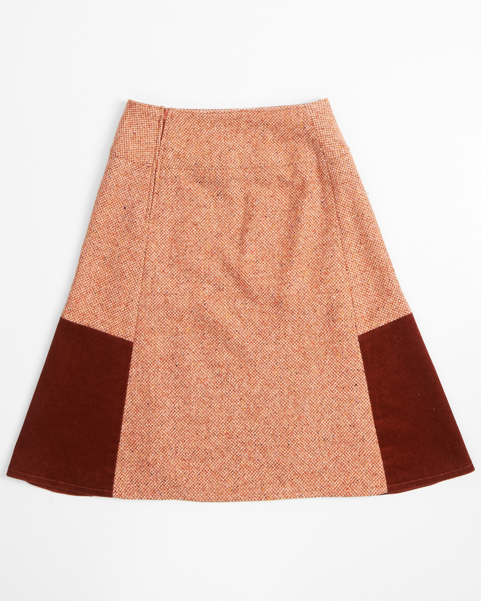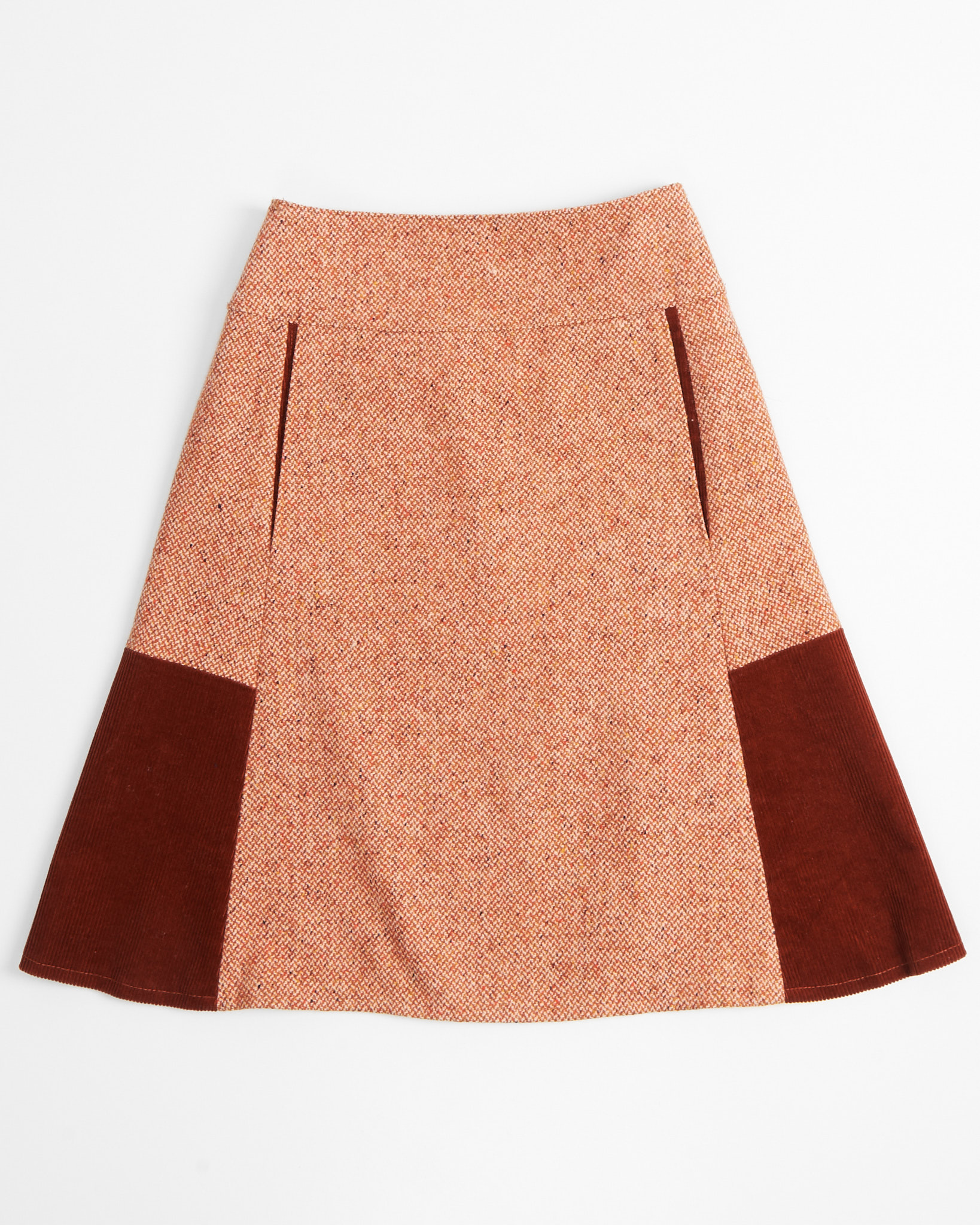 Твидовая юбка из 100% шерсти с вельветовыми акцентами. Гладкие вставки из вельвета, крой трапеция. Аккуратные врезные карманы с тонким кантом.