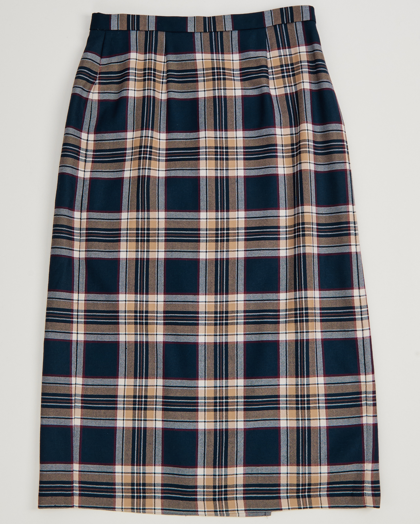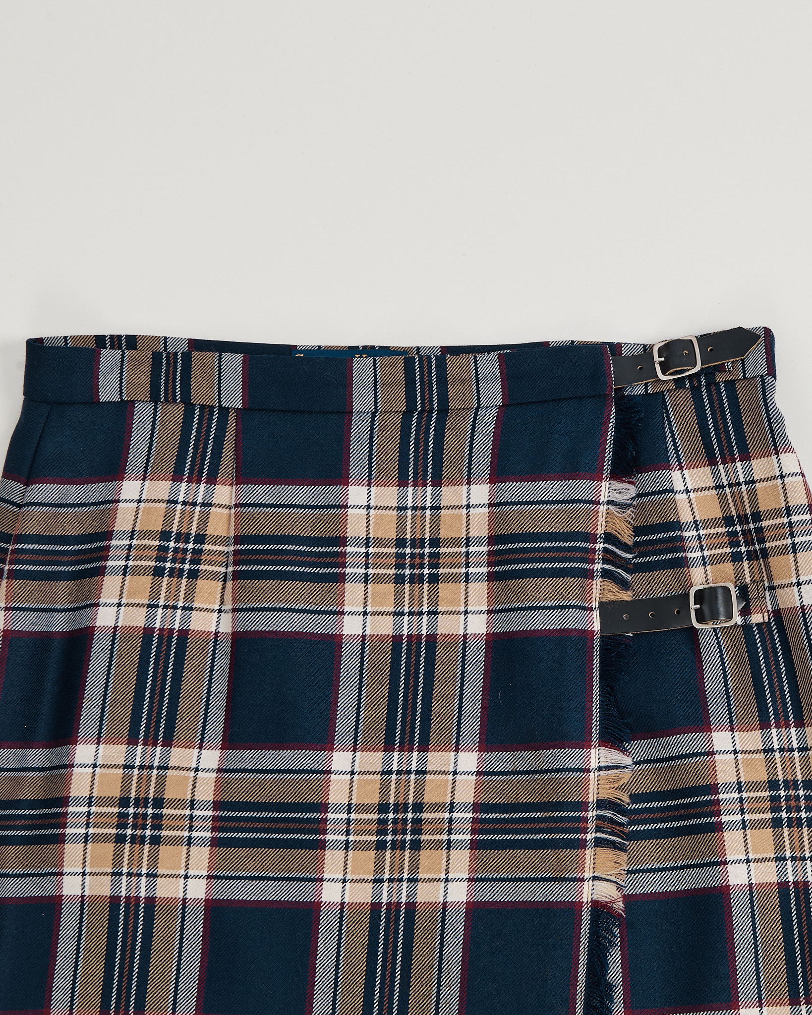 Юбка с запахом Classic Horse. Юбка из 100% шерсти, посадка на талии регулируется ремешками. Крупная клетка в глубоких оттенках синего придаёт акцент.
