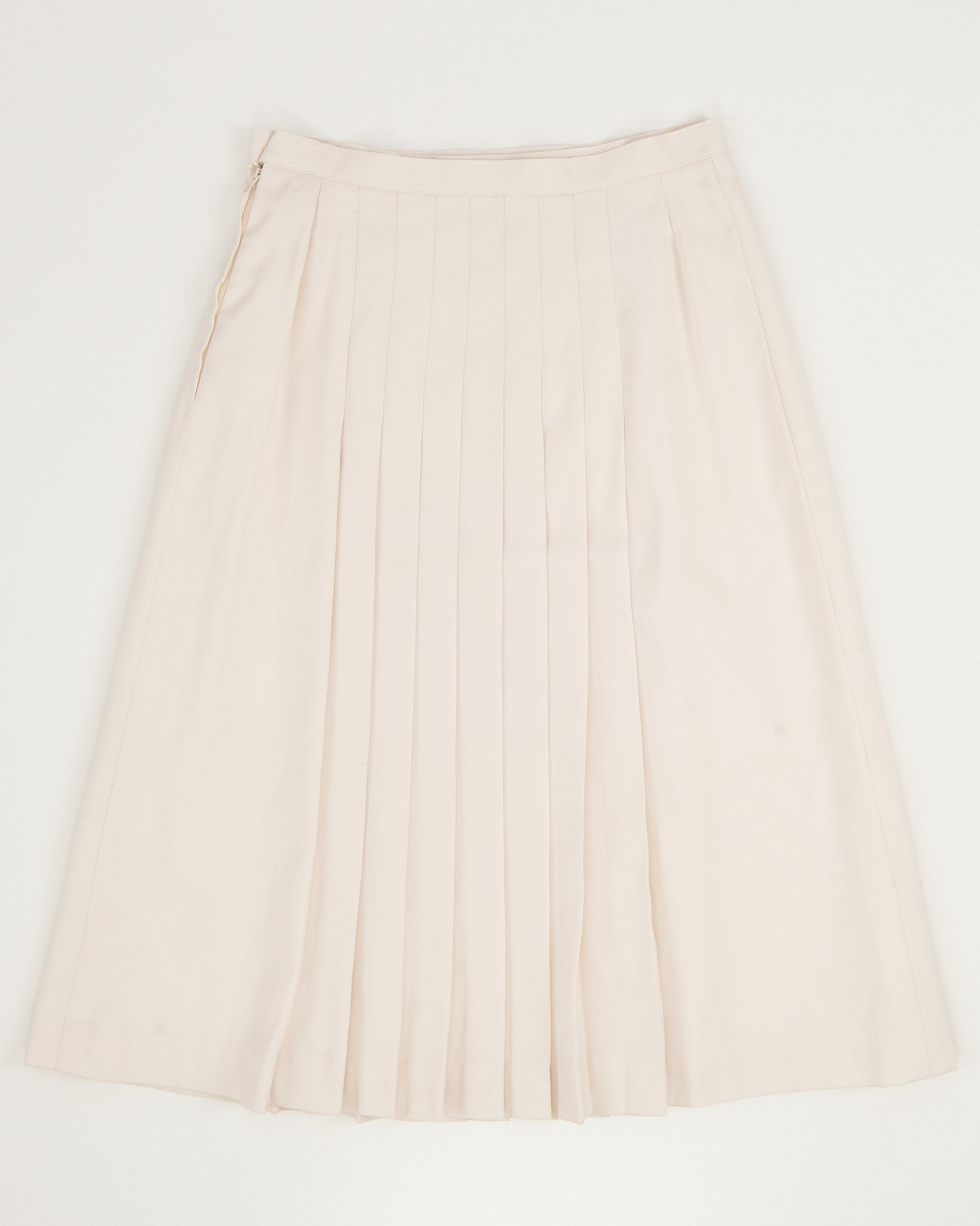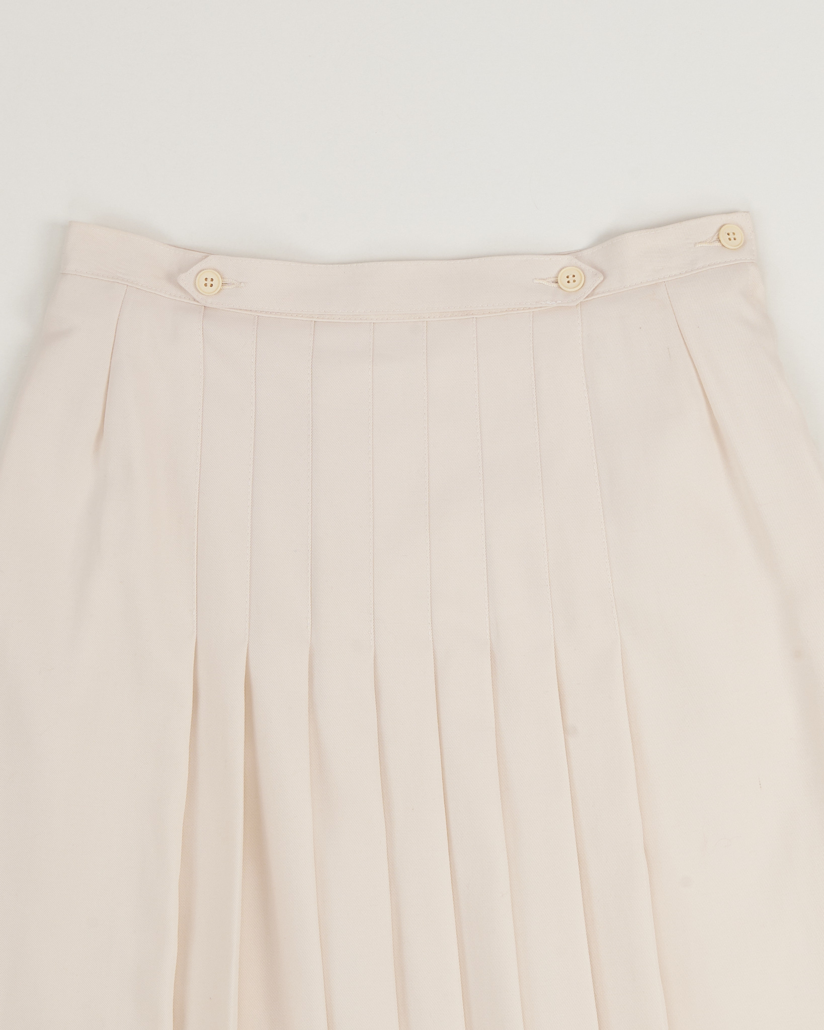 Юбка выполнена из 51% шерсти. Посадка высокая, линия талии аккуратная, силуэт раскрывается мягкой трапецией. Центральная плиссировка придает акцент. Декоративные пуговицы на поясе.