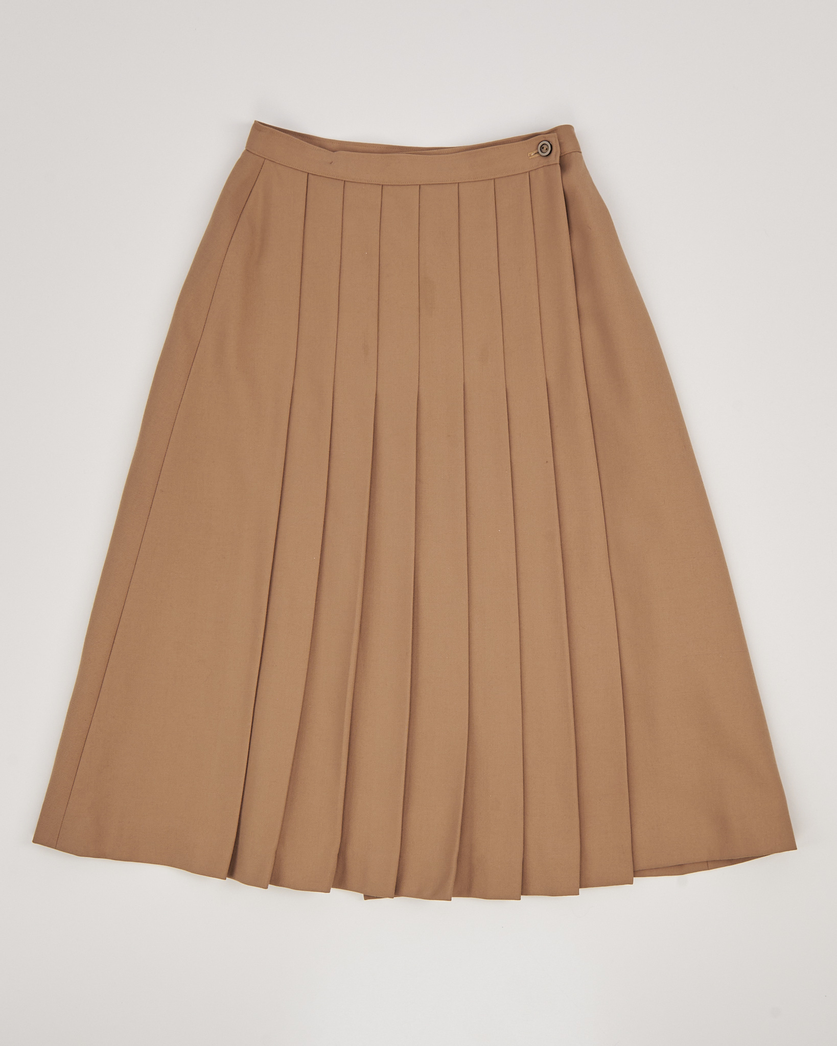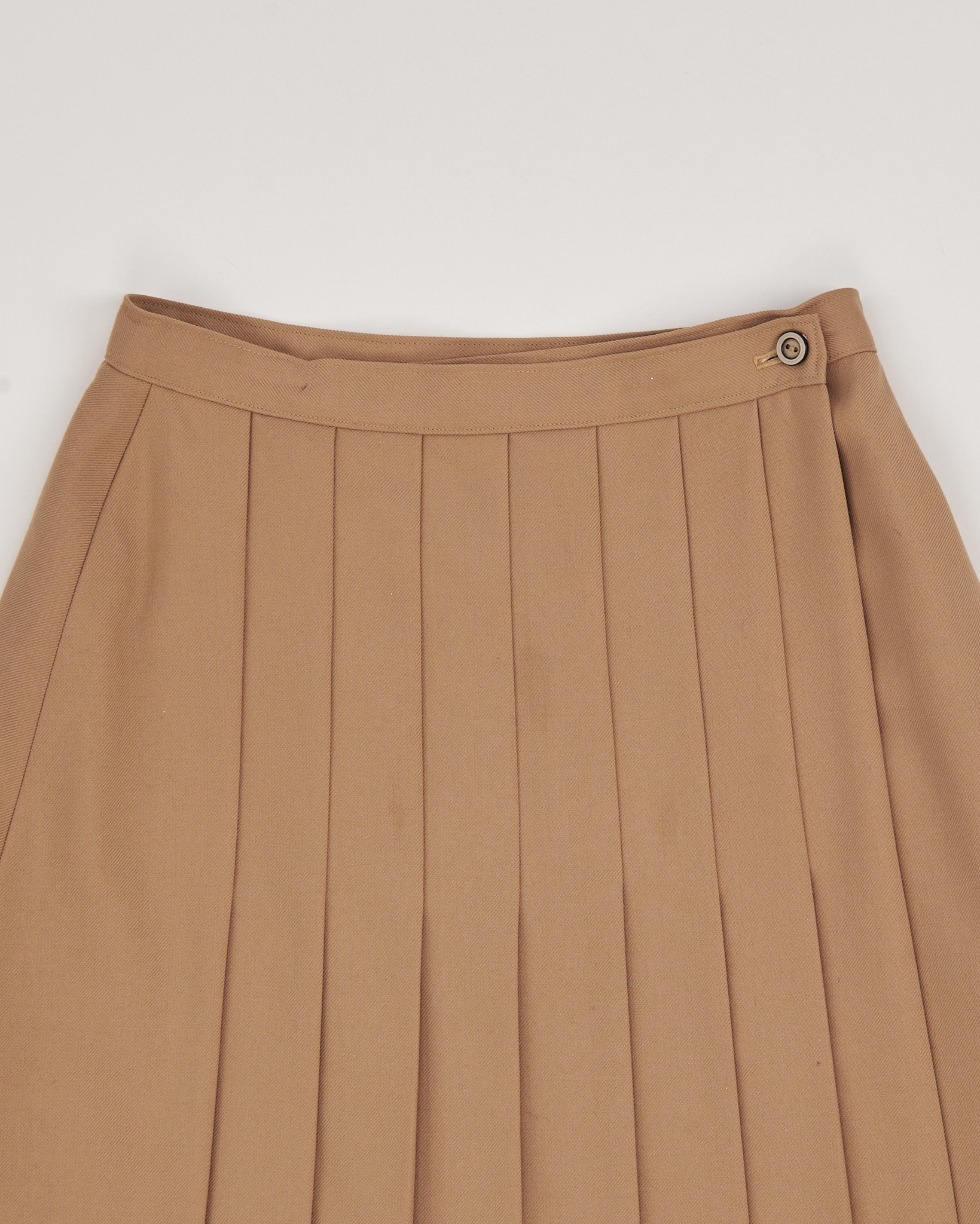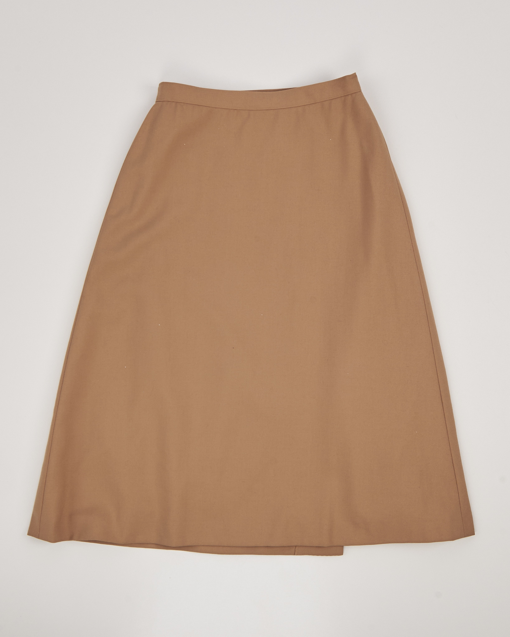 Юбка из 100% шерсти в тёплом карамельном оттенке. Посадка высокая, линия талии аккуратная, силуэт раскрывается мягкой трапецией. Акцентная плиссировка на передней части.