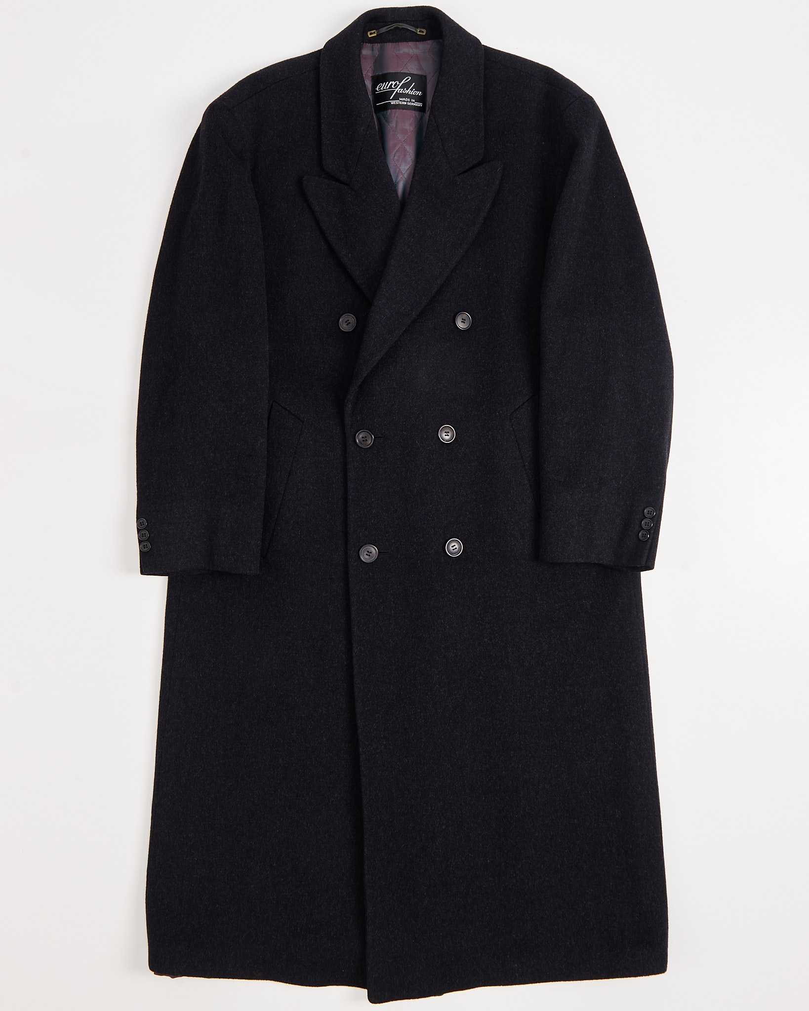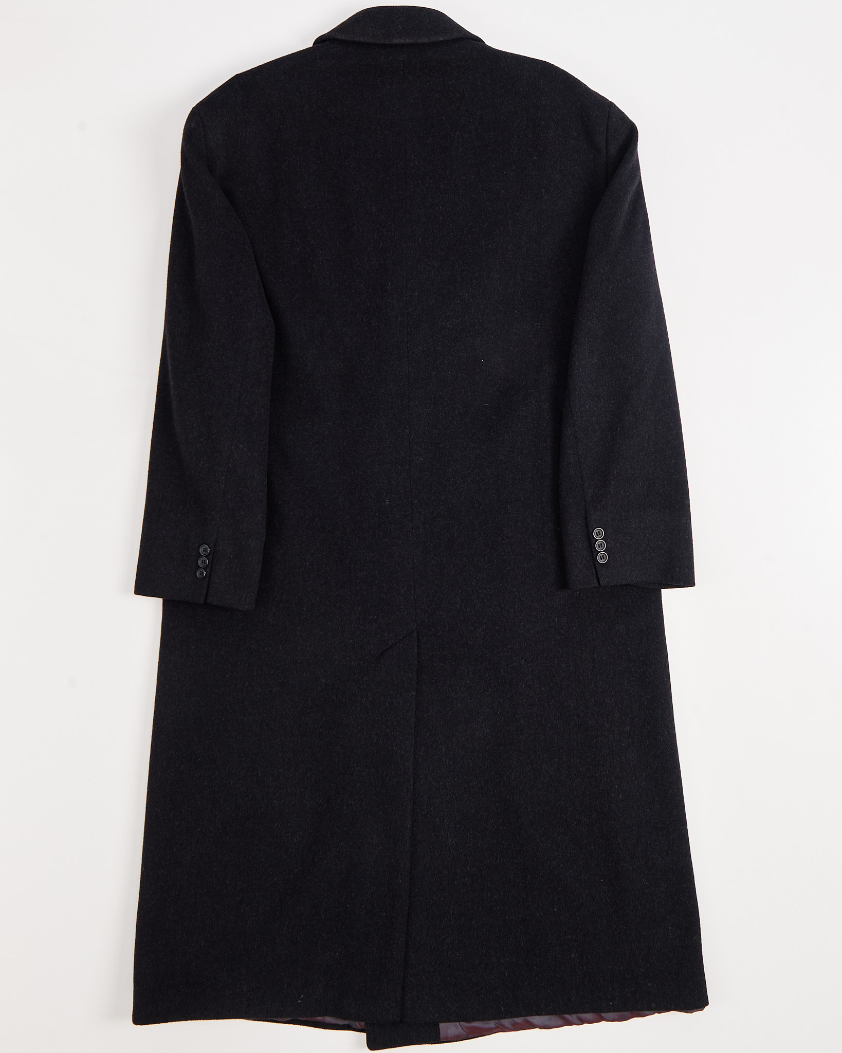 Двубортное пальто из шерсти и кашемира в цвете темно-серый графит. Классический крой.