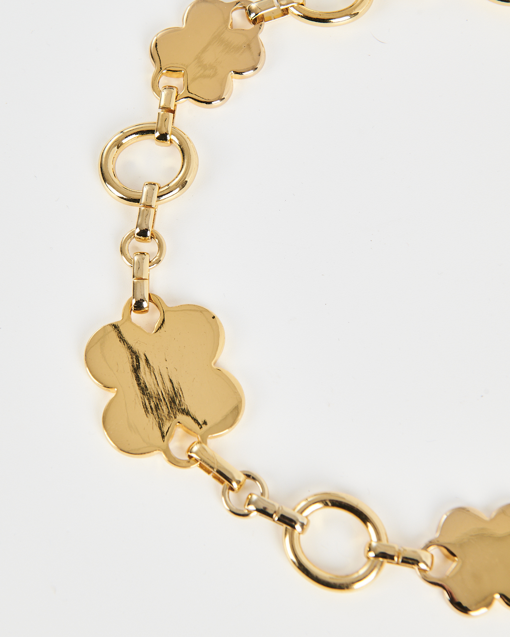 Винтажное металлическое колье. Крупные кольца и акцентные подвески в форме цветка, удобная застежка.