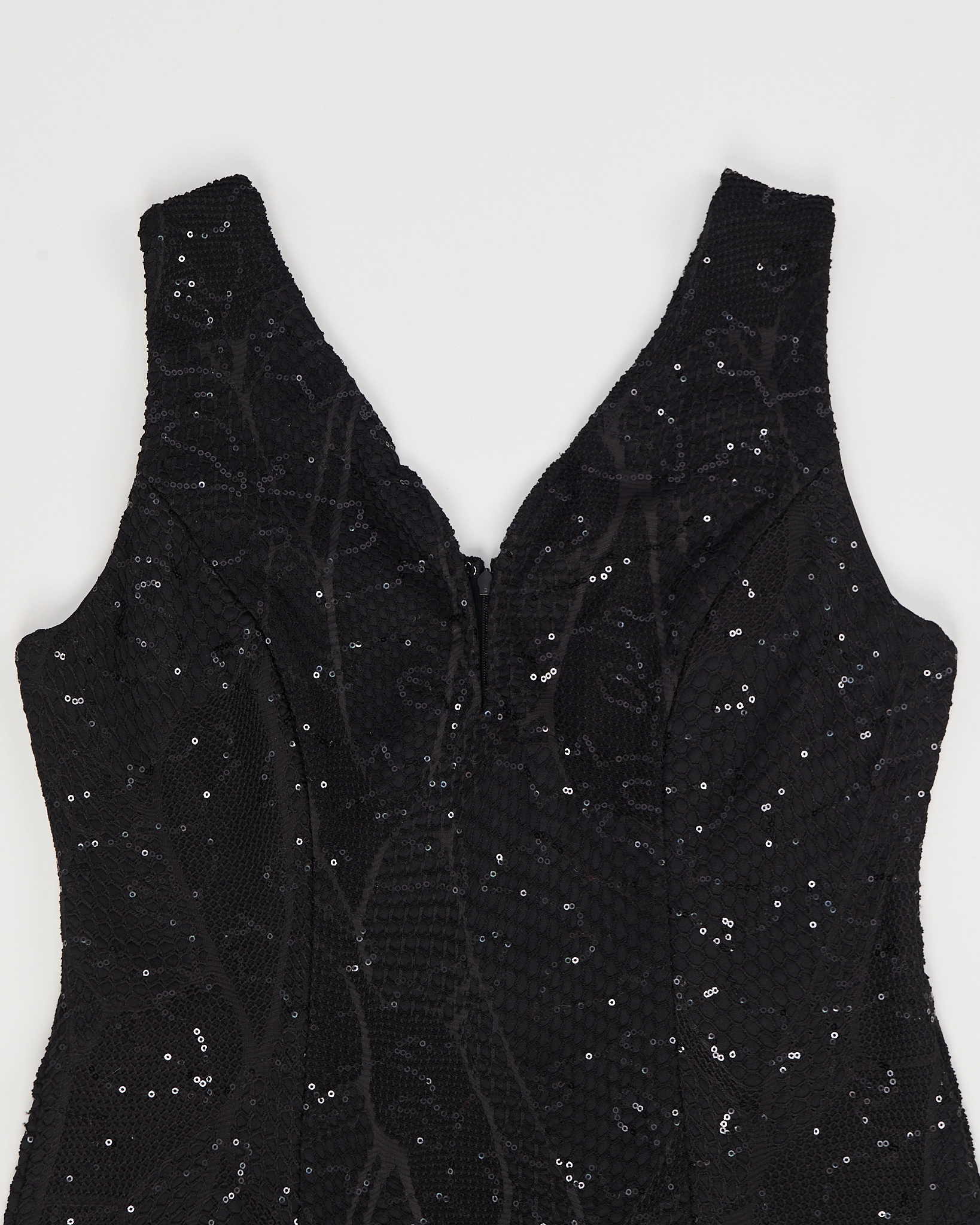 Винтажное платье с мерцающим декором из пайеток. Модель приталенного кроя подчёркивает силуэт.